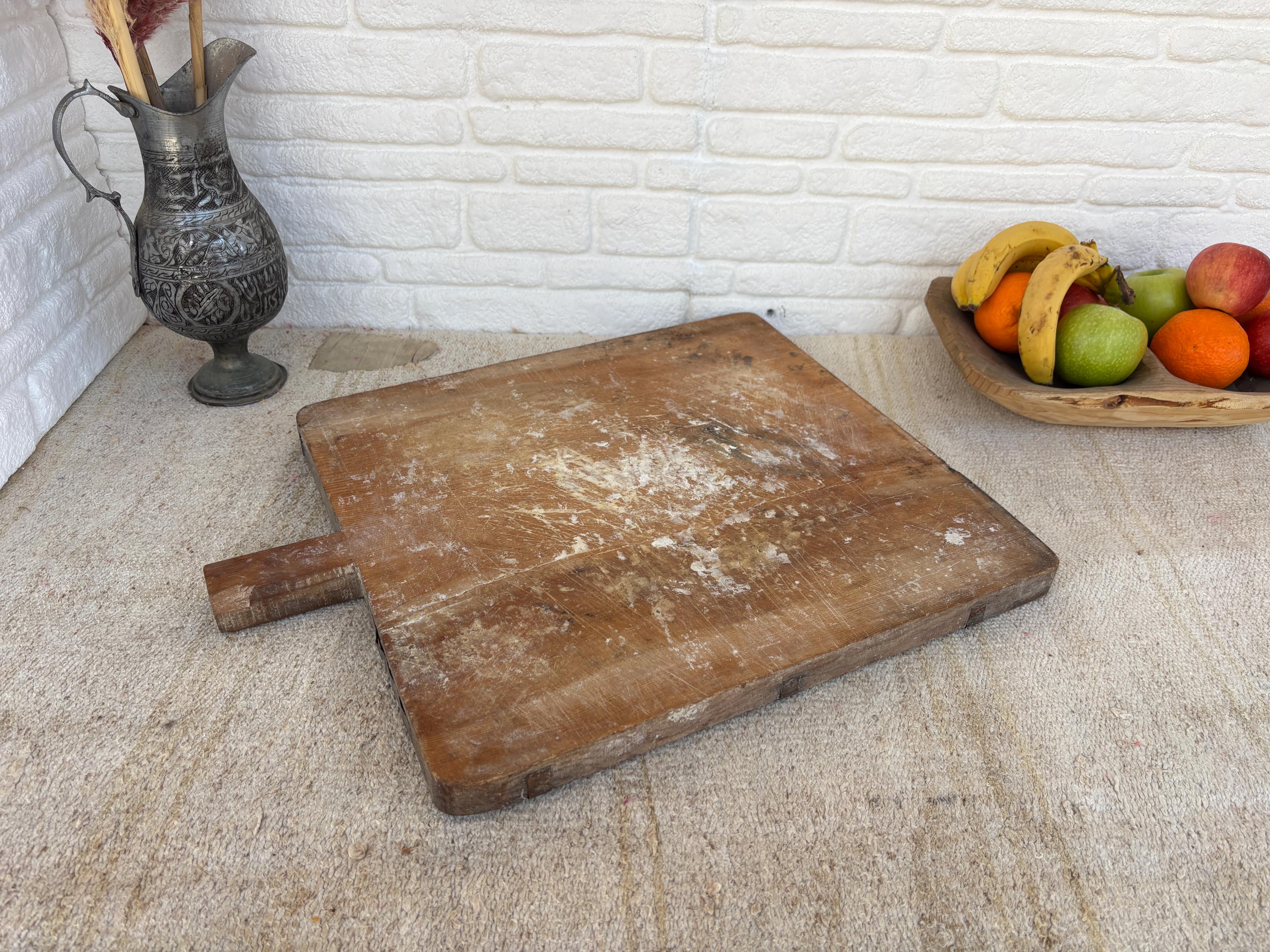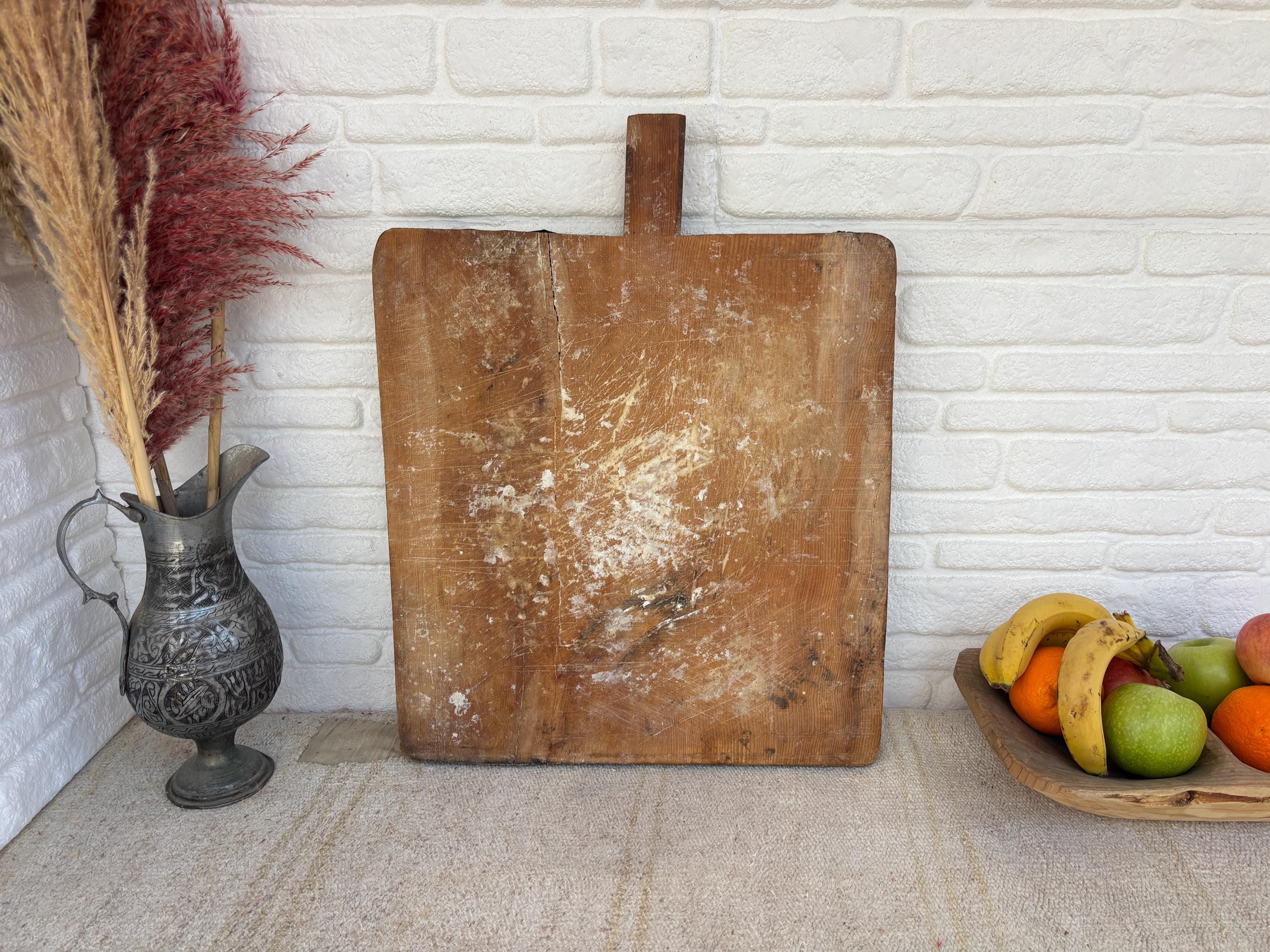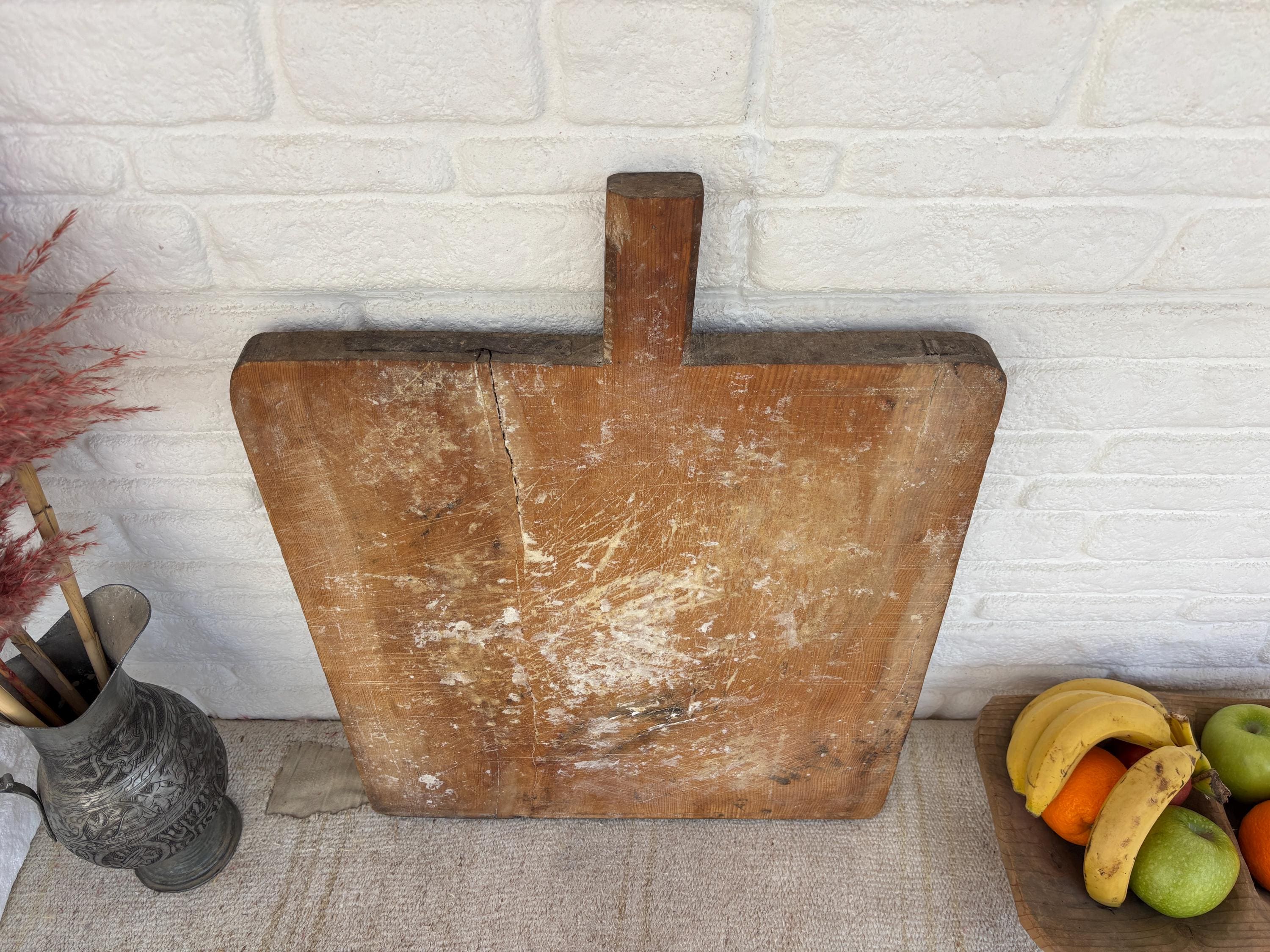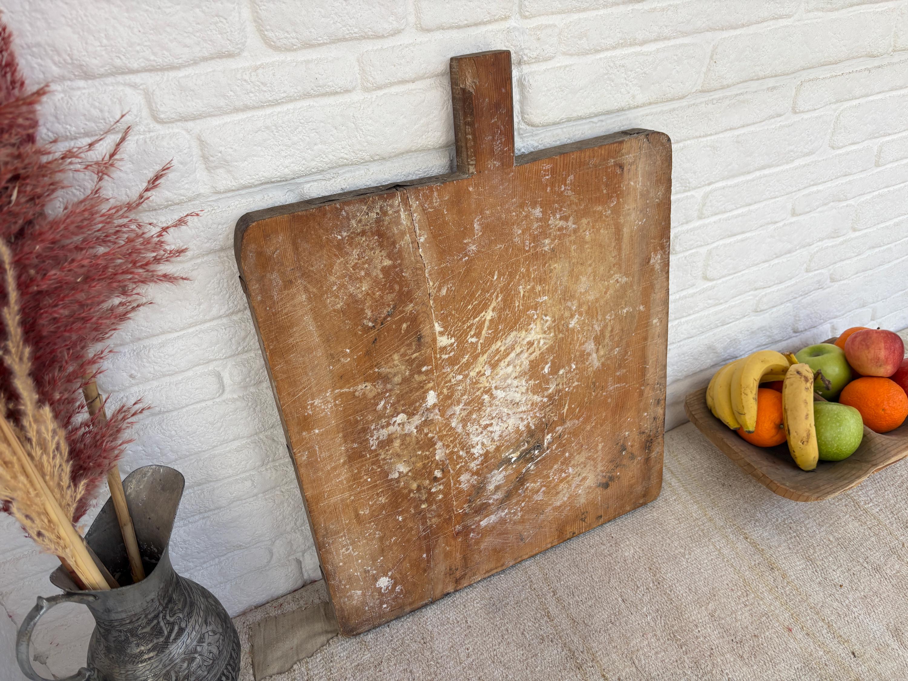 Crafted decades ago in rural Turkey, no two boards are exactly alike. Some are wide and worn smooth, others have deep patina or a hand-carved handle—each shaped by time and use. Whether hung on a kitchen wall, styled on a rustic table, or used as a serving piece, it adds soul to any space.