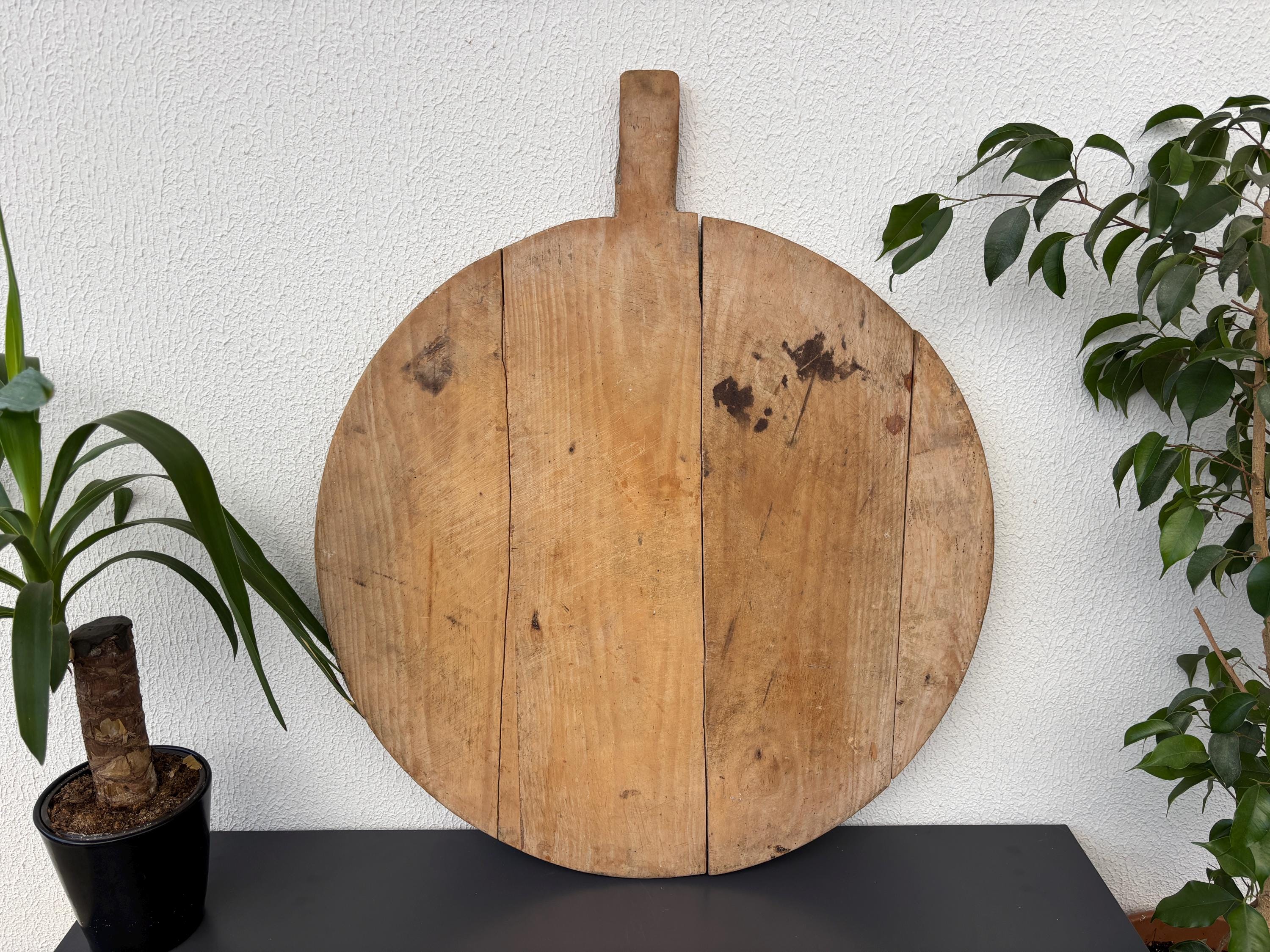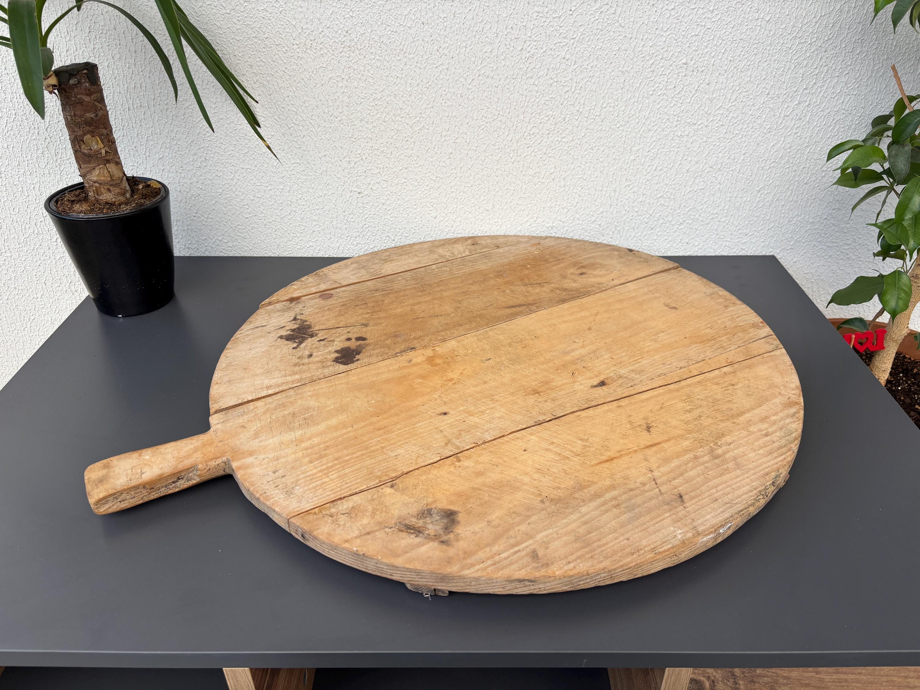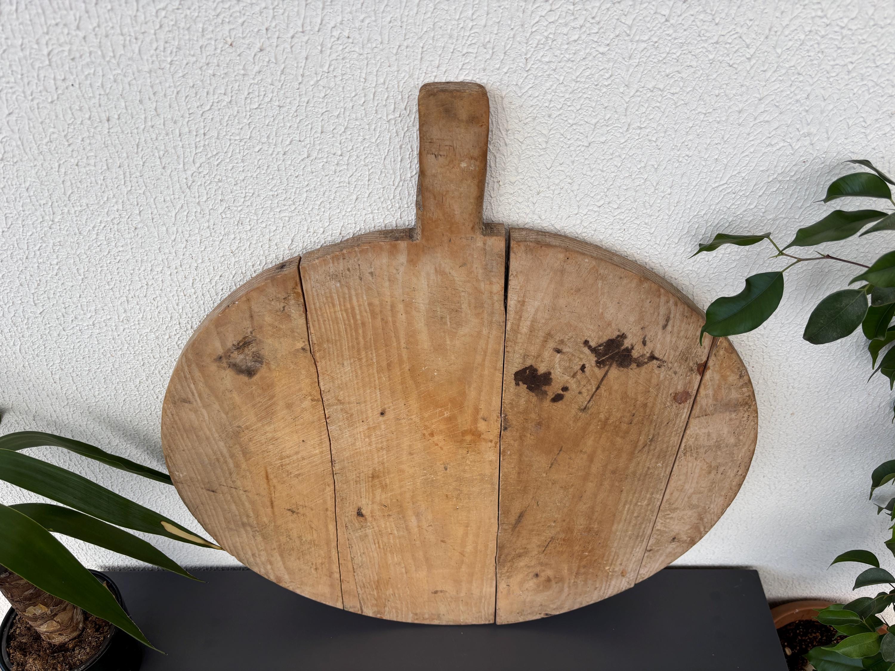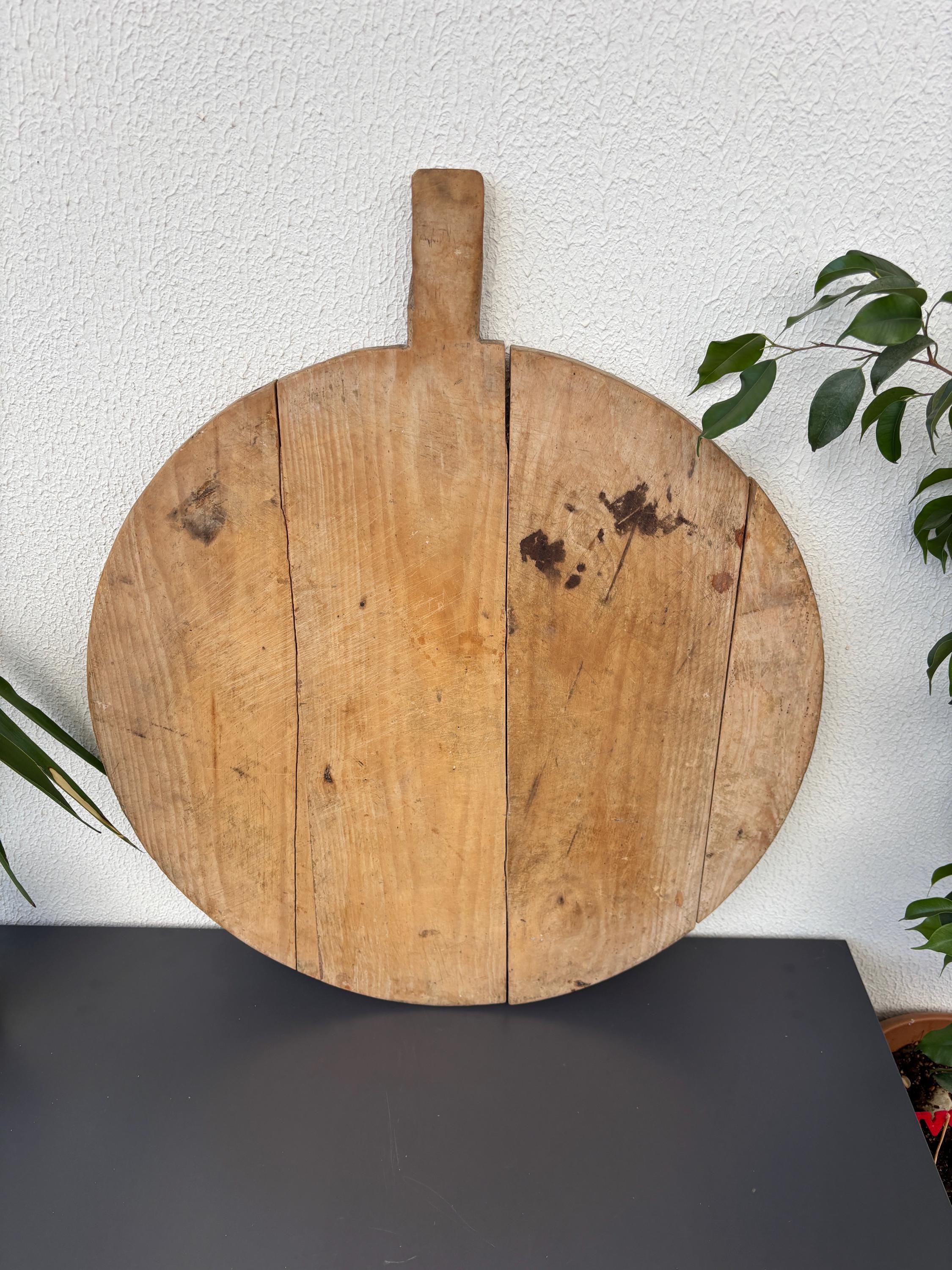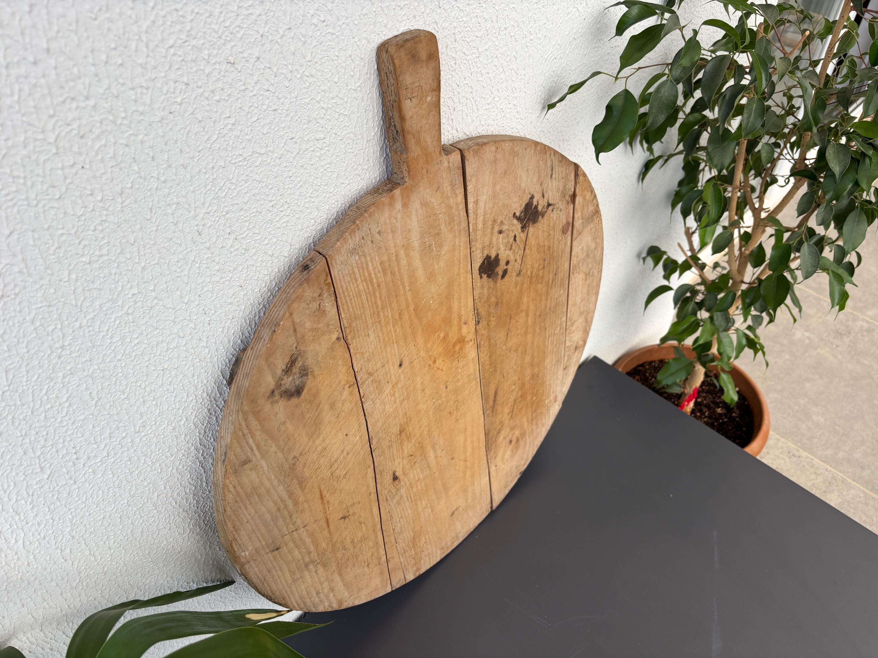 Crafted decades ago in rural Turkey, no two boards are exactly alike. Some are wide and worn smooth, others have deep patina or a hand-carved handle—each shaped by time and use. Whether hung on a kitchen wall, styled on a rustic table, or used as a serving piece, it adds soul to any space.