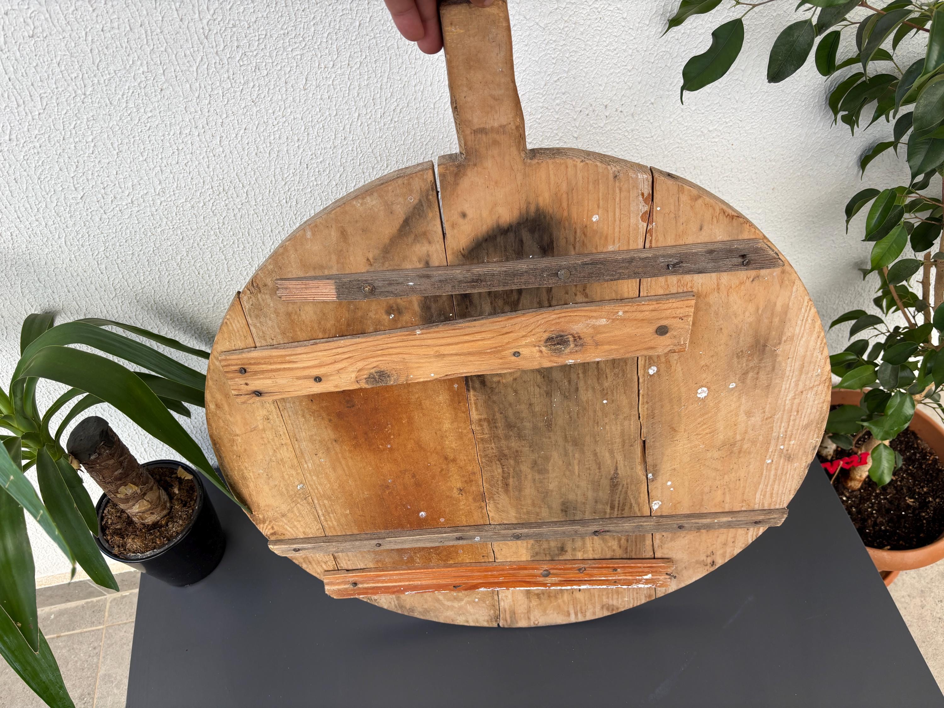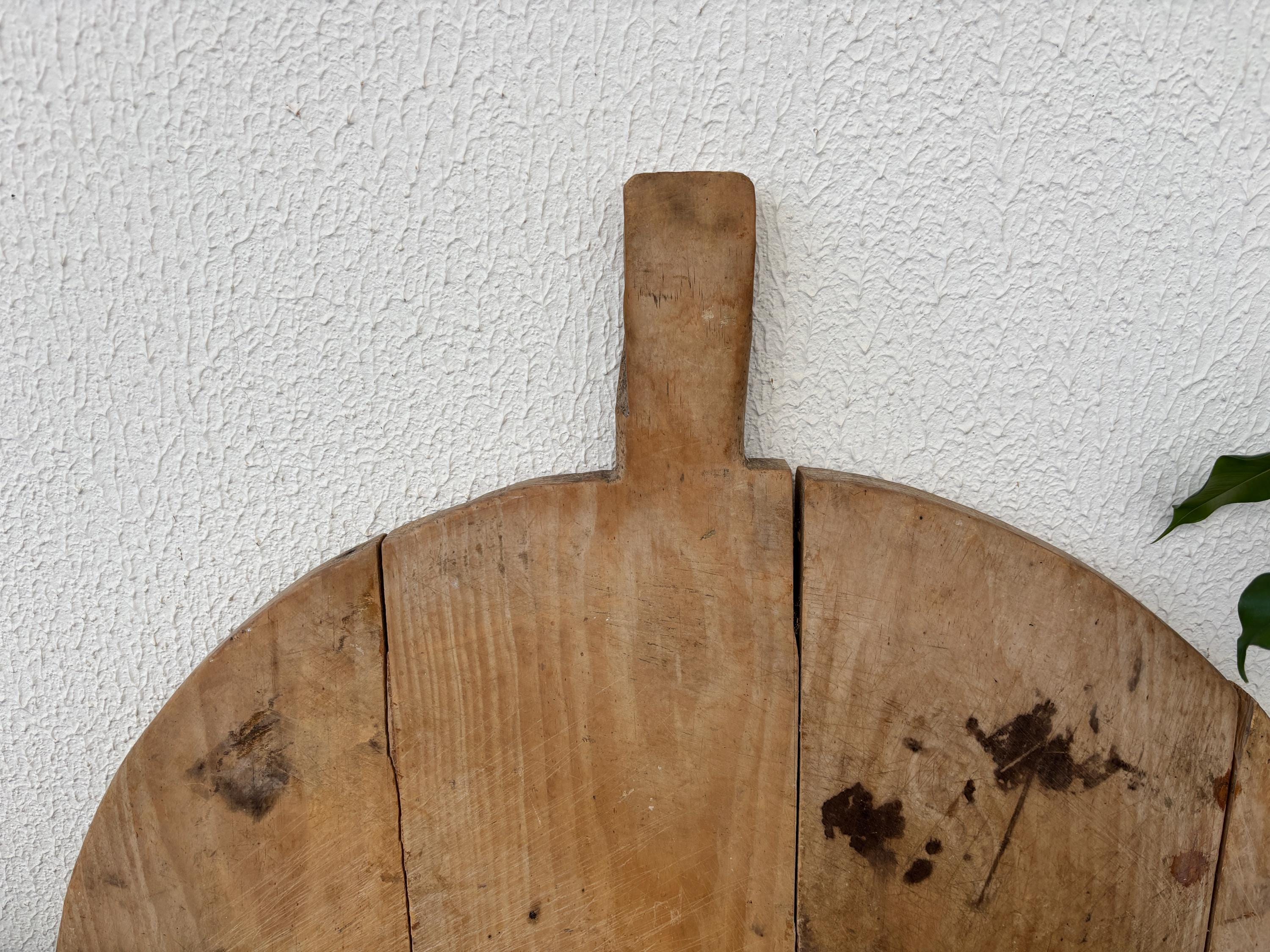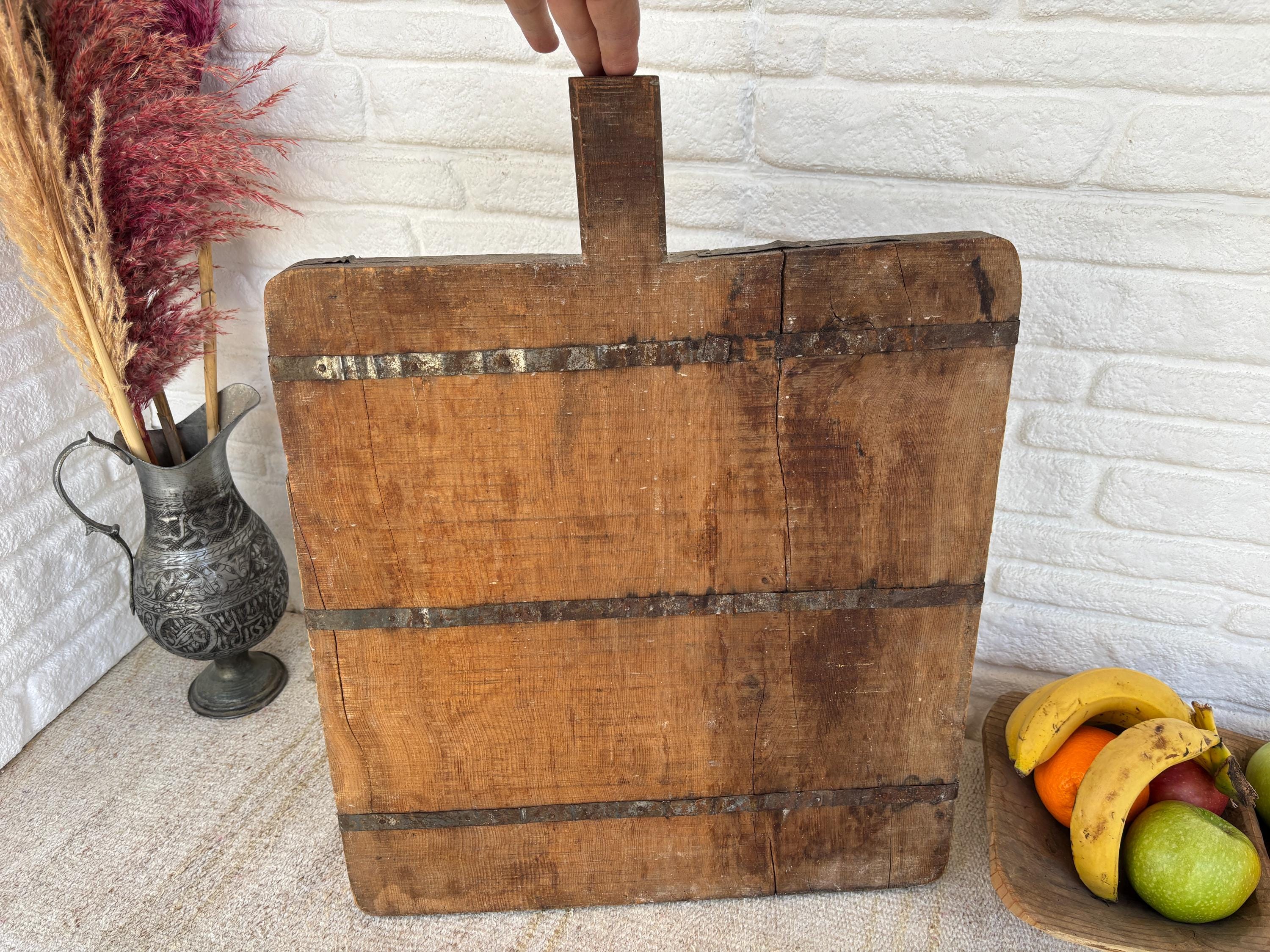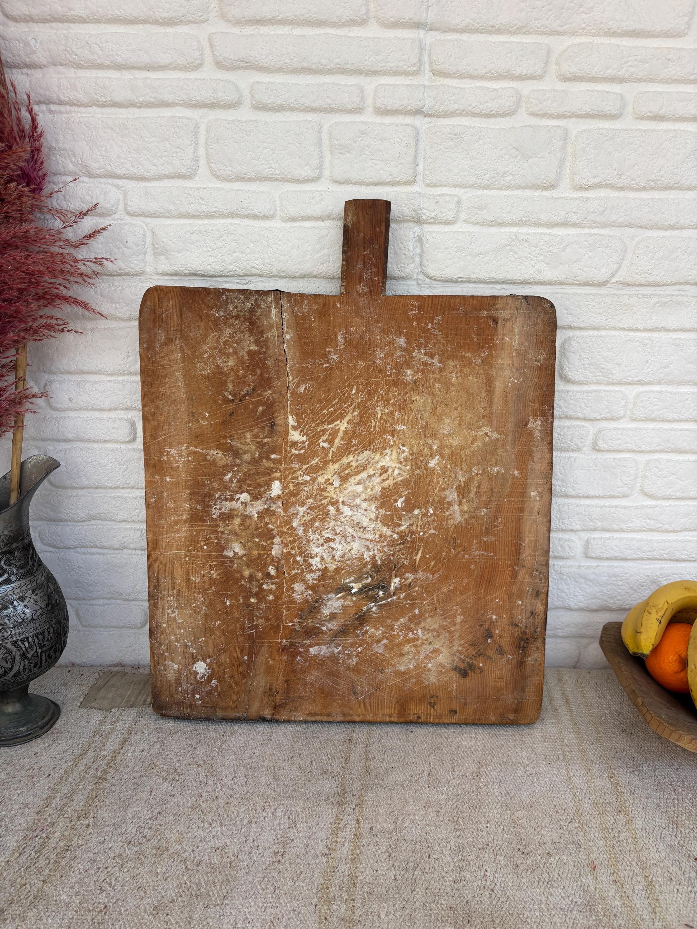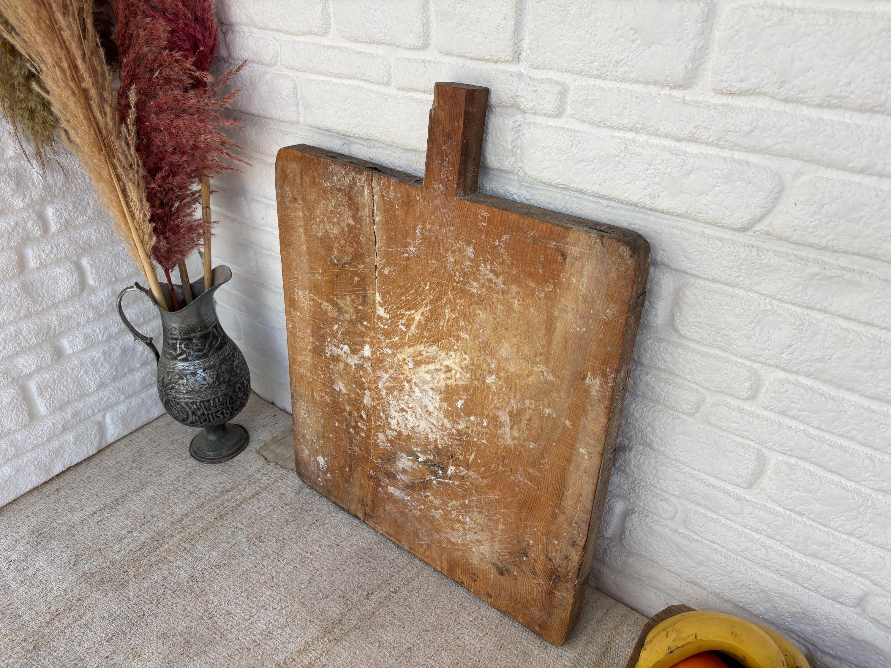 This vintage wooden board once belonged to a humble Anatolian kitchen, where it served not just as a tool, but as part of daily life. Used for kneading dough, slicing bread, and serving homemade meals, it carries the quiet charm of generations past. Hand-carved from solid wood, each piece has its own unique wear—marks that whisper stories of tradition, warmth, and gathering.