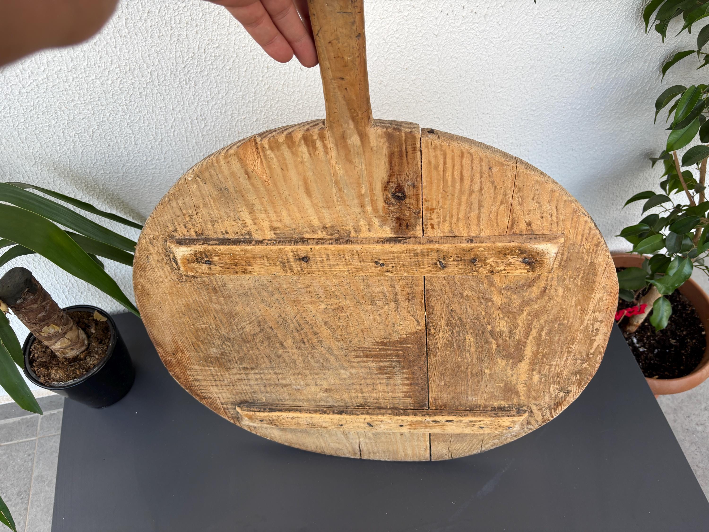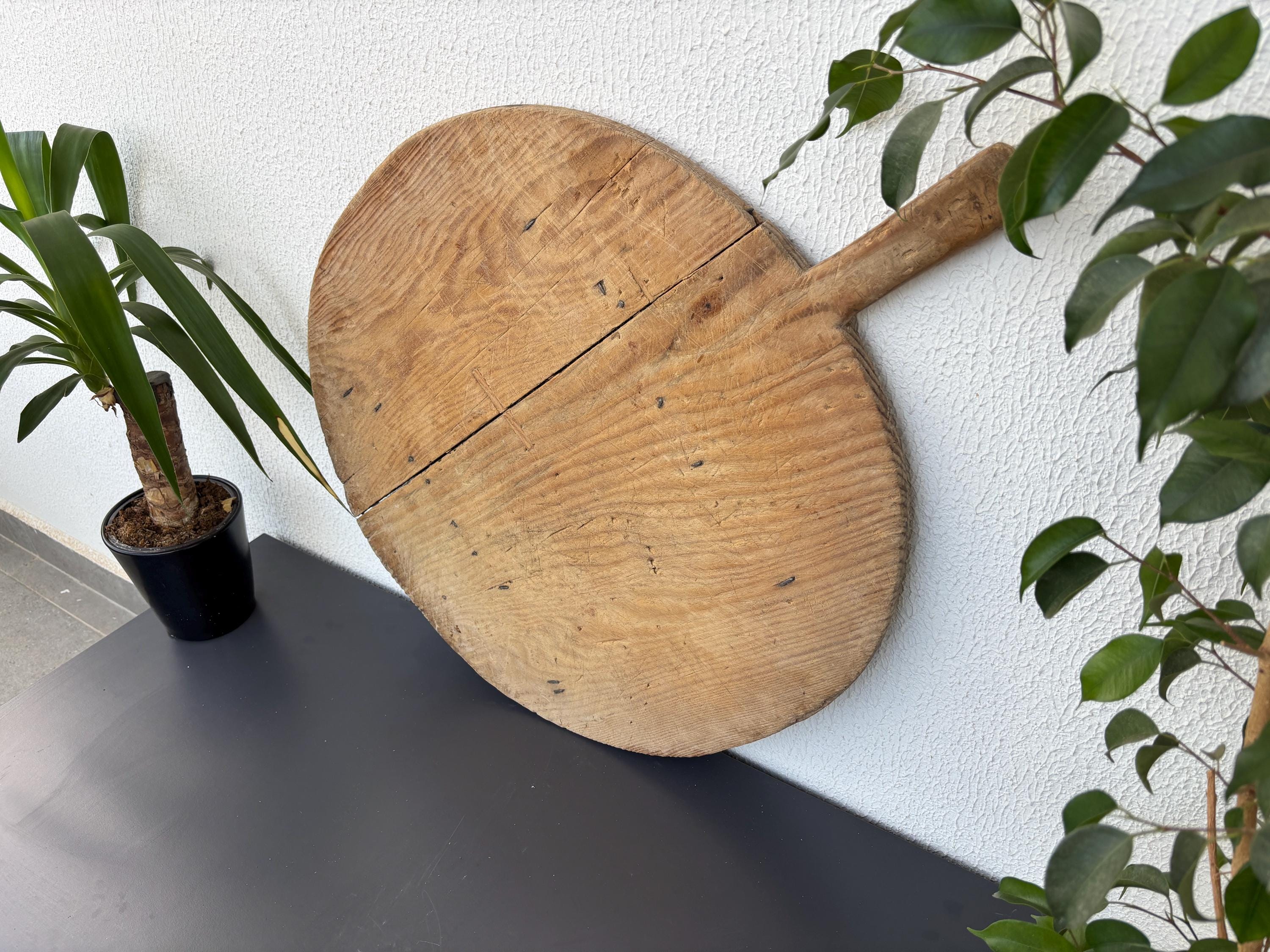 This vintage wooden board once belonged to a humble Anatolian kitchen, where it served not just as a tool, but as part of daily life. Used for kneading dough, slicing bread, and serving homemade meals, it carries the quiet charm of generations past. Hand-carved from solid wood, each piece has its own unique wear—marks that whisper stories of tradition, warmth, and gathering.
