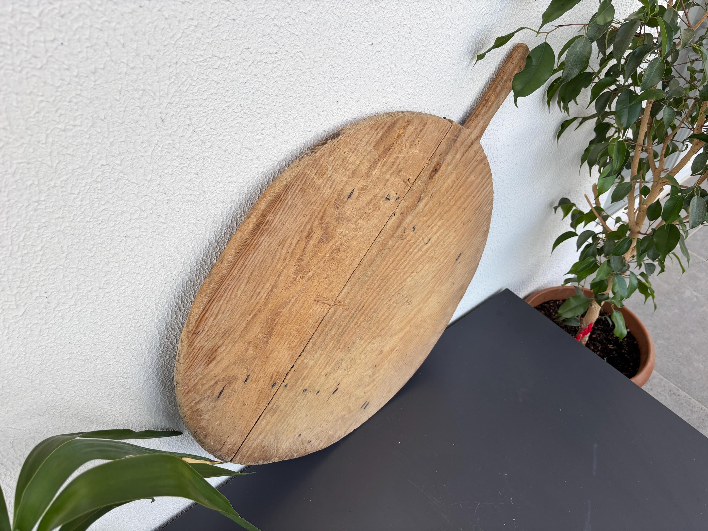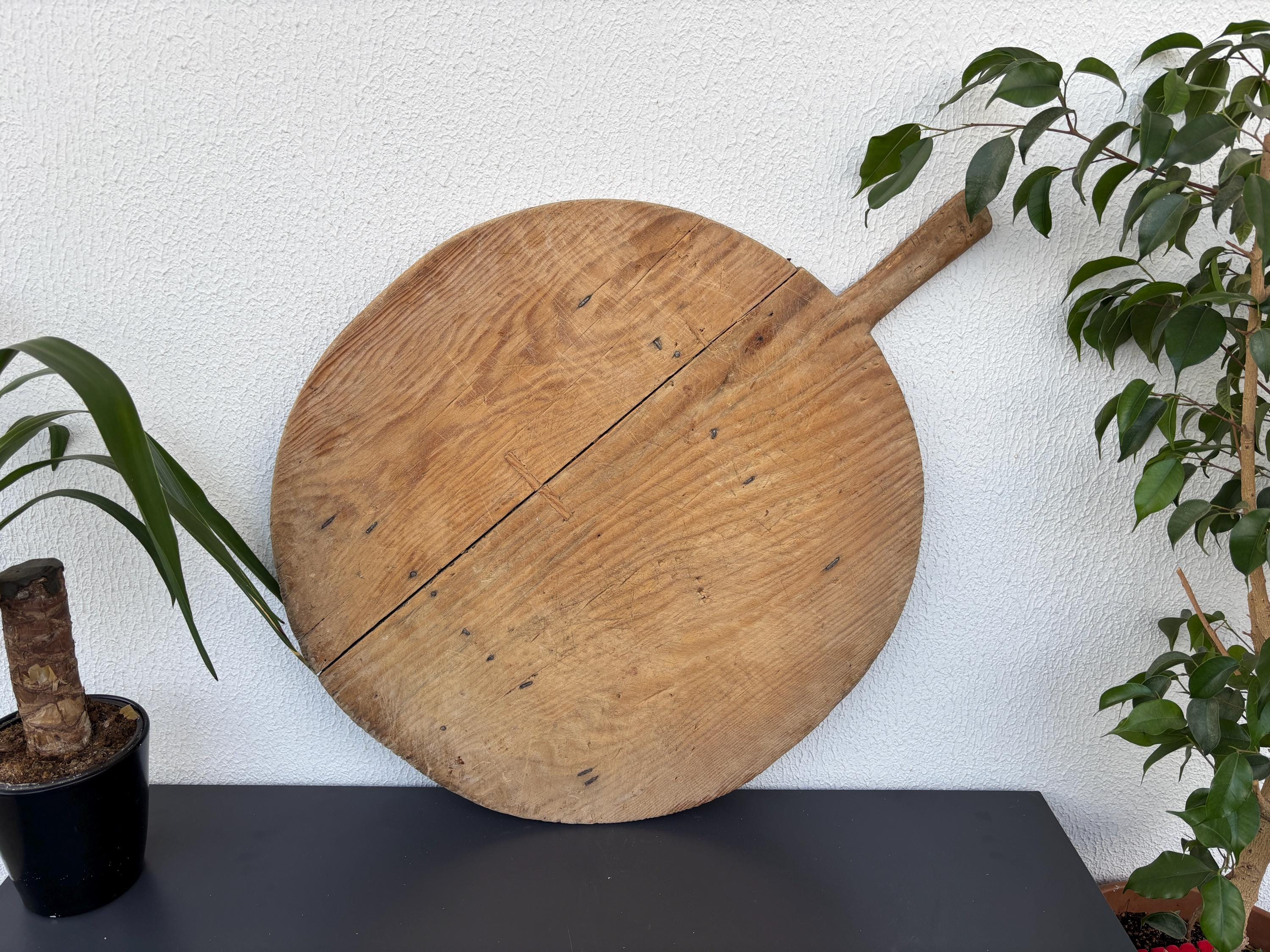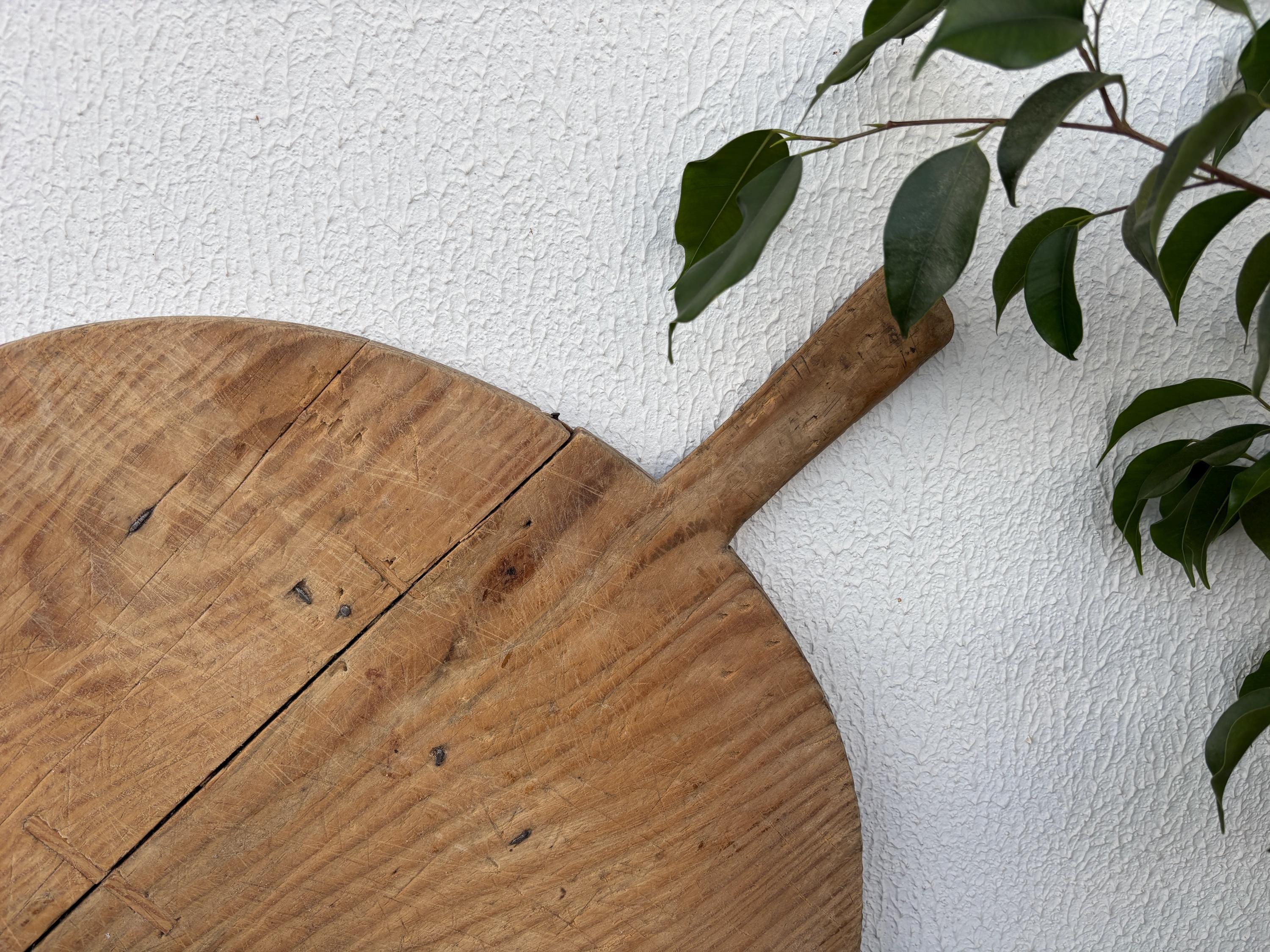 Crafted decades ago in rural Turkey, no two boards are exactly alike. Some are wide and worn smooth, others have deep patina or a hand-carved handle—each shaped by time and use. Whether hung on a kitchen wall, styled on a rustic table, or used as a serving piece, it adds soul to any space.