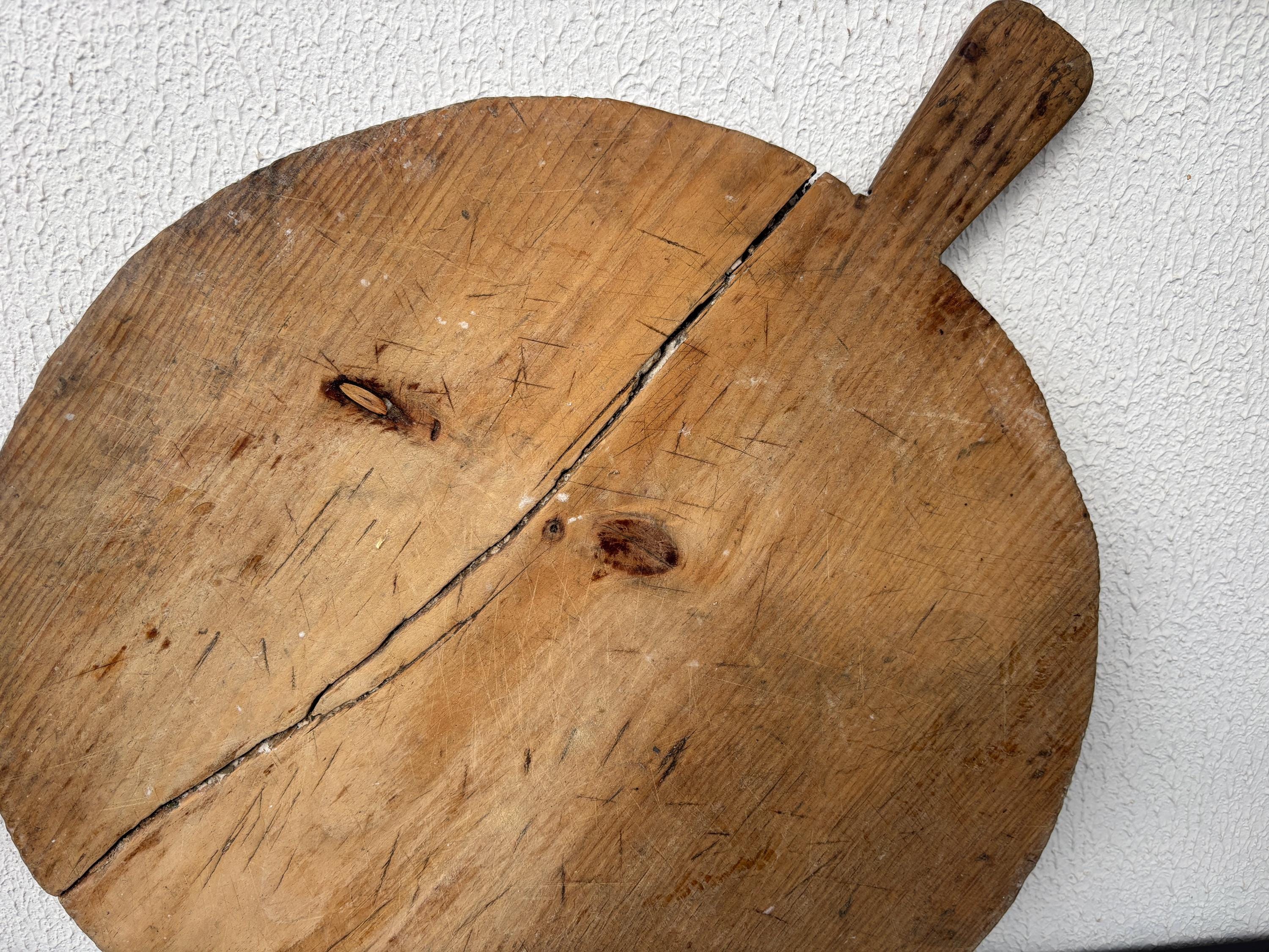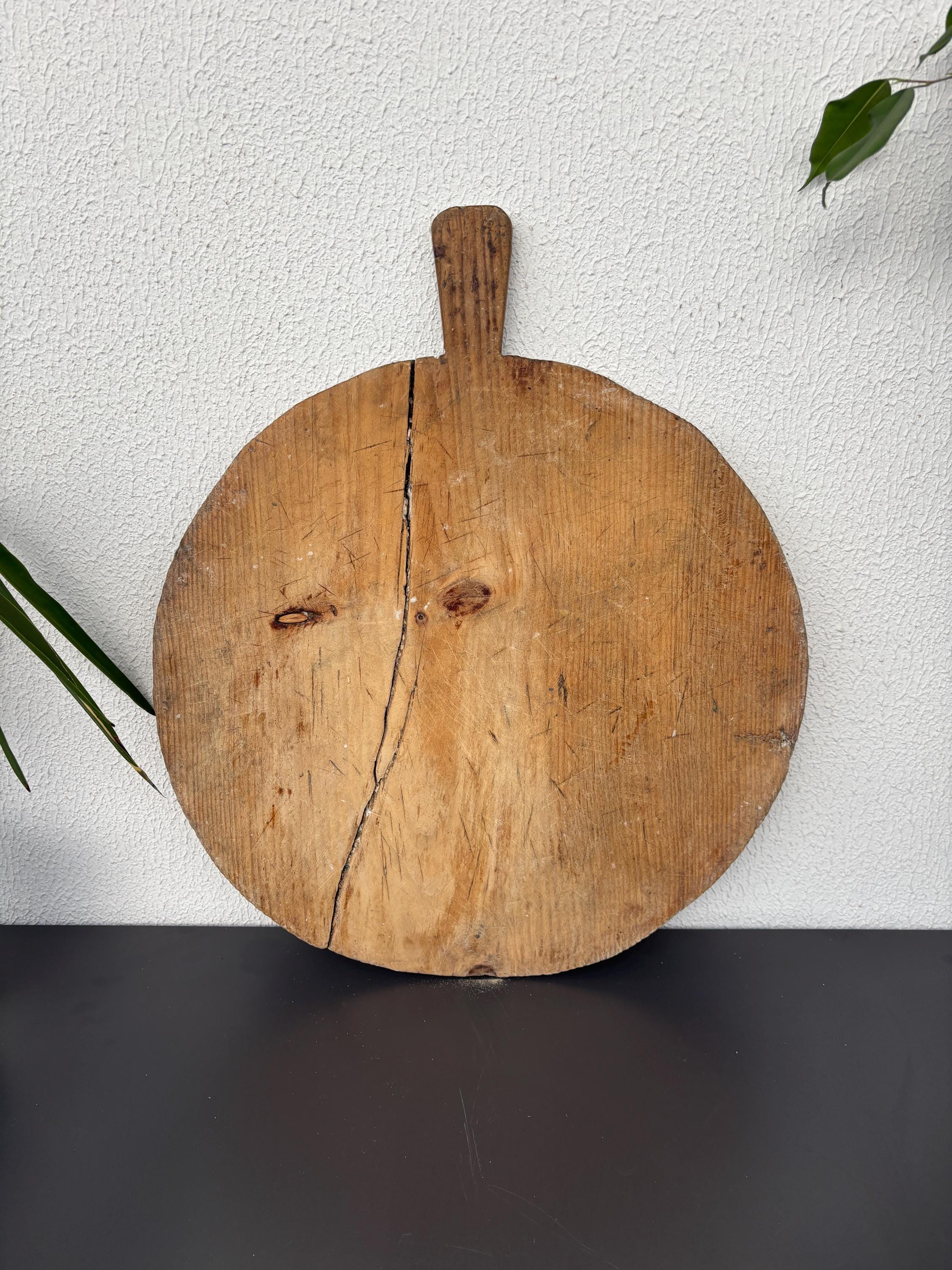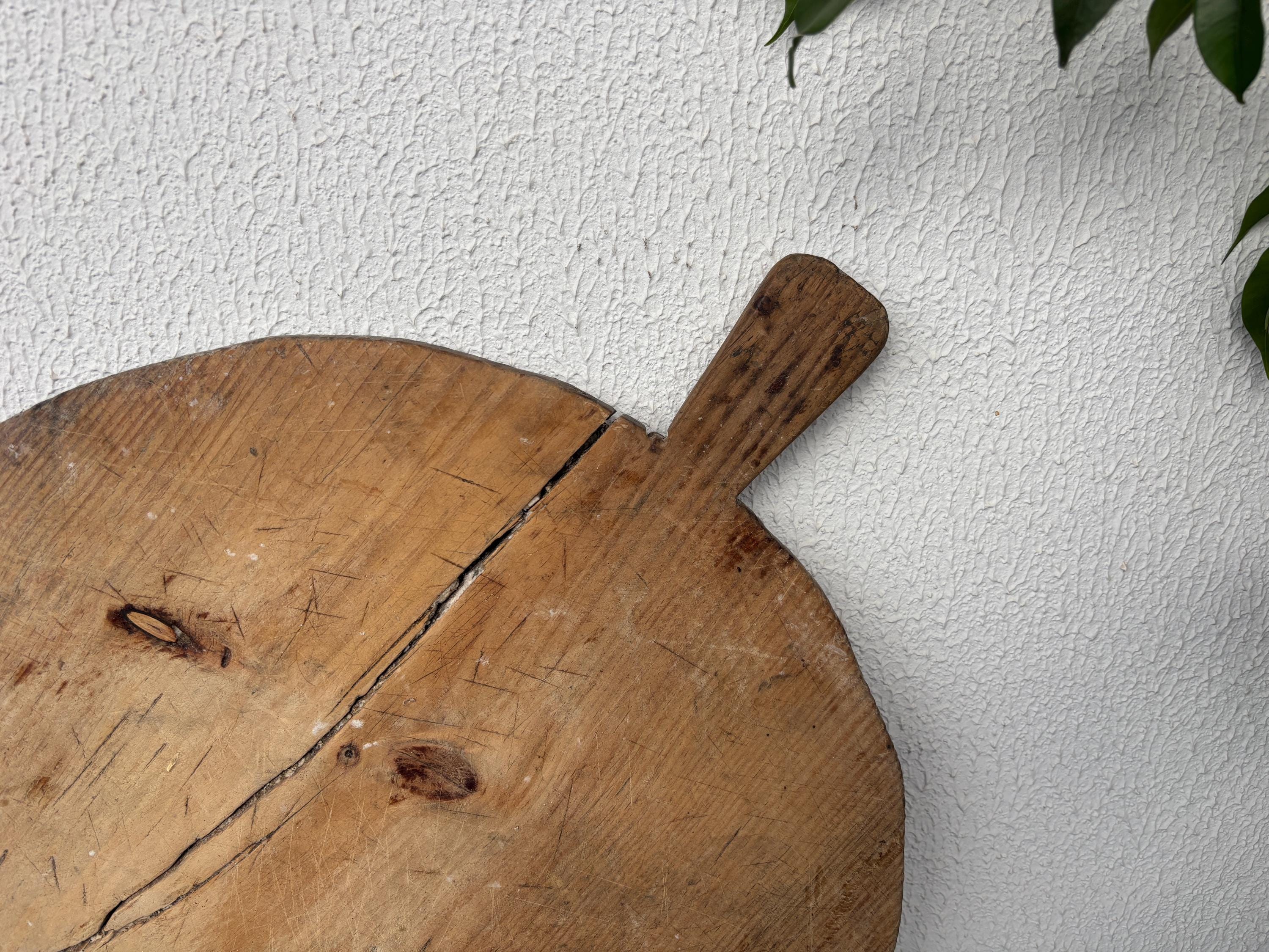 Crafted decades ago in rural Turkey, no two boards are exactly alike. Some are wide and worn smooth, others have deep patina or a hand-carved handle—each shaped by time and use. Whether hung on a kitchen wall, styled on a rustic table, or used as a serving piece, it adds soul to any space.