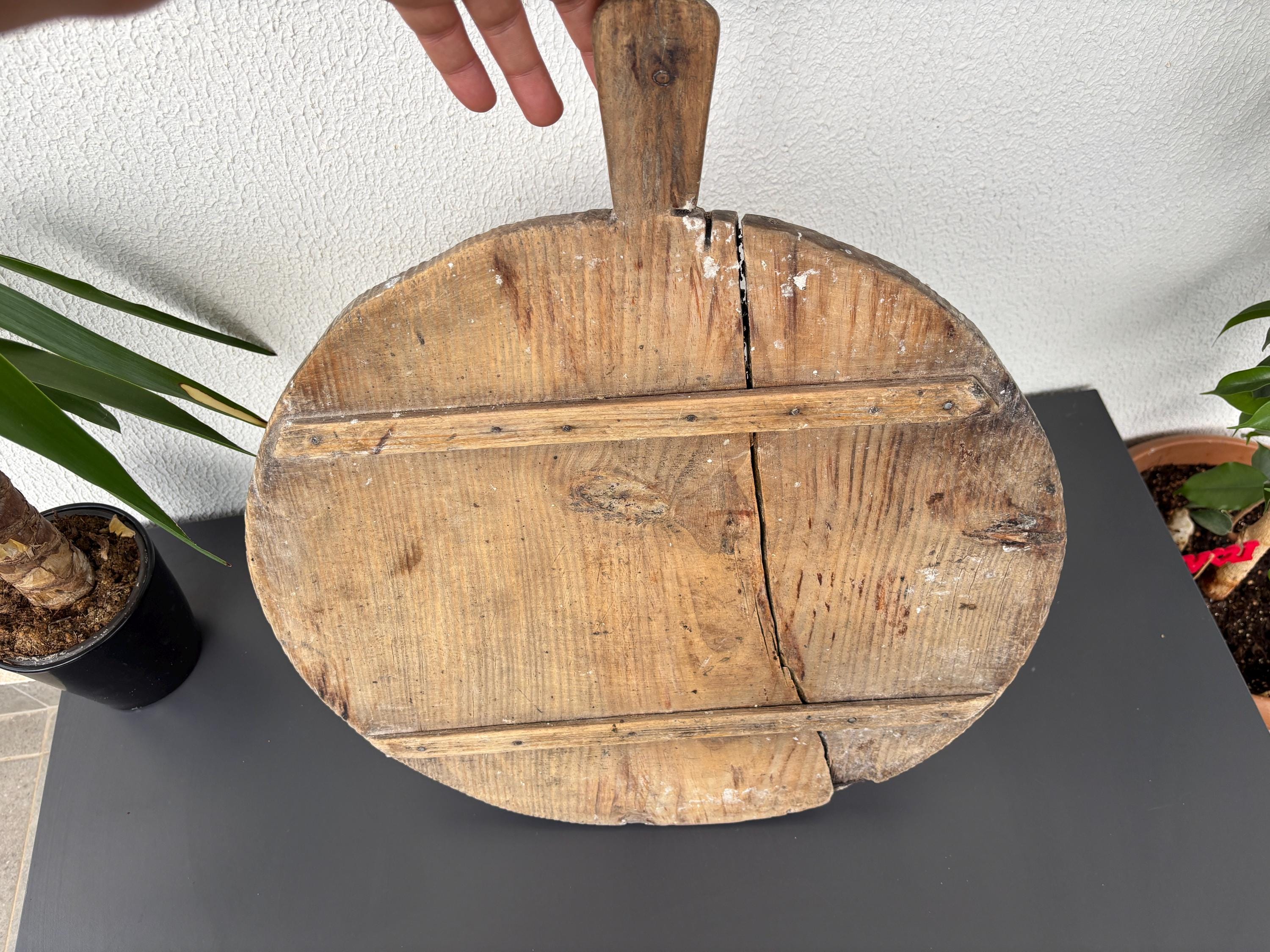 This vintage wooden board once belonged to a humble Anatolian kitchen, where it served not just as a tool, but as part of daily life. Used for kneading dough, slicing bread, and serving homemade meals, it carries the quiet charm of generations past. Hand-carved from solid wood, each piece has its own unique wear—marks that whisper stories of tradition, warmth, and gathering.