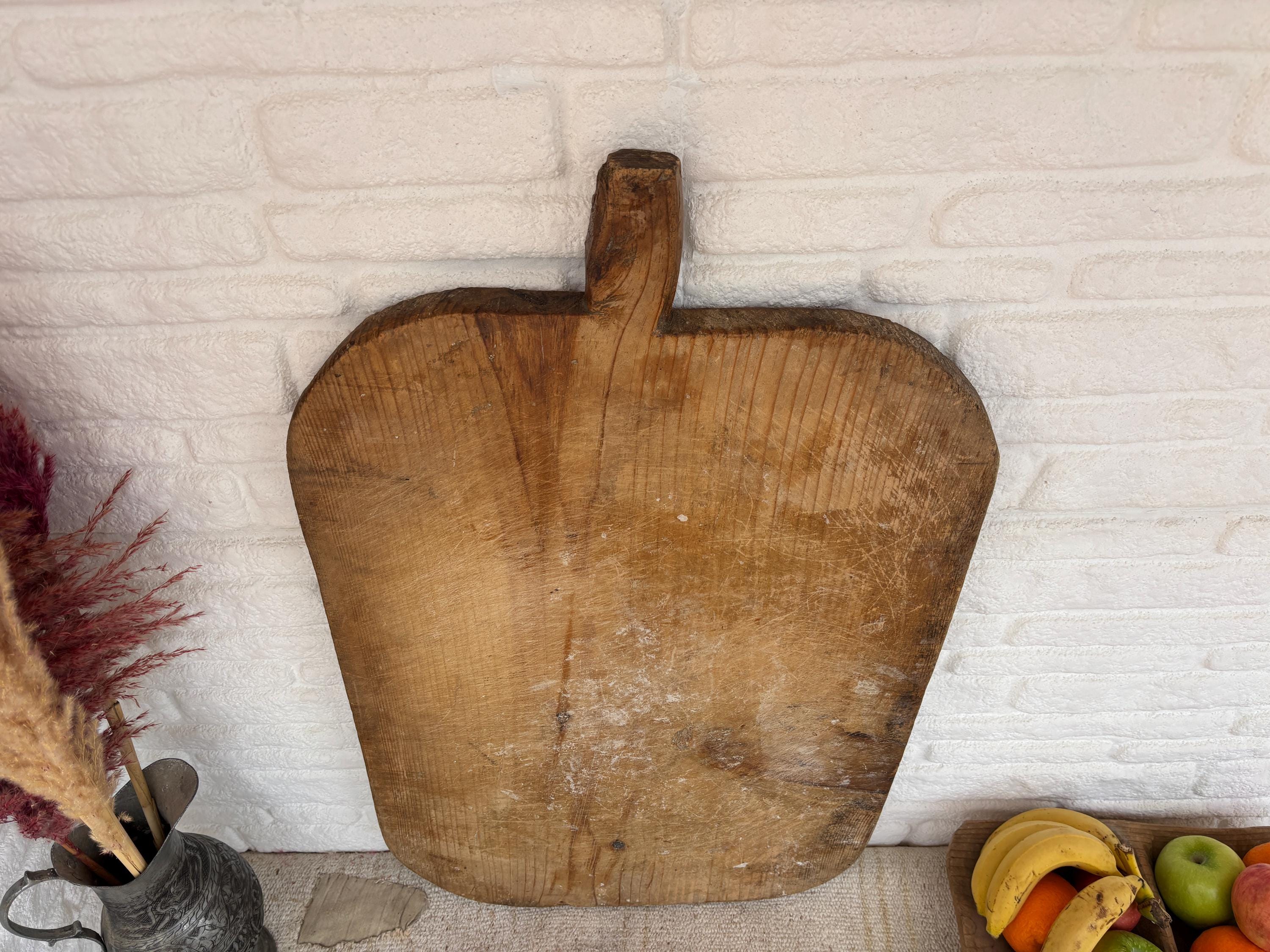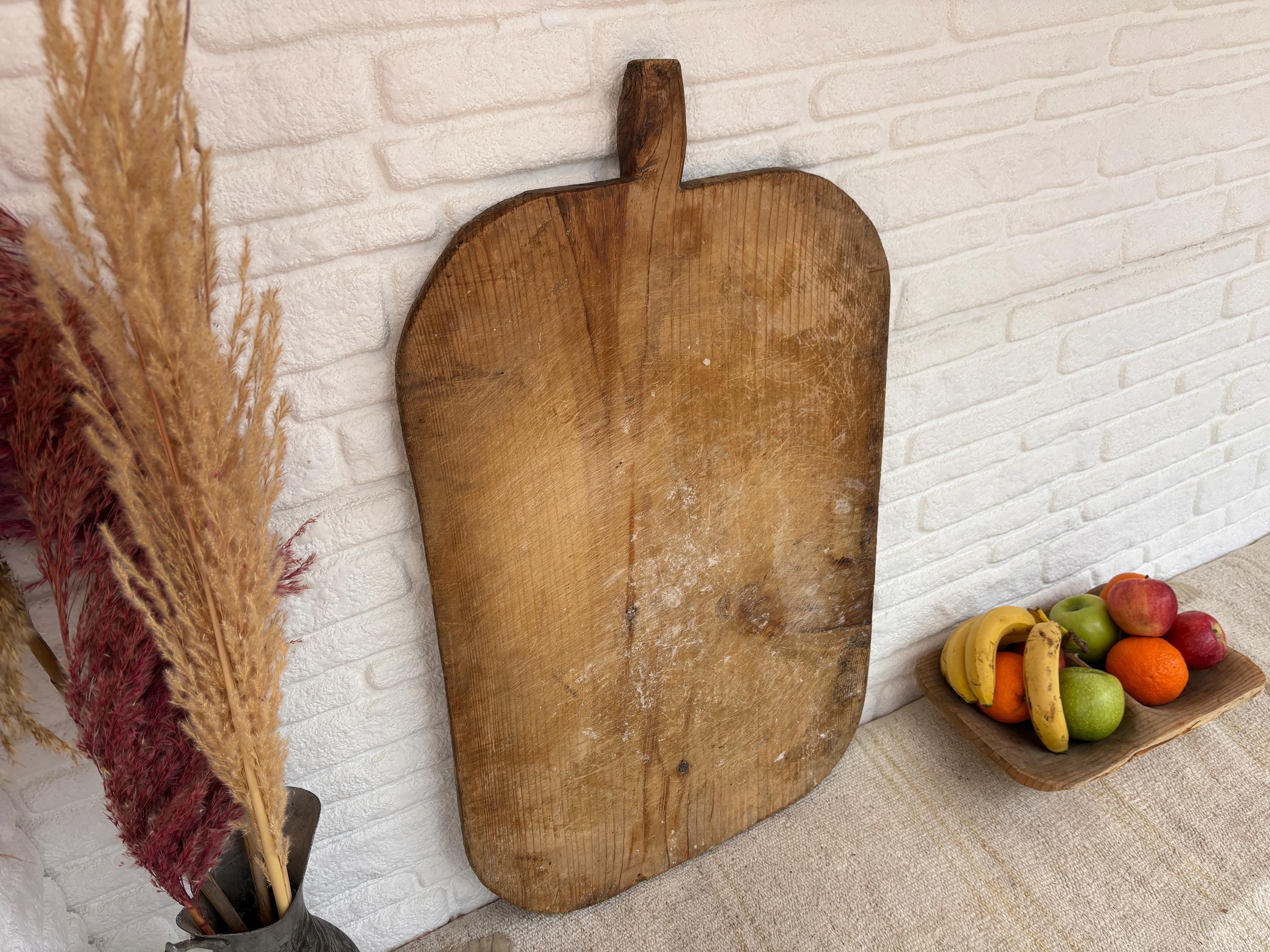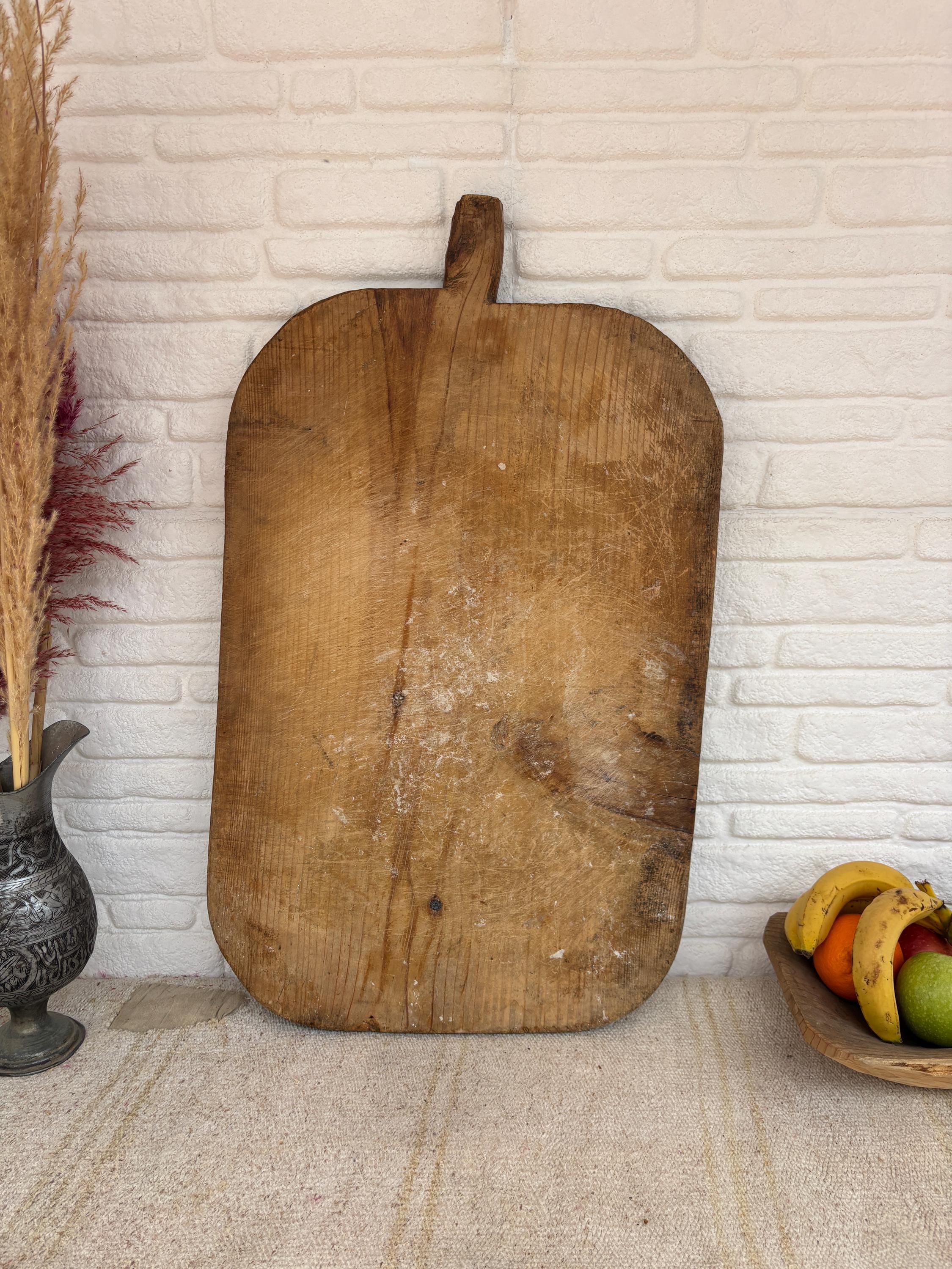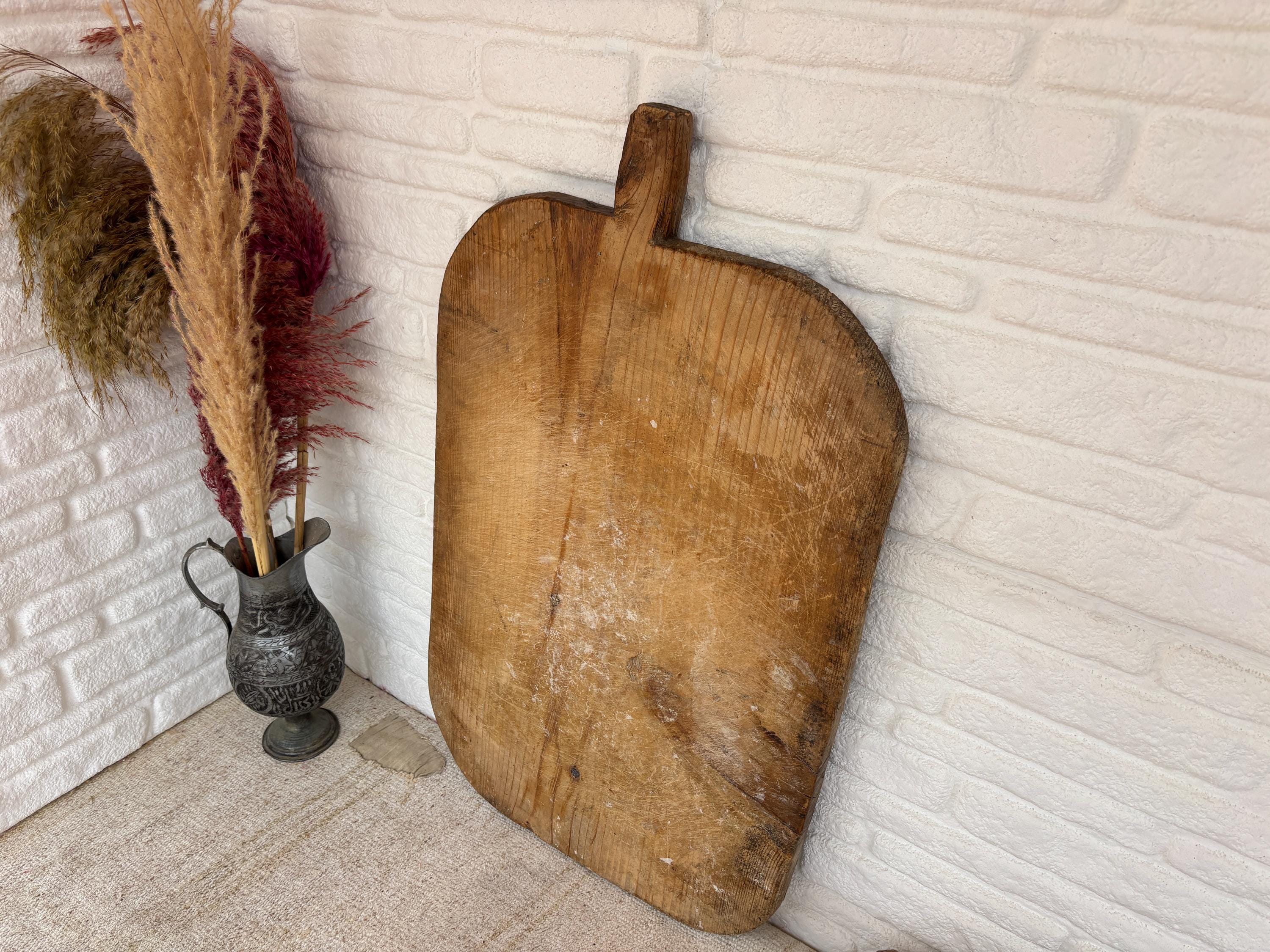 Crafted decades ago in rural Turkey, no two boards are exactly alike. Some are wide and worn smooth, others have deep patina or a hand-carved handle—each shaped by time and use. Whether hung on a kitchen wall, styled on a rustic table, or used as a serving piece, it adds soul to any space.