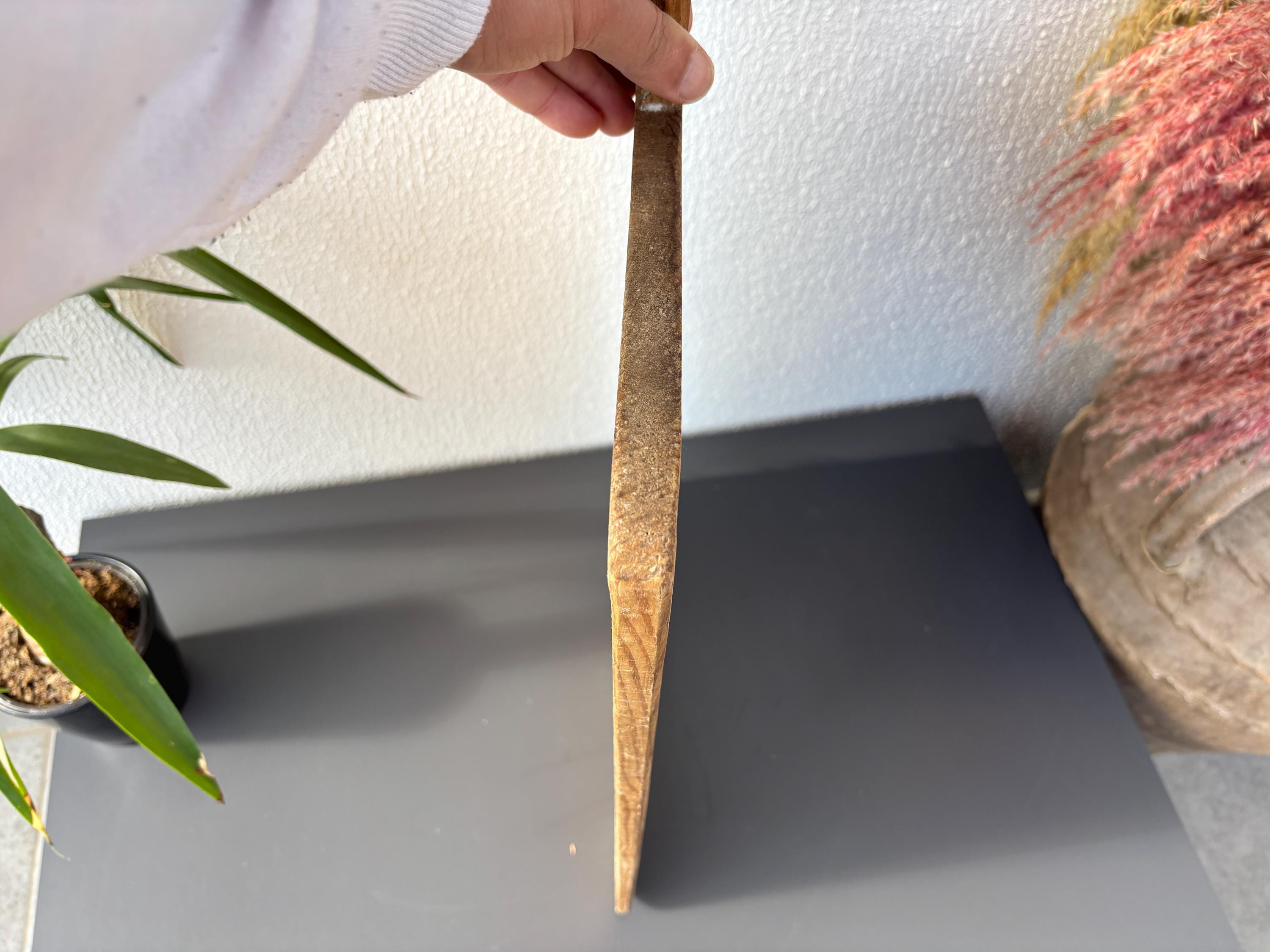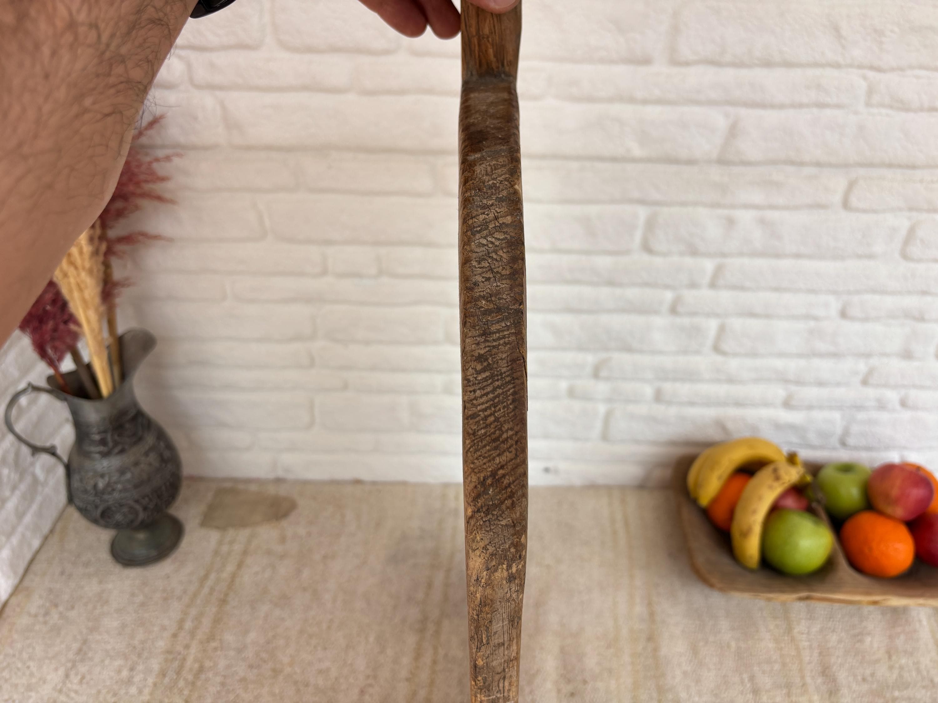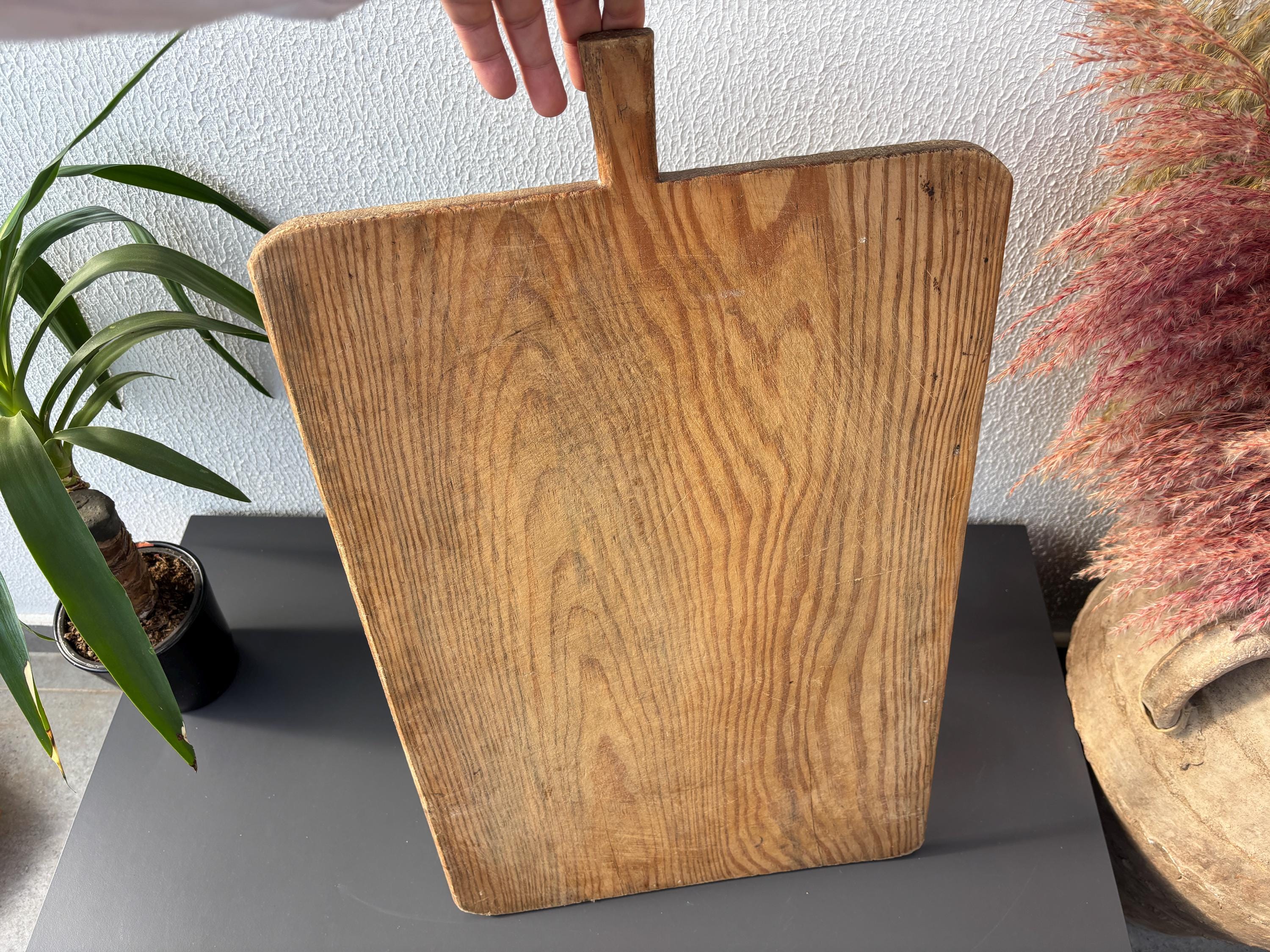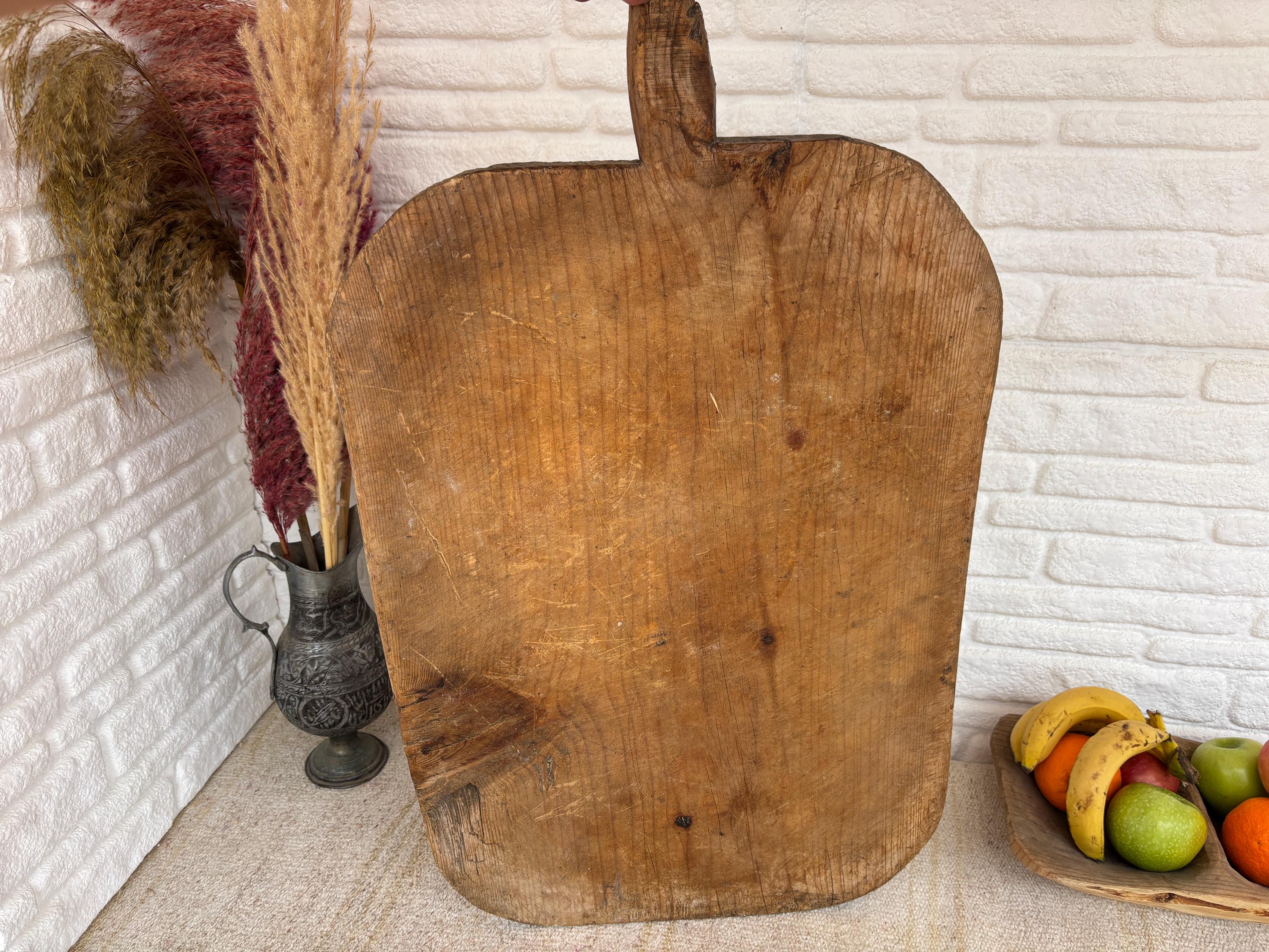 Crafted decades ago in rural Turkey, no two boards are exactly alike. Some are wide and worn smooth, others have deep patina or a hand-carved handle—each shaped by time and use. Whether hung on a kitchen wall, styled on a rustic table, or used as a serving piece, it adds soul to any space.
