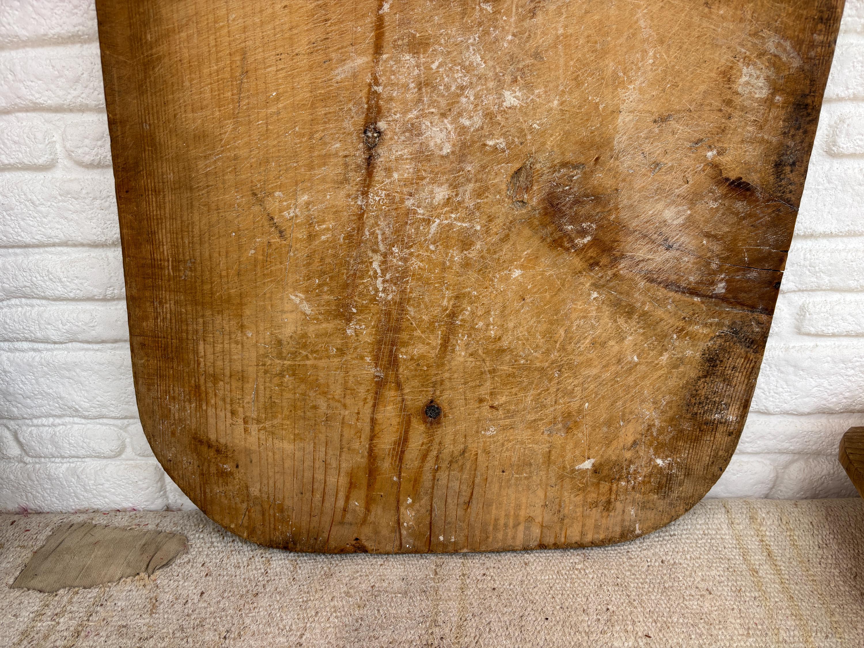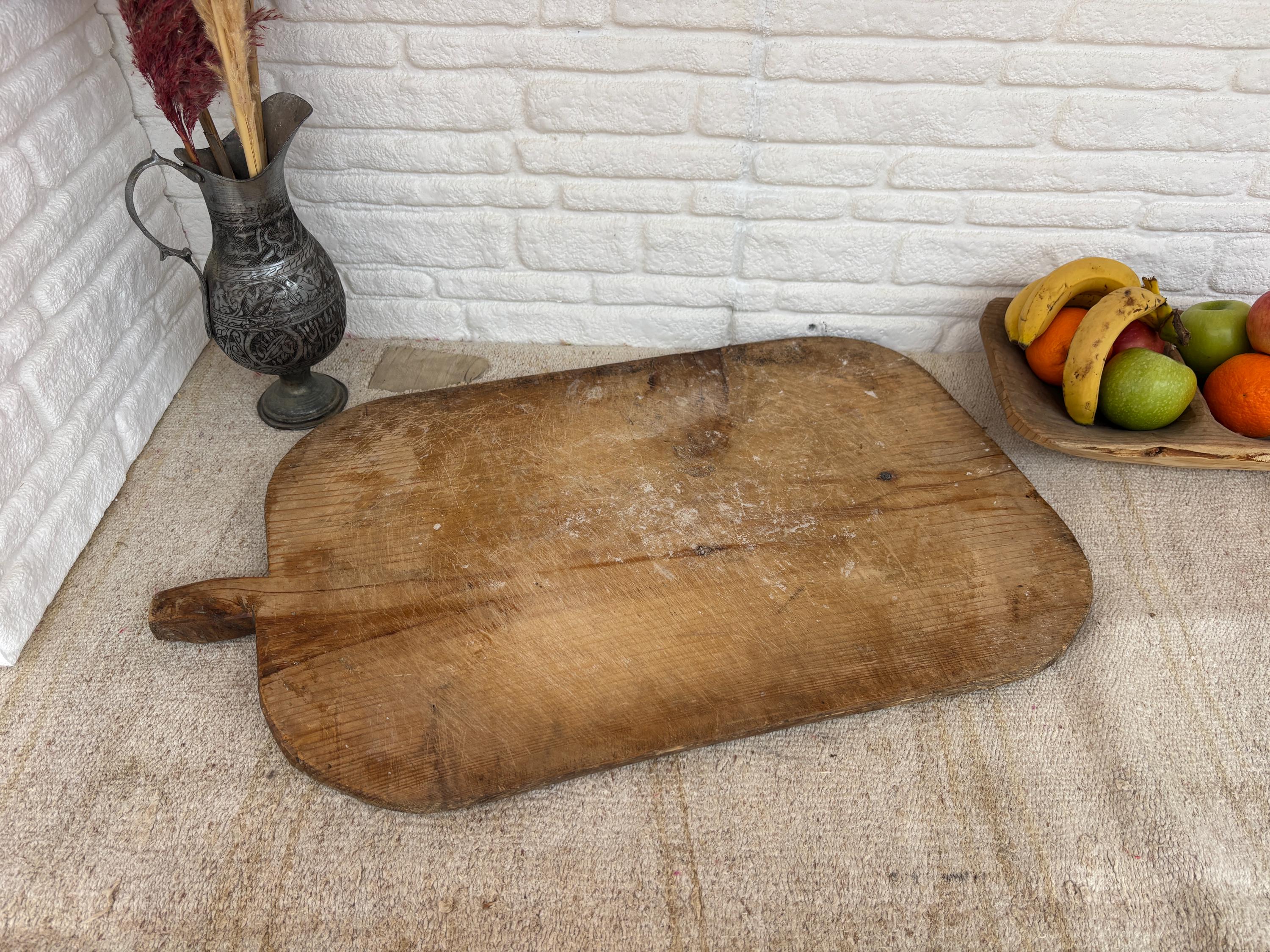 This vintage wooden board once belonged to a humble Anatolian kitchen, where it served not just as a tool, but as part of daily life. Used for kneading dough, slicing bread, and serving homemade meals, it carries the quiet charm of generations past. Hand-carved from solid wood, each piece has its own unique wear—marks that whisper stories of tradition, warmth, and gathering.