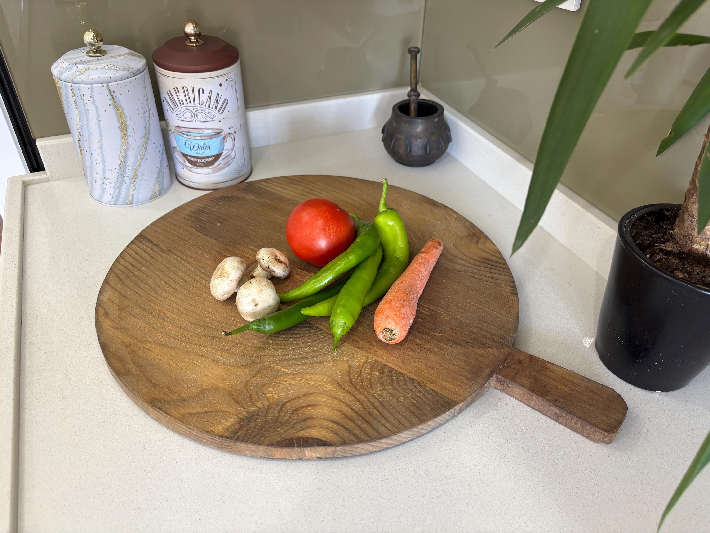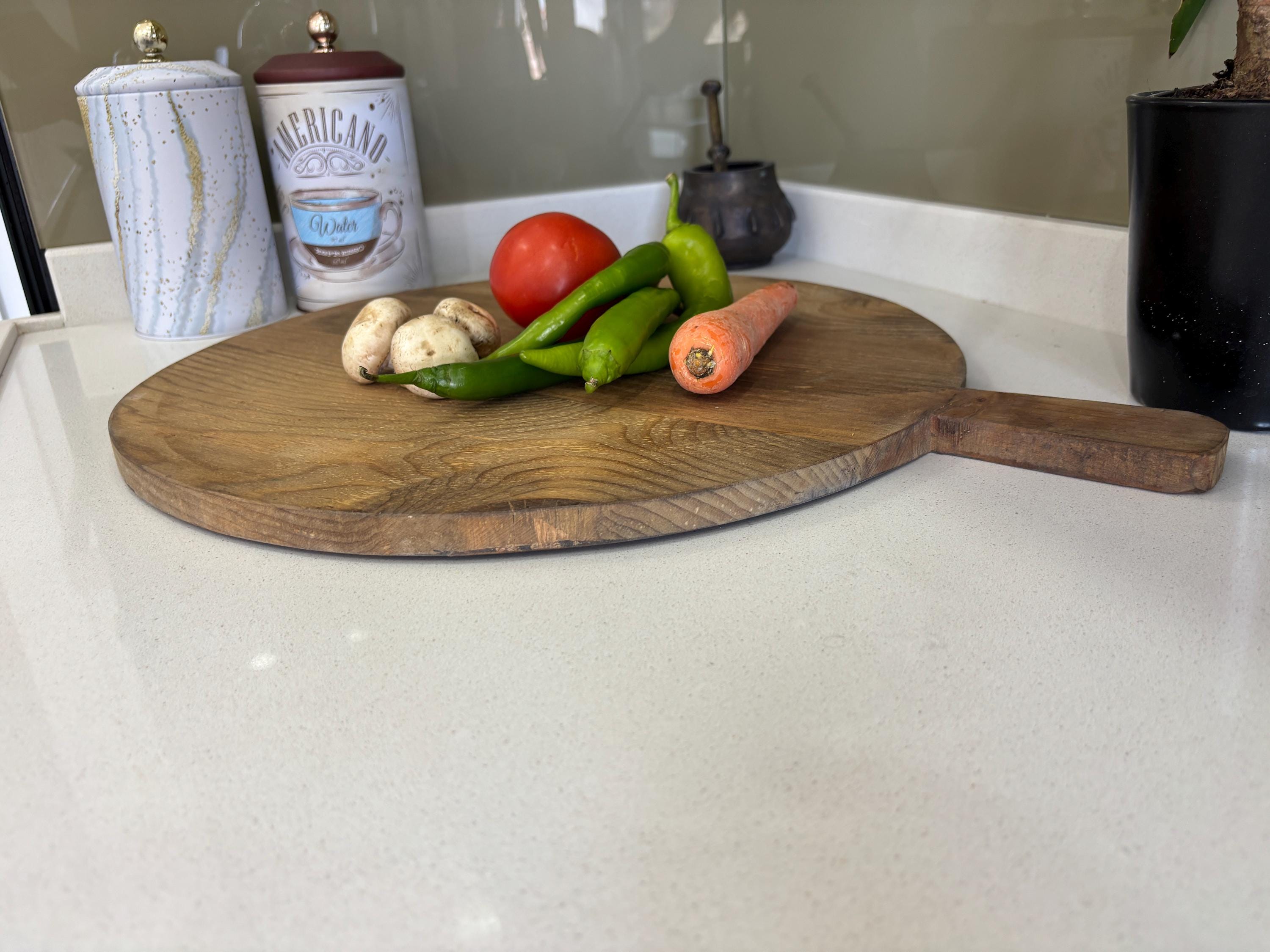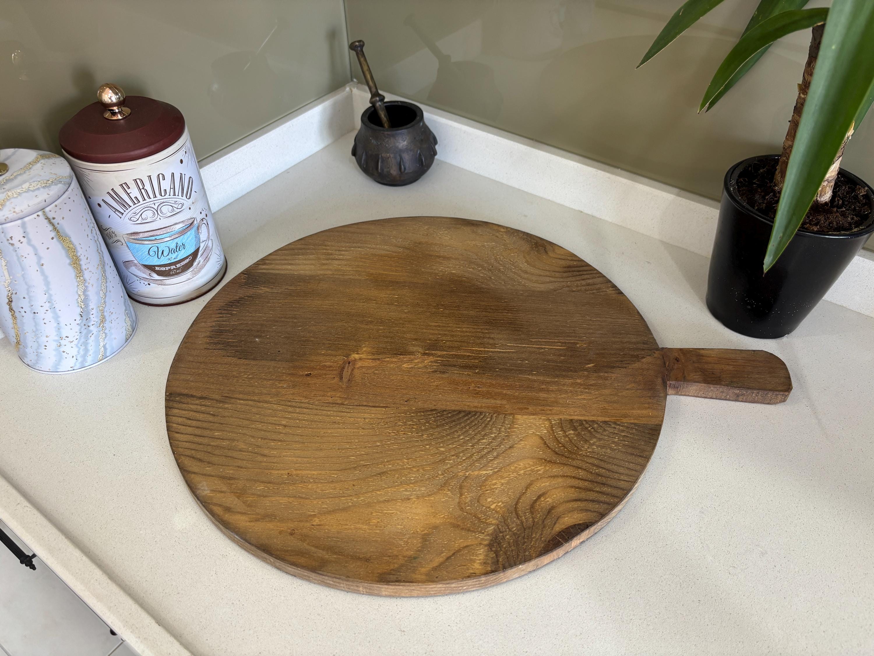 • Uses: Decorative wall piece, bread or pizza board, cheese/charcuterie tray, rustic kitchen prop