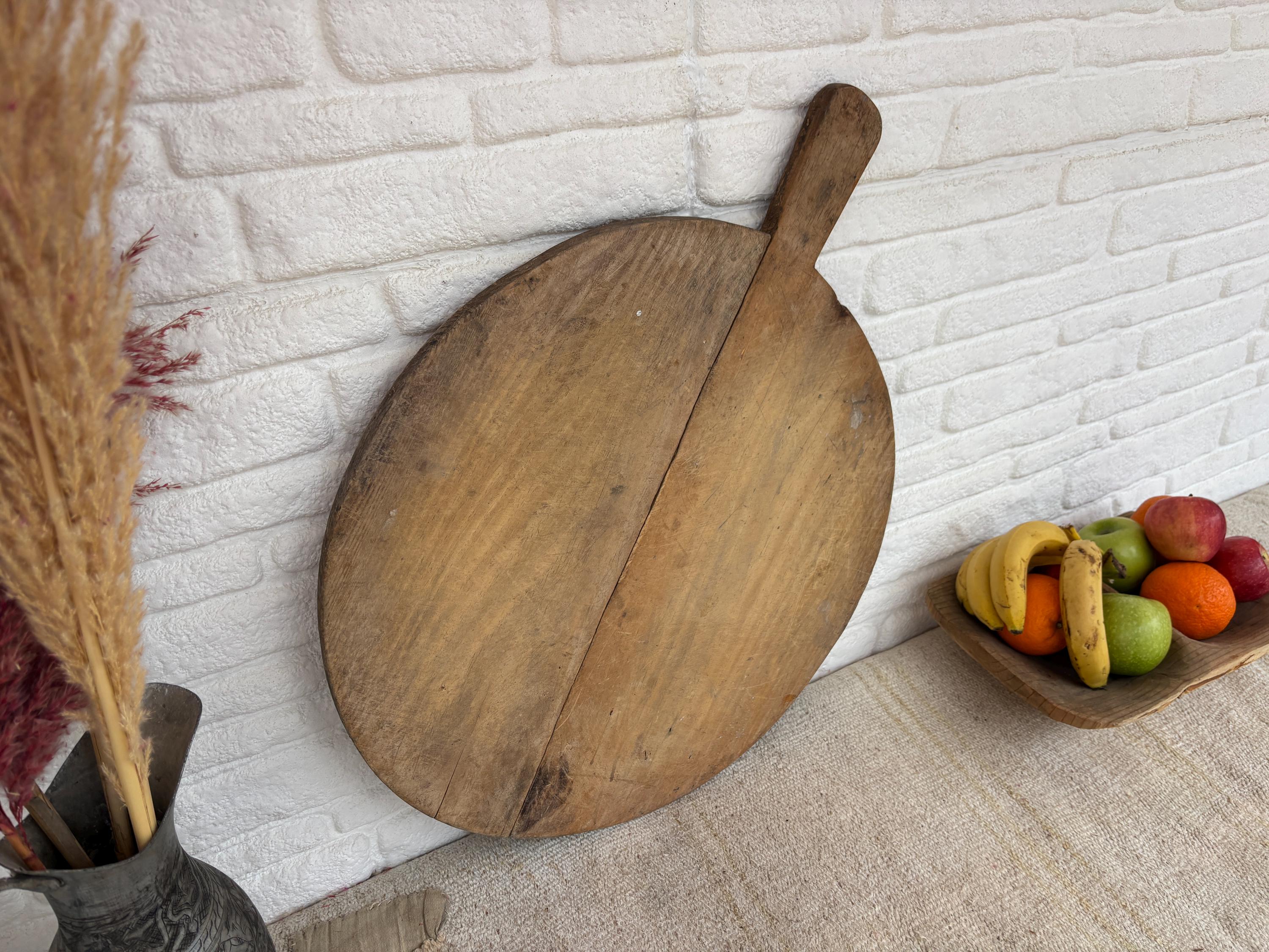 Crafted decades ago in rural Turkey, no two boards are exactly alike. Some are wide and worn smooth, others have deep patina or a hand-carved handle—each shaped by time and use. Whether hung on a kitchen wall, styled on a rustic table, or used as a serving piece, it adds soul to any space.
