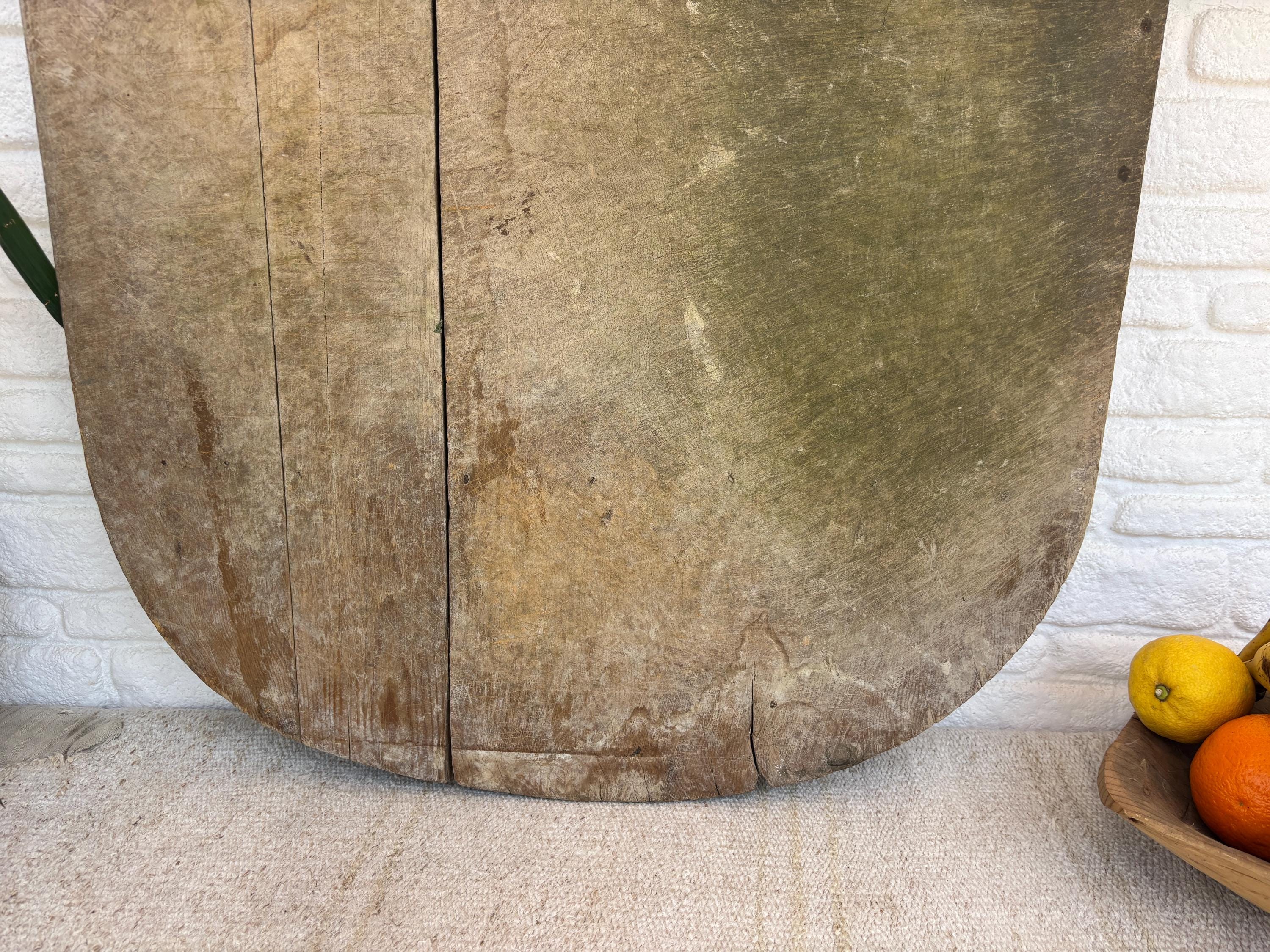 This vintage wooden board once belonged to a humble Anatolian kitchen, where it served not just as a tool, but as part of daily life. Used for kneading dough, slicing bread, and serving homemade meals, it carries the quiet charm of generations past. Hand-carved from solid wood, each piece has its own unique wear—marks that whisper stories of tradition, warmth, and gathering.