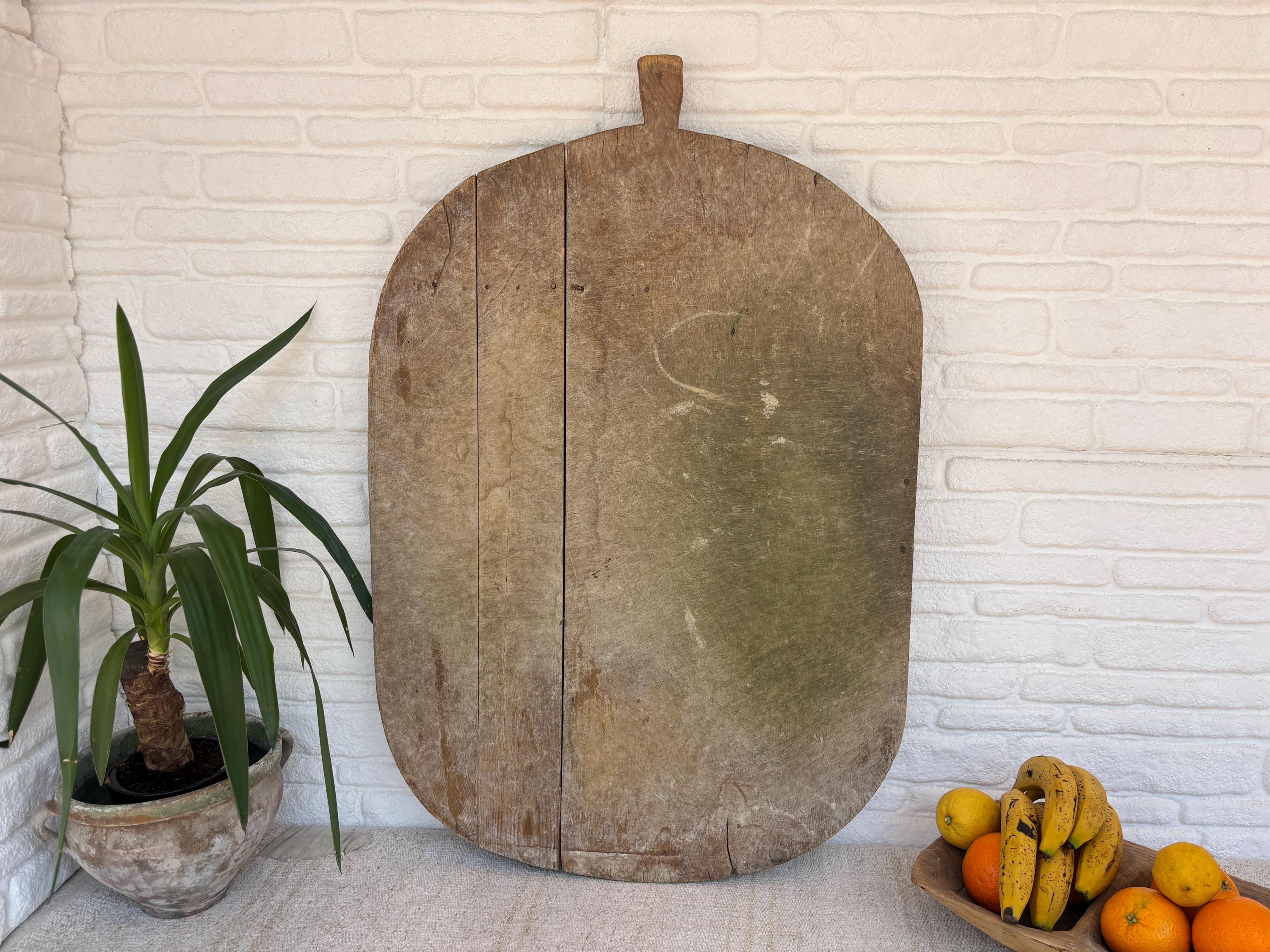 Crafted decades ago in rural Turkey, no two boards are exactly alike. Some are wide and worn smooth, others have deep patina or a hand-carved handle—each shaped by time and use. Whether hung on a kitchen wall, styled on a rustic table, or used as a serving piece, it adds soul to any space.