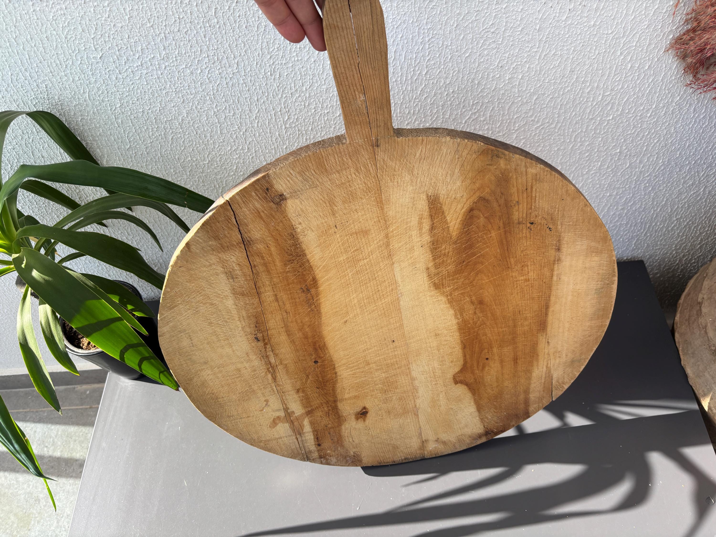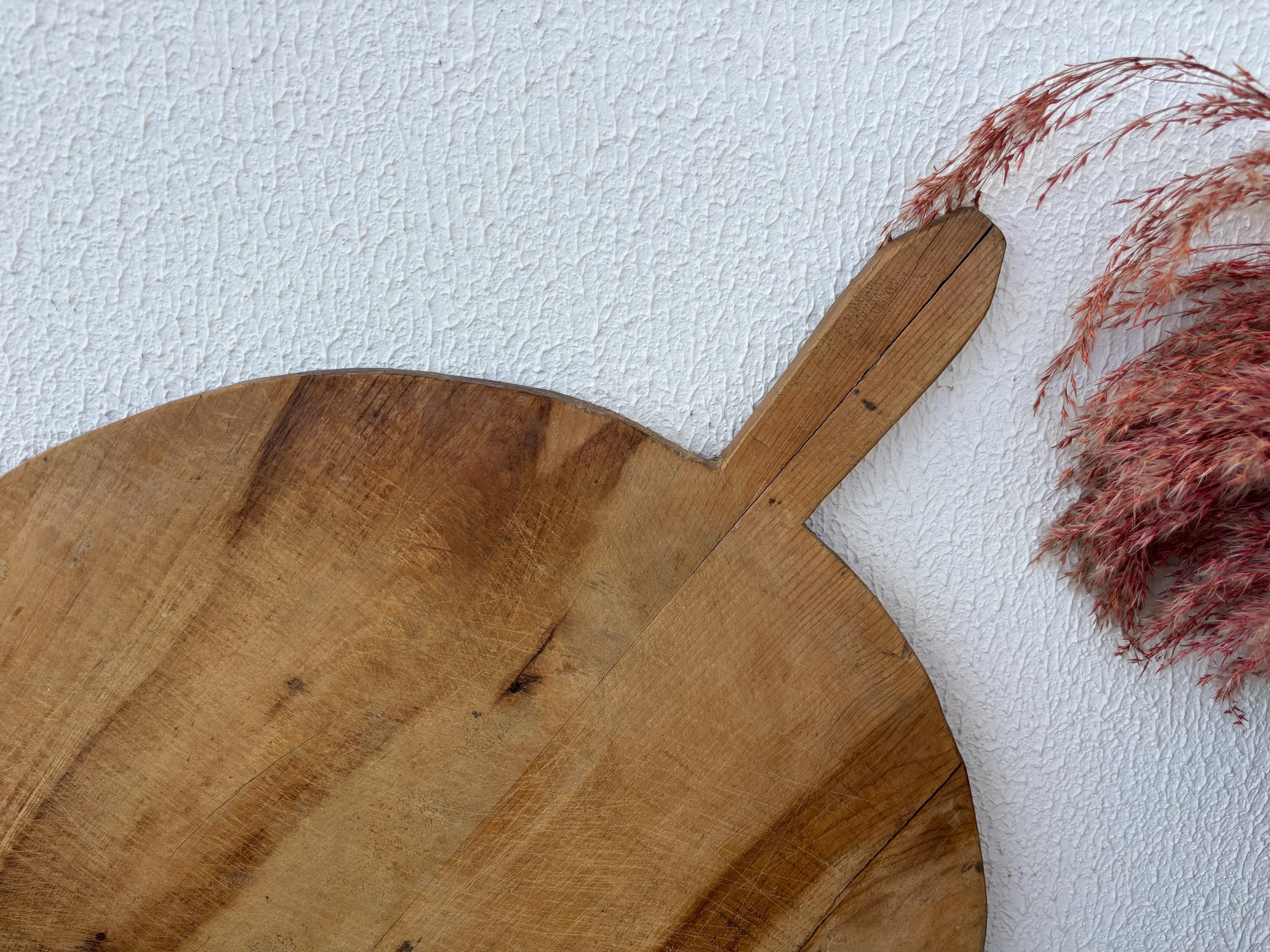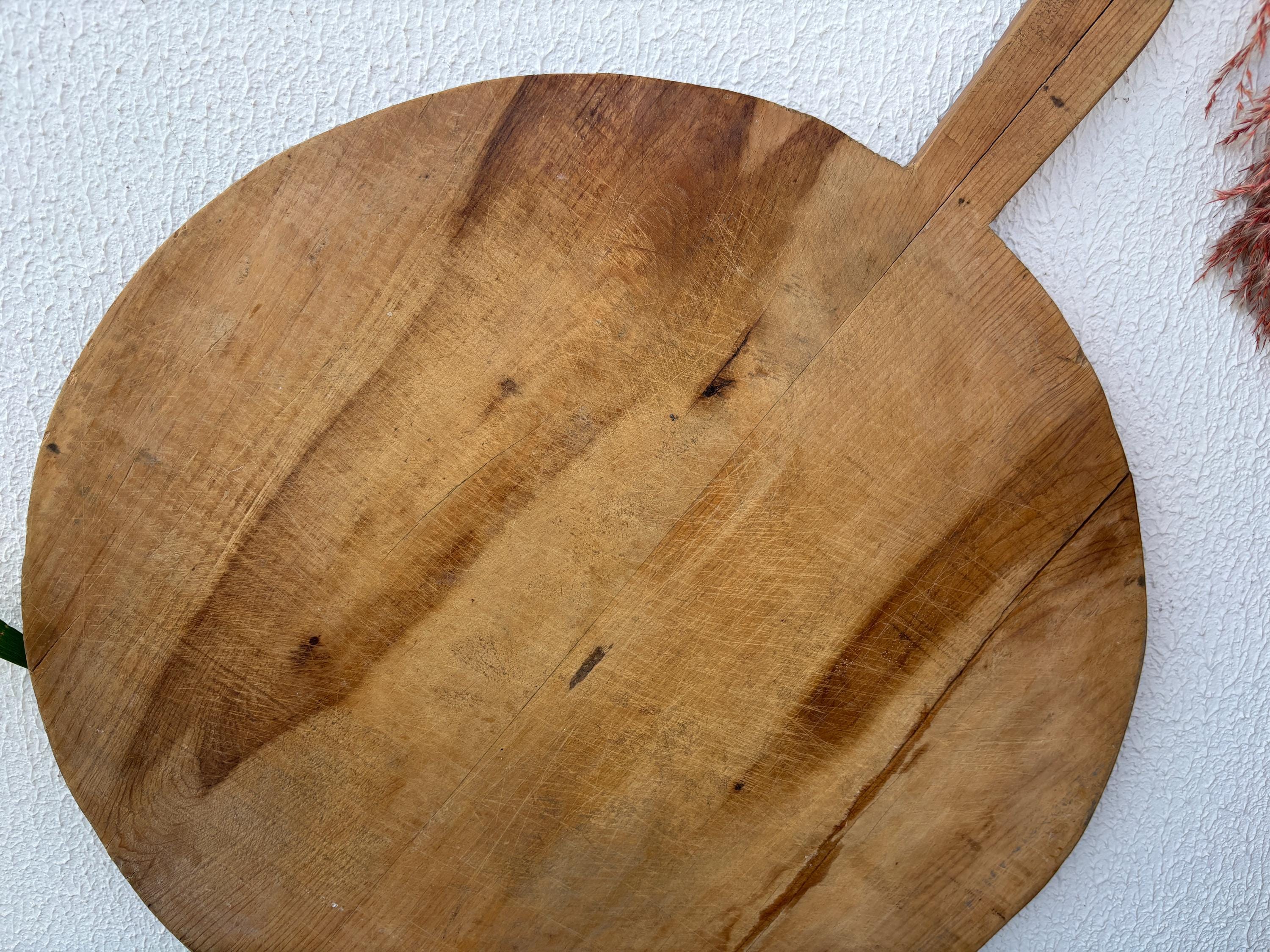 Crafted decades ago in rural Turkey, no two boards are exactly alike. Some are wide and worn smooth, others have deep patina or a hand-carved handle—each shaped by time and use. Whether hung on a kitchen wall, styled on a rustic table, or used as a serving piece, it adds soul to any space.