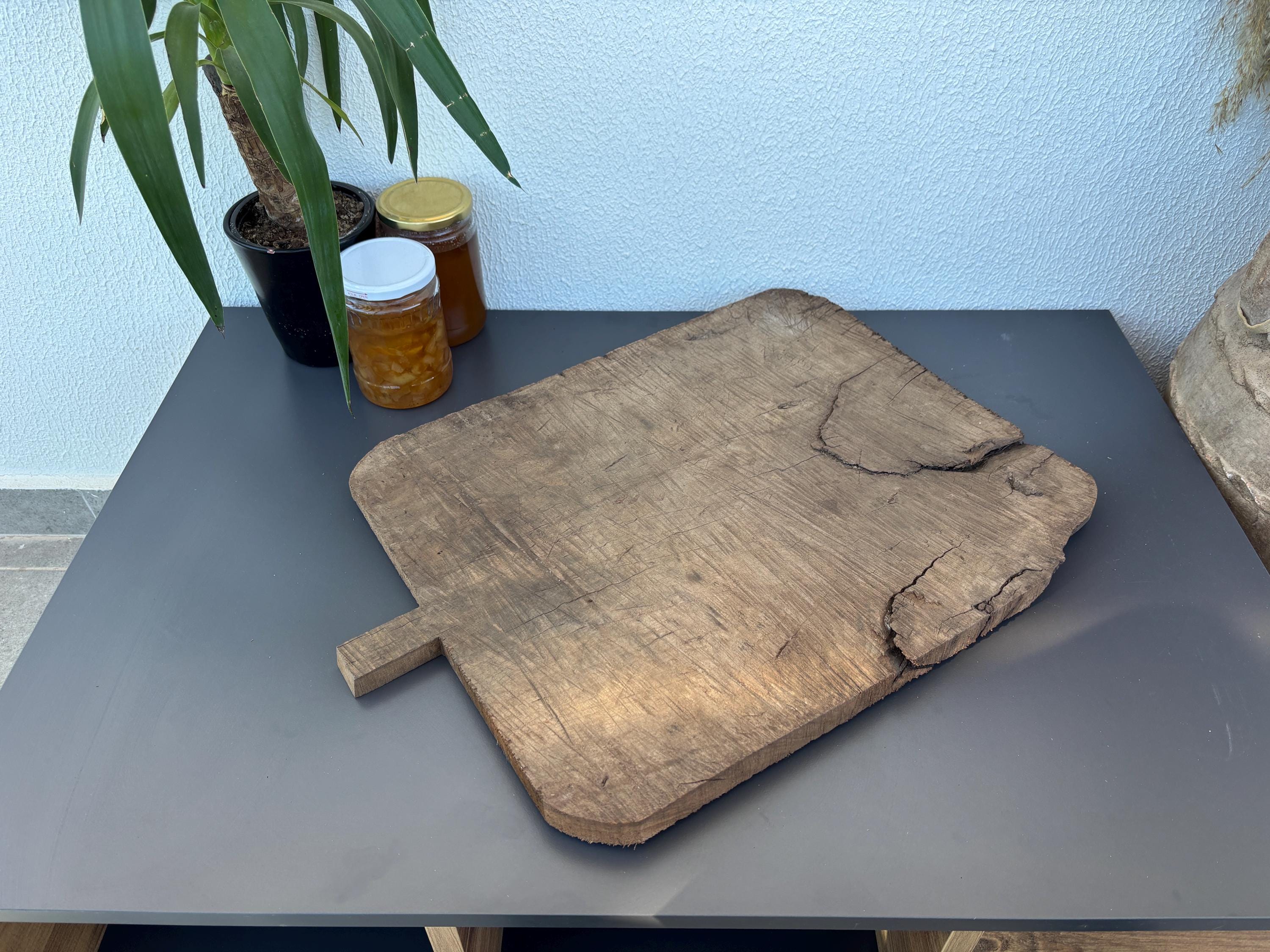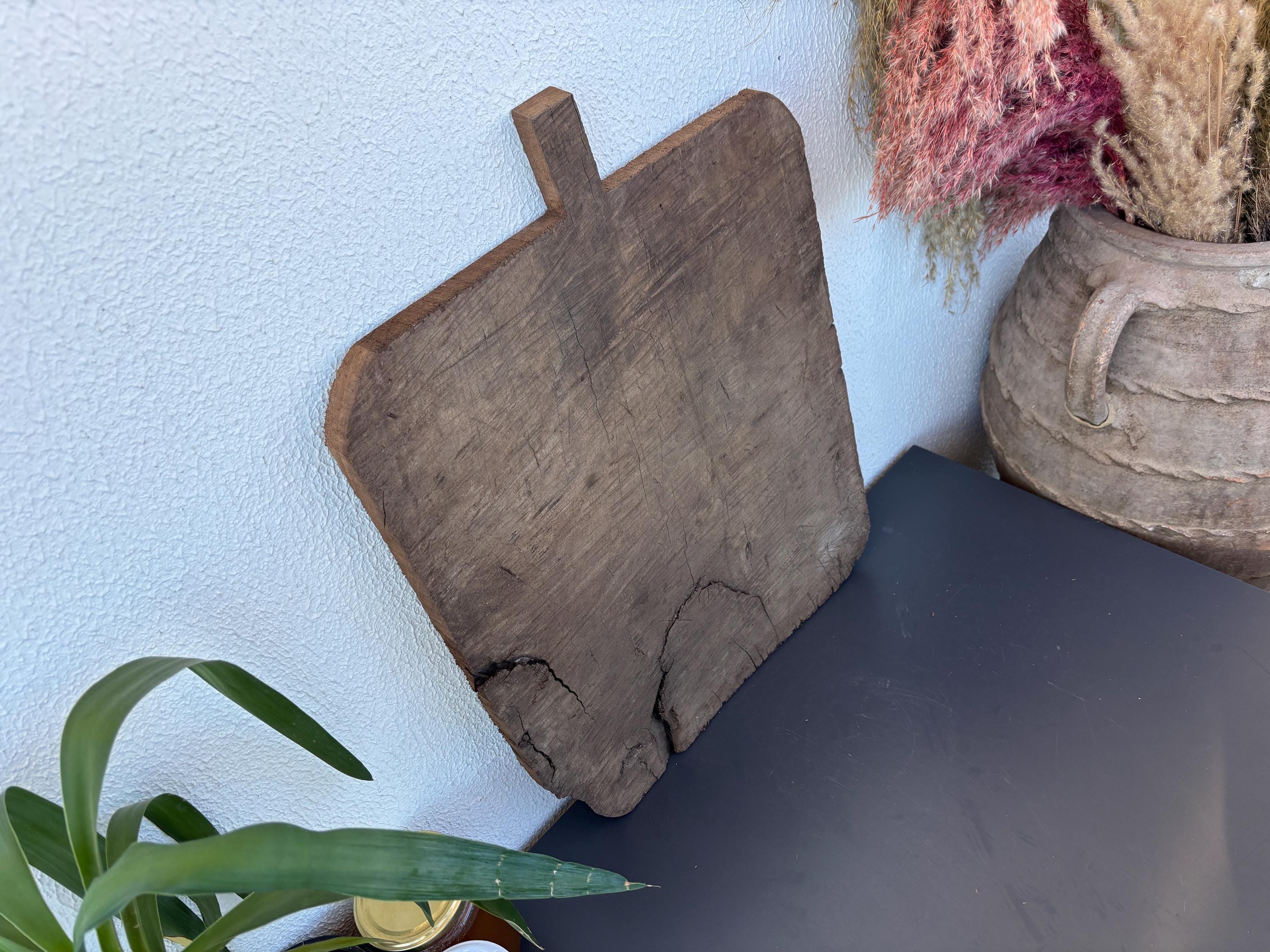 Crafted decades ago in rural Turkey, no two boards are exactly alike. Some are wide and worn smooth, others have deep patina or a hand-carved handle—each shaped by time and use. Whether hung on a kitchen wall, styled on a rustic table, or used as a serving piece, it adds soul to any space.
