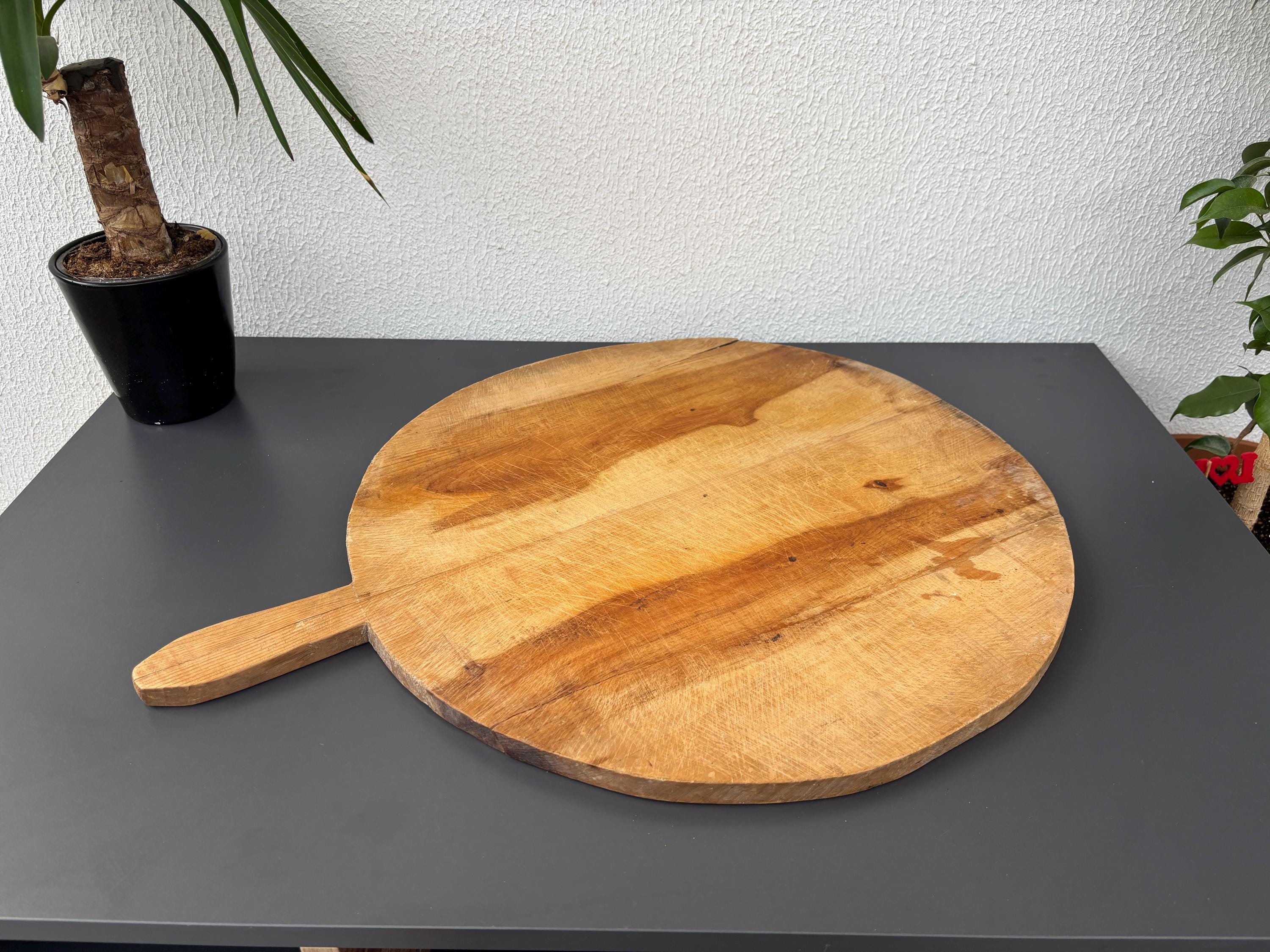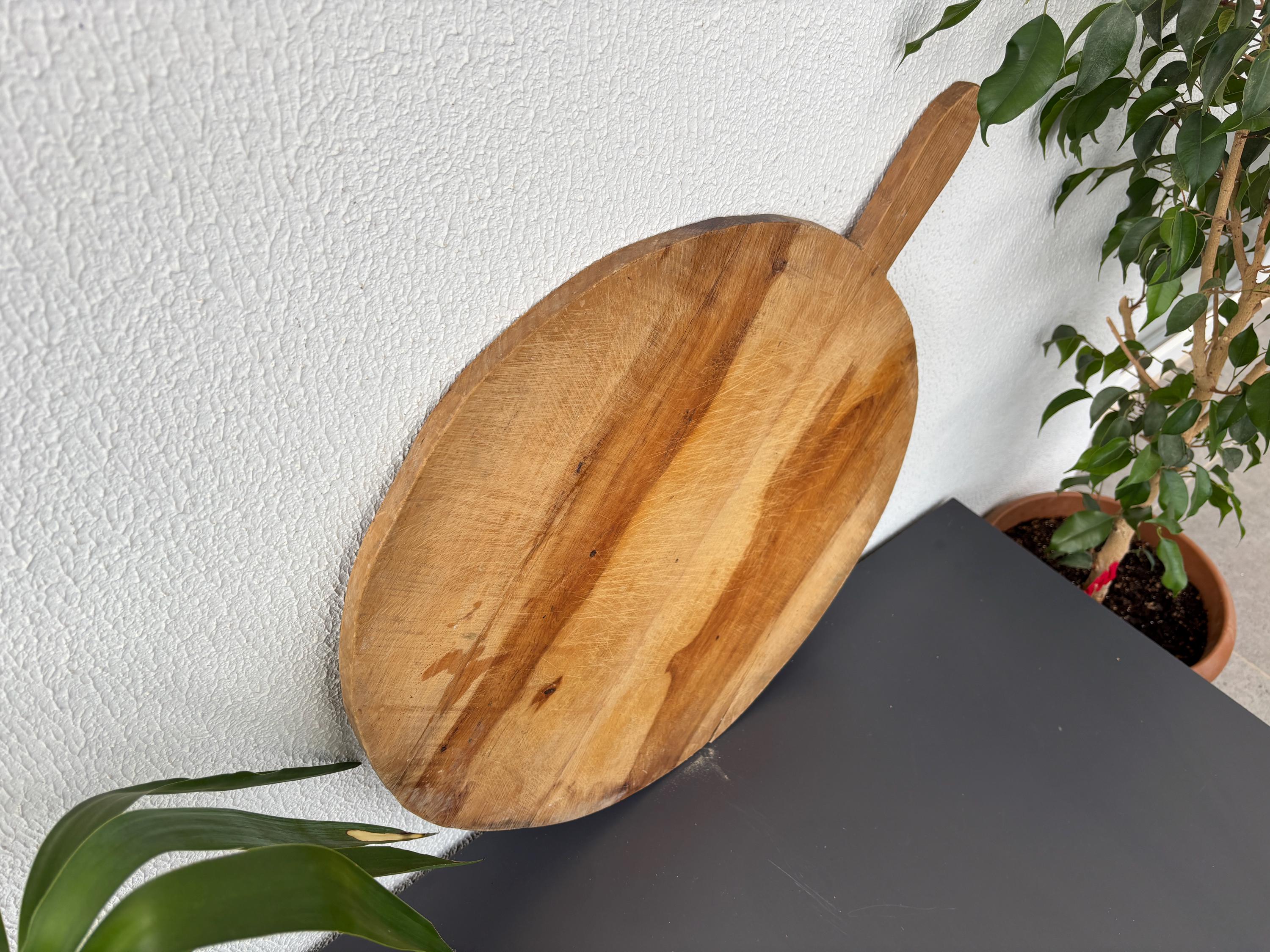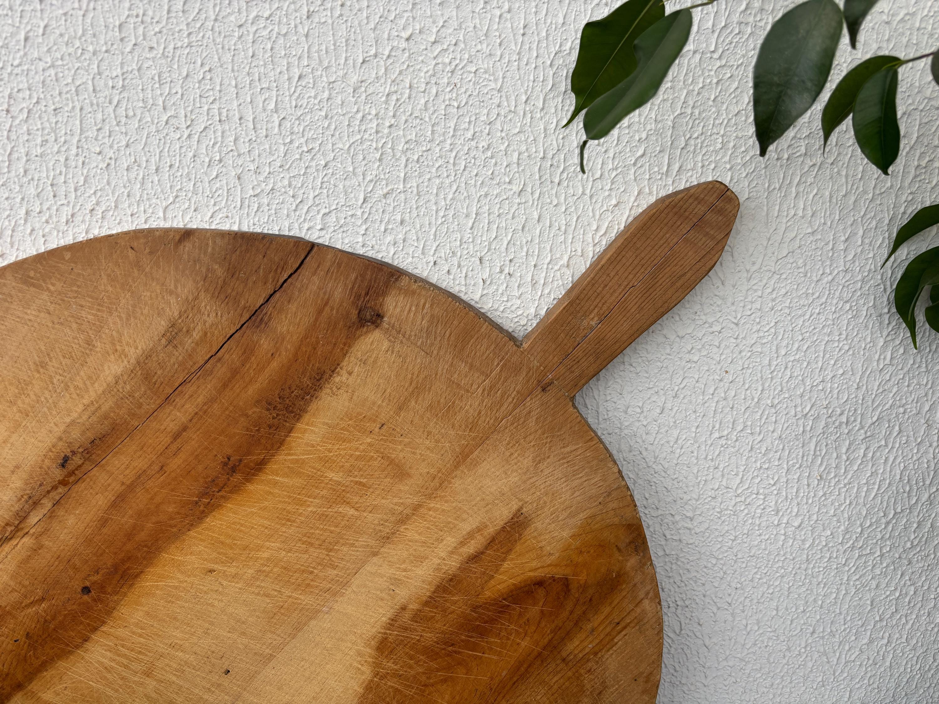 Crafted decades ago in rural Turkey, no two boards are exactly alike. Some are wide and worn smooth, others have deep patina or a hand-carved handle—each shaped by time and use. Whether hung on a kitchen wall, styled on a rustic table, or used as a serving piece, it adds soul to any space.