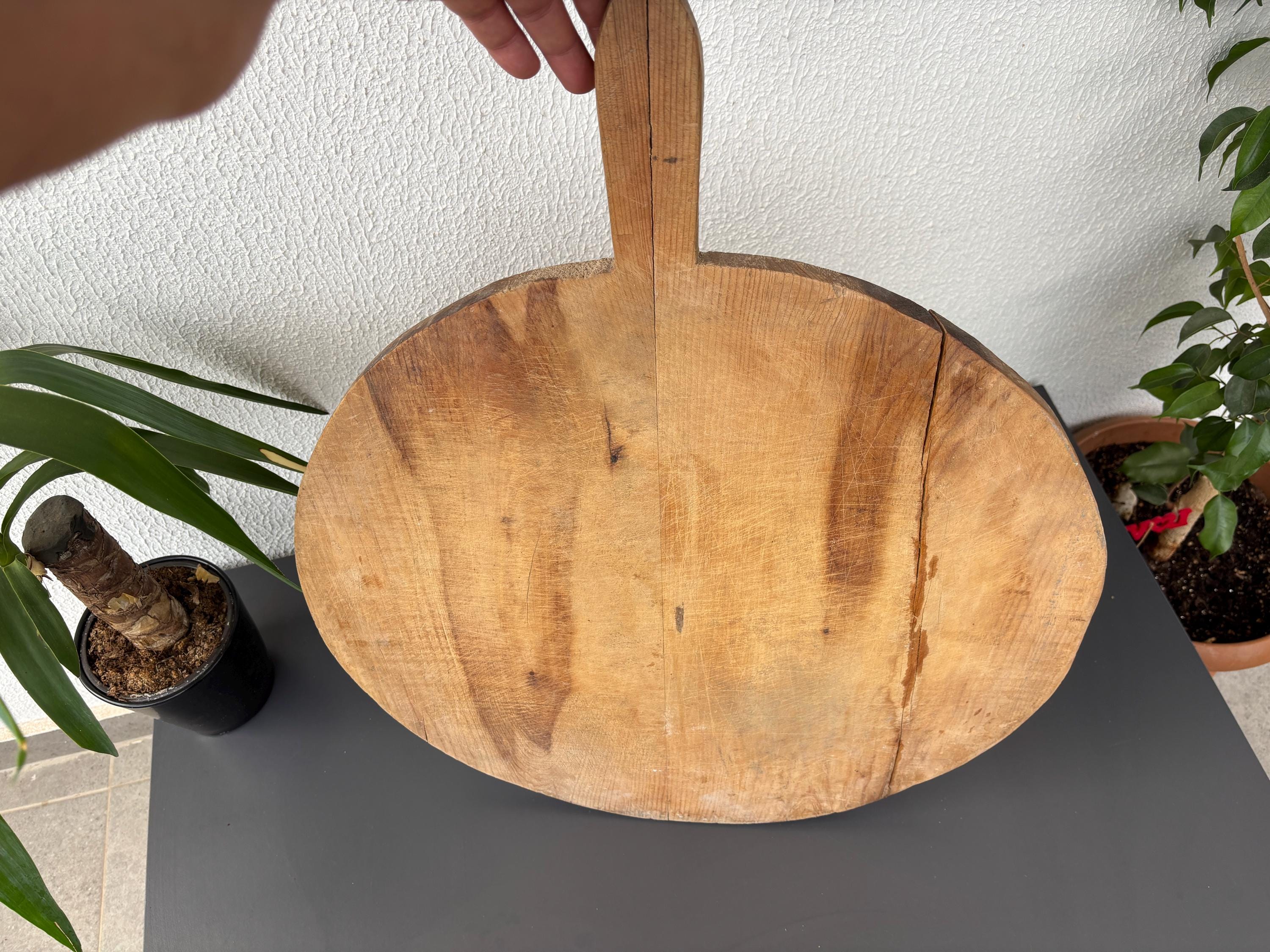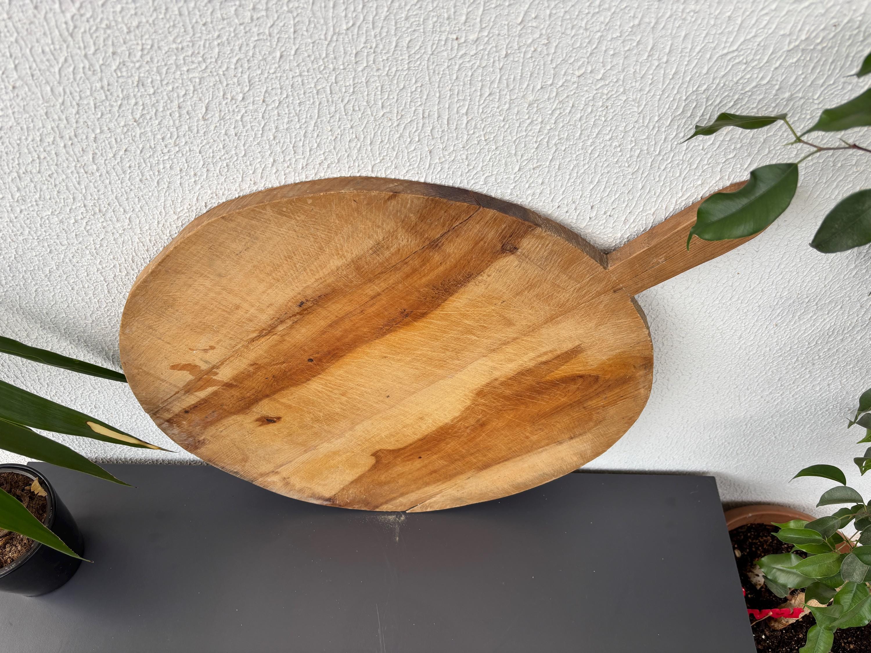 This vintage wooden board once belonged to a humble Anatolian kitchen, where it served not just as a tool, but as part of daily life. Used for kneading dough, slicing bread, and serving homemade meals, it carries the quiet charm of generations past. Hand-carved from solid wood, each piece has its own unique wear—marks that whisper stories of tradition, warmth, and gathering.