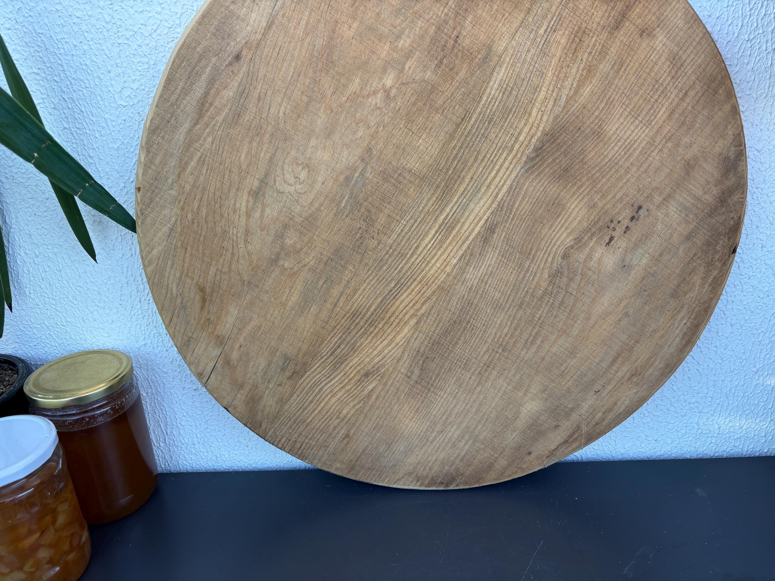The surface bears marks, cracks, and flour traces from decades of use, making it a one-of-a-kind primitive antique. Its generous size makes it perfect for styling in a kitchen, dining area, or as a statement serving board for gatherings.