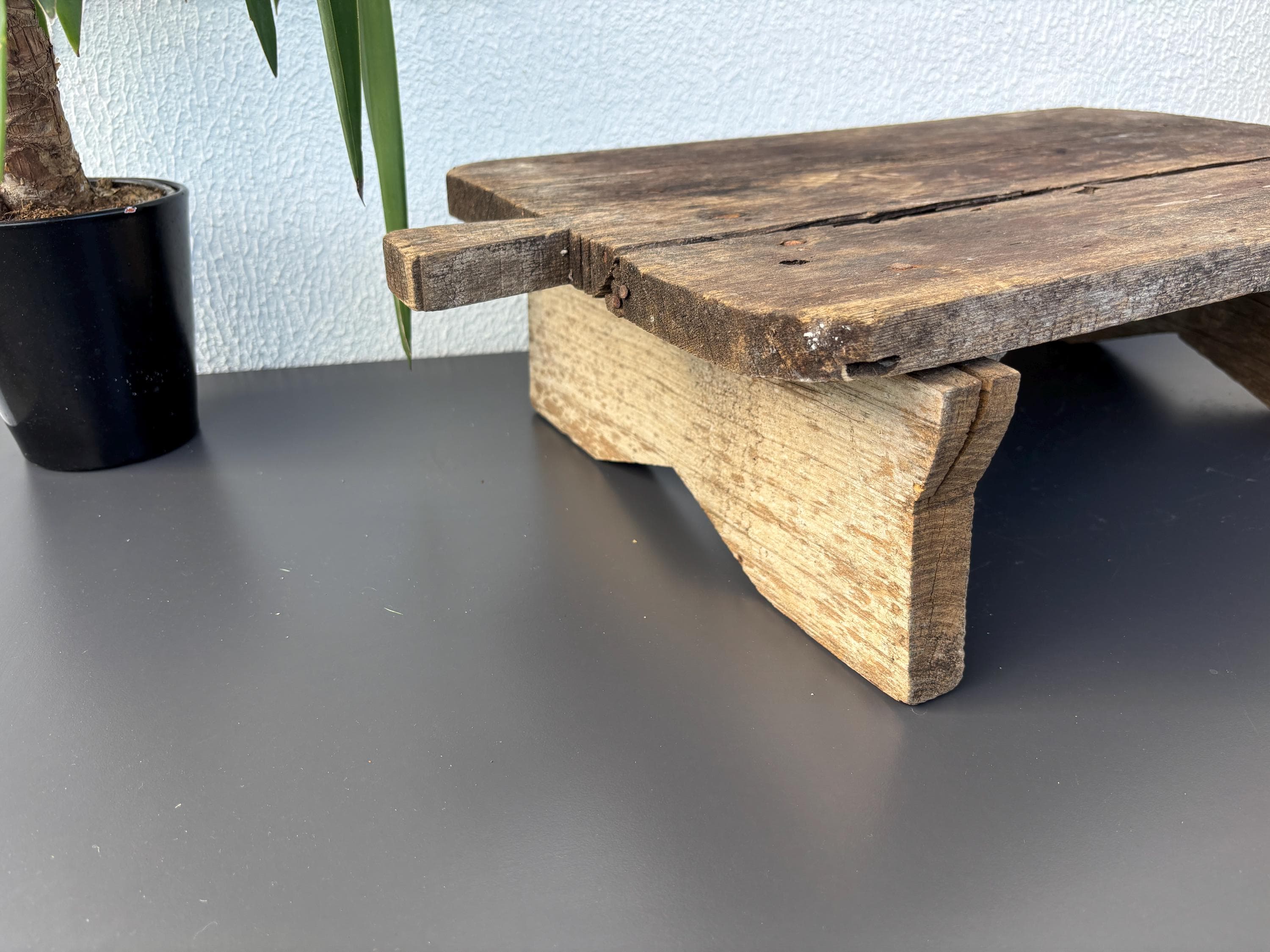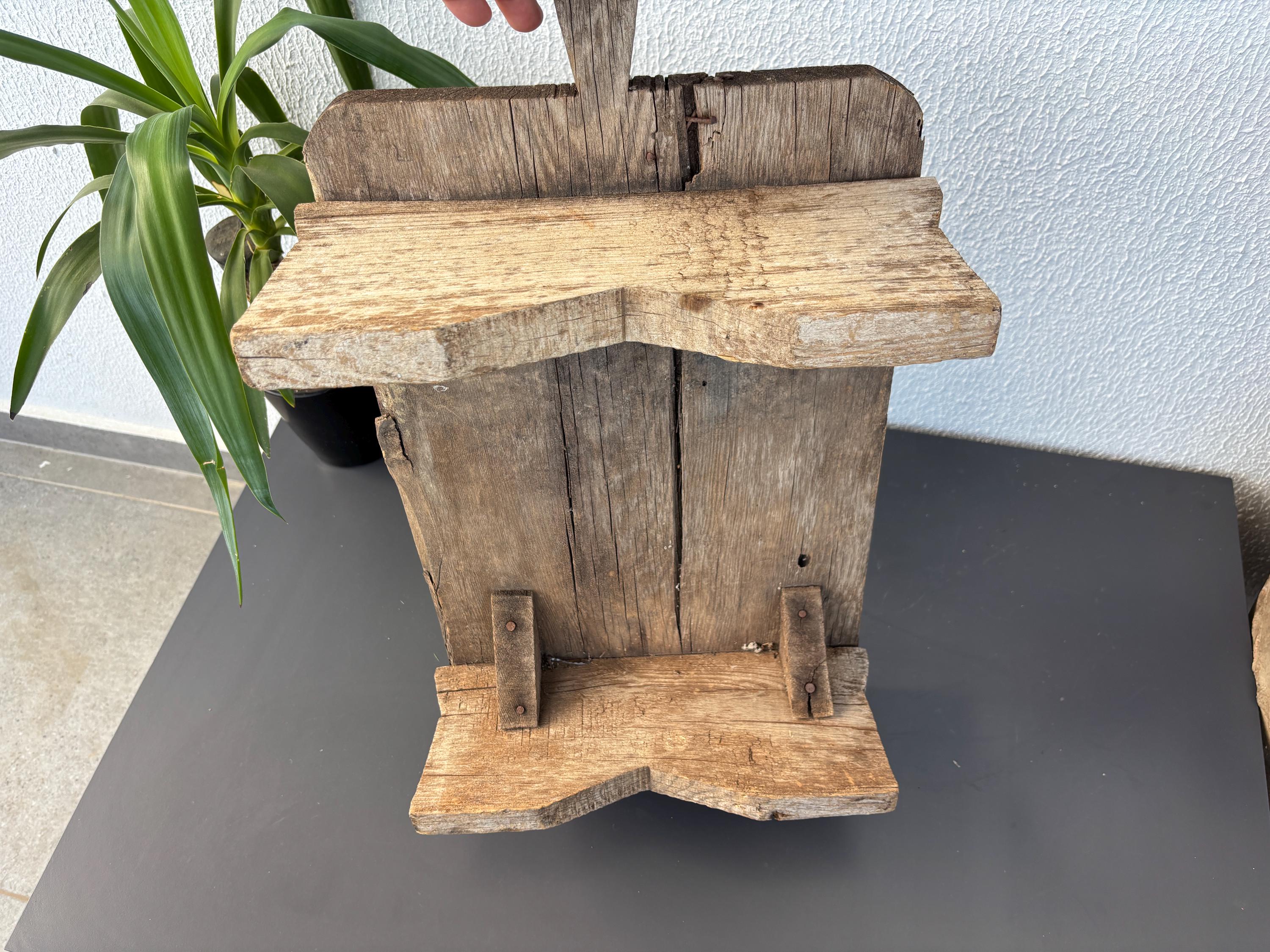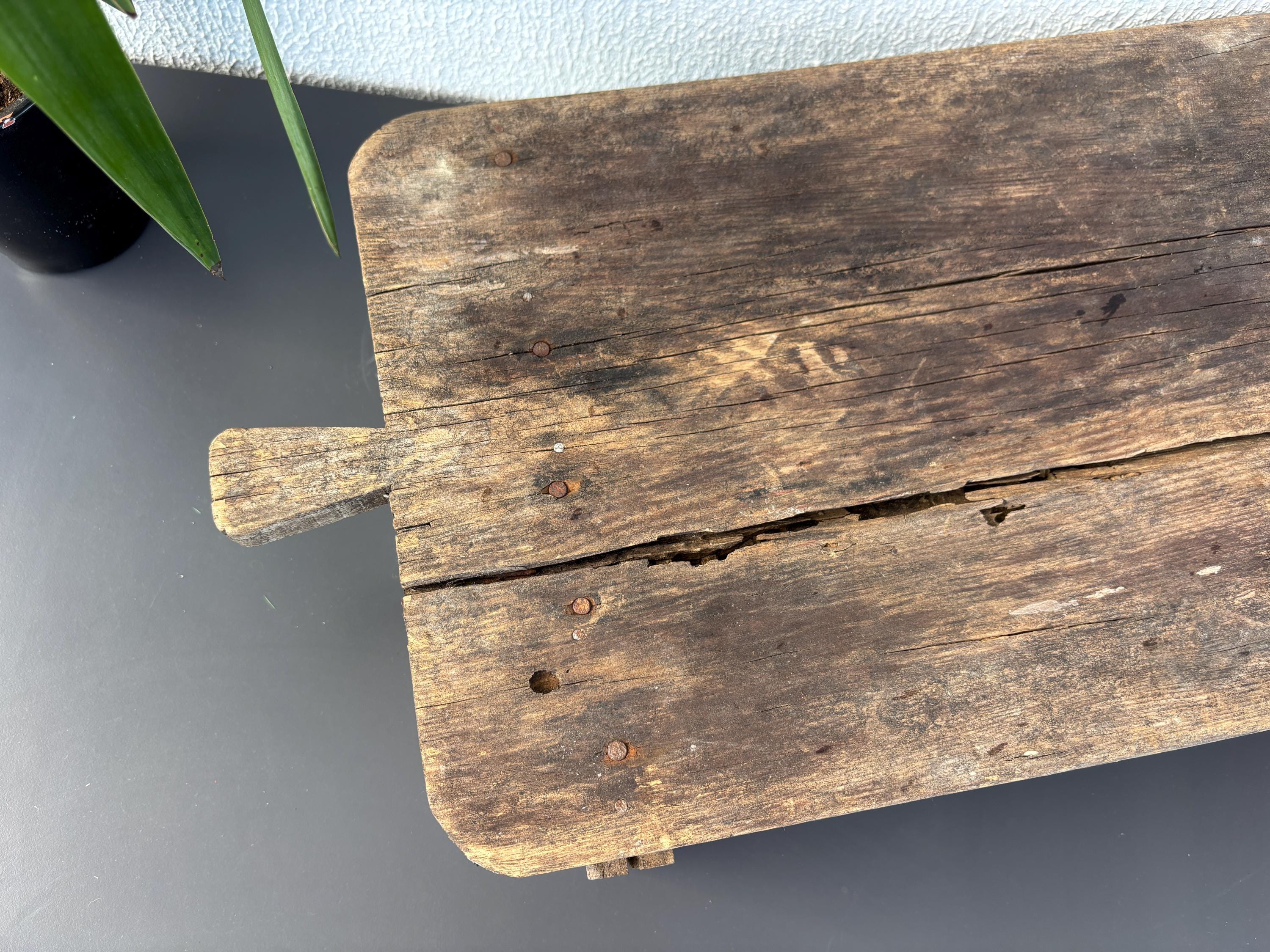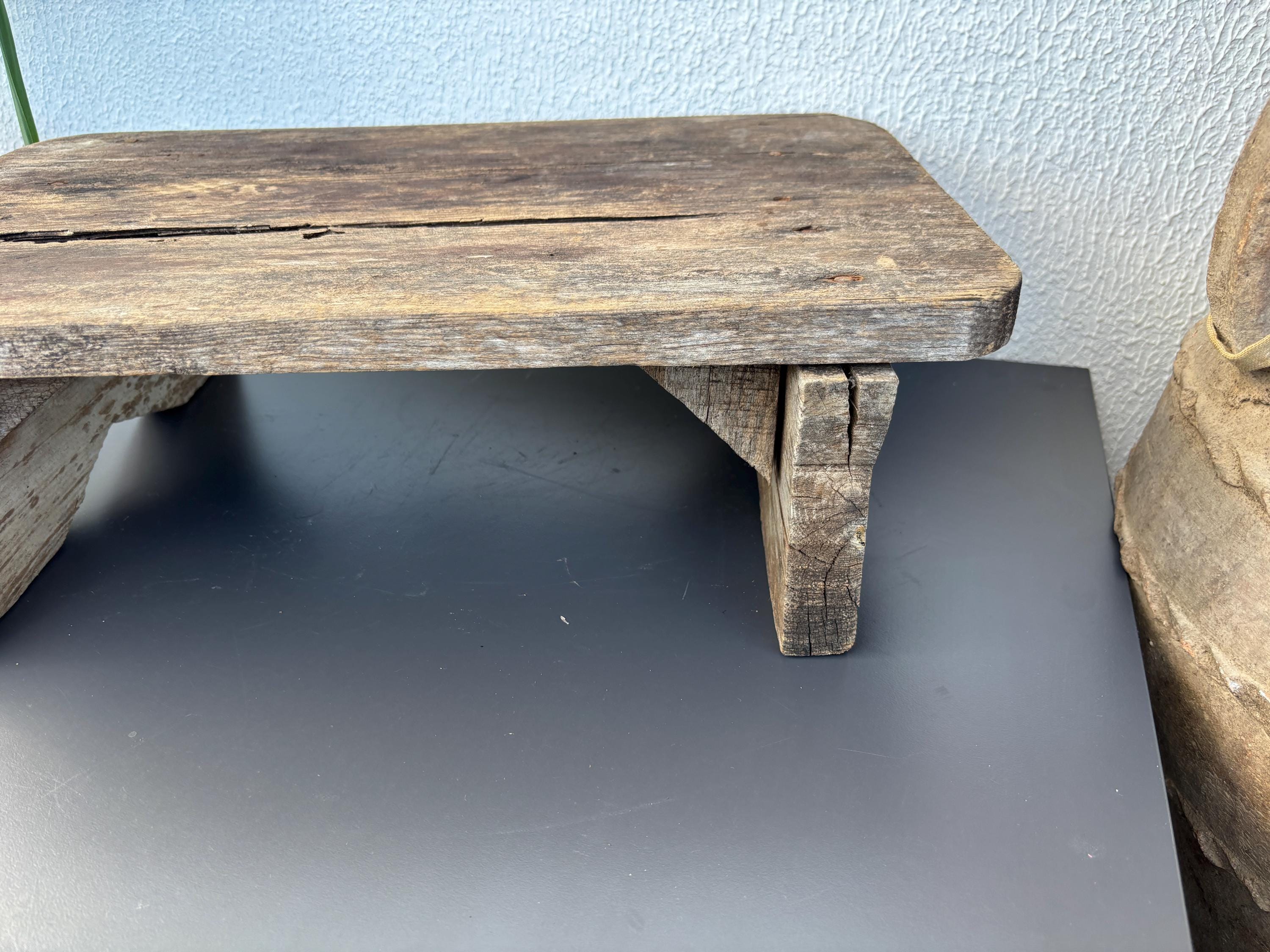 Bring authentic rustic charm to your home with this vintage handmade Vintage Rustic Coffee Table. Traditionally used in Anatolian villages for baking, this one-of-a-kind piece is hand-carved from solid aged wood. It features a beautiful patina and unique wood grain, making it perfect as a rustic kitchen accent, wall decor, or serving tray.