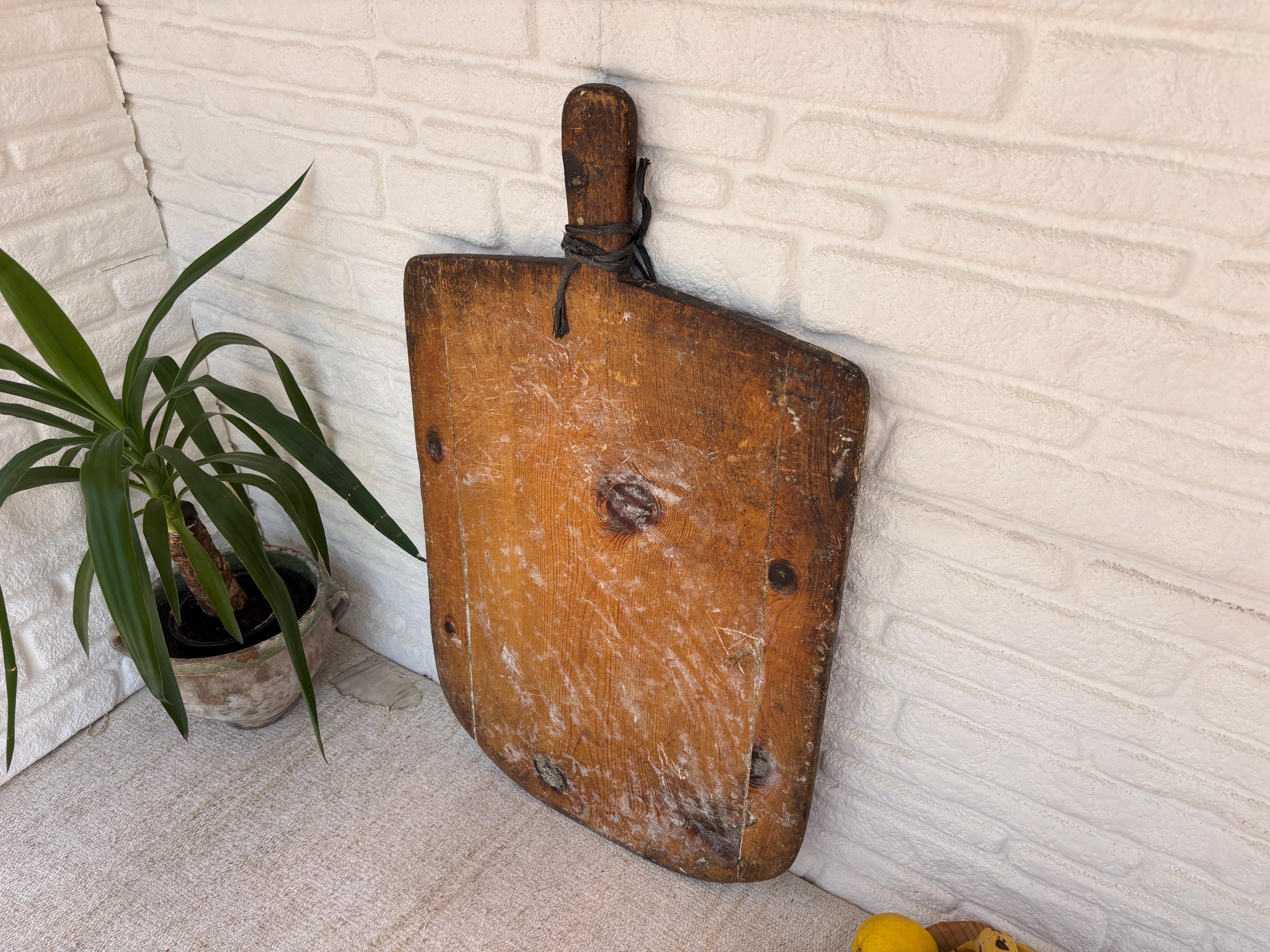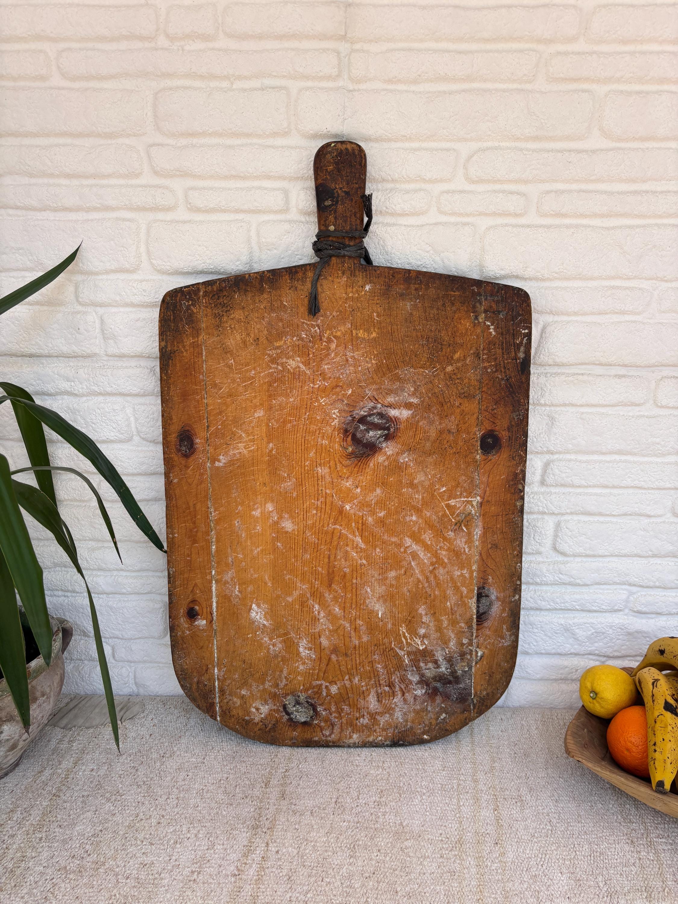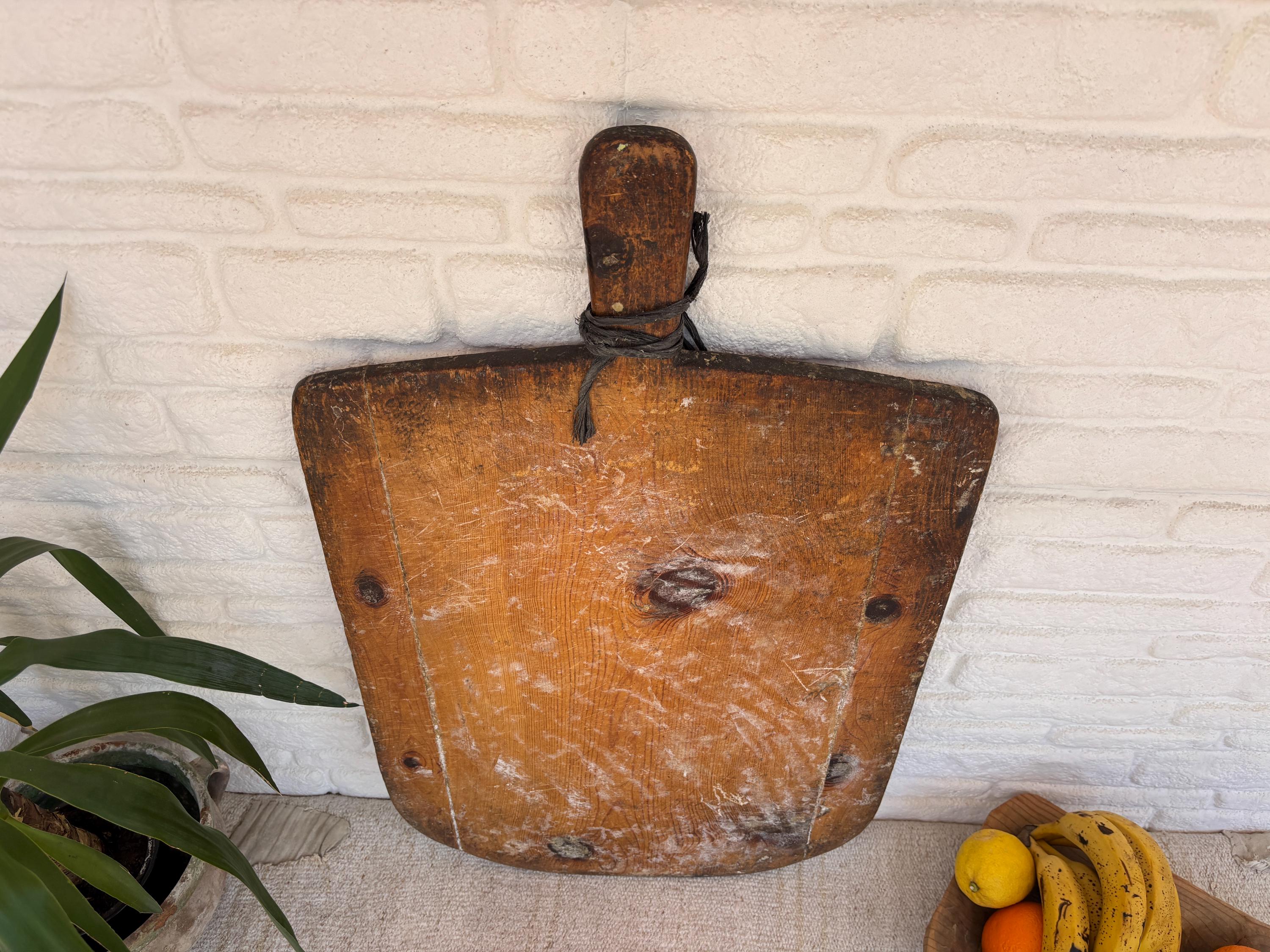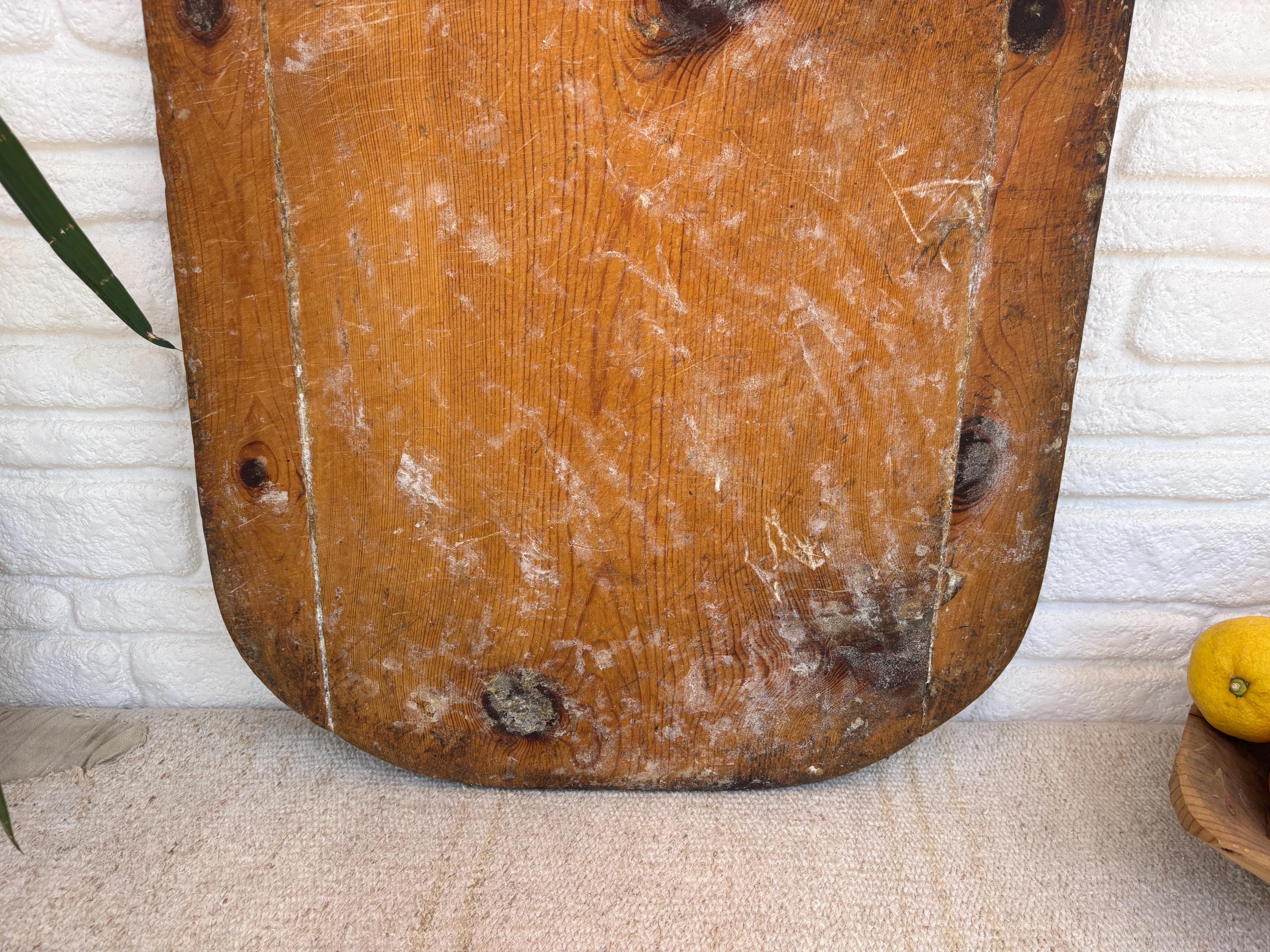 This is a large Turkish Antique Cutting Board with a beautifully aged patina and natural wear that adds authentic rustic charm. Once used for making traditional bread, it now serves as a unique farmhouse kitchen decor piece or wall art.