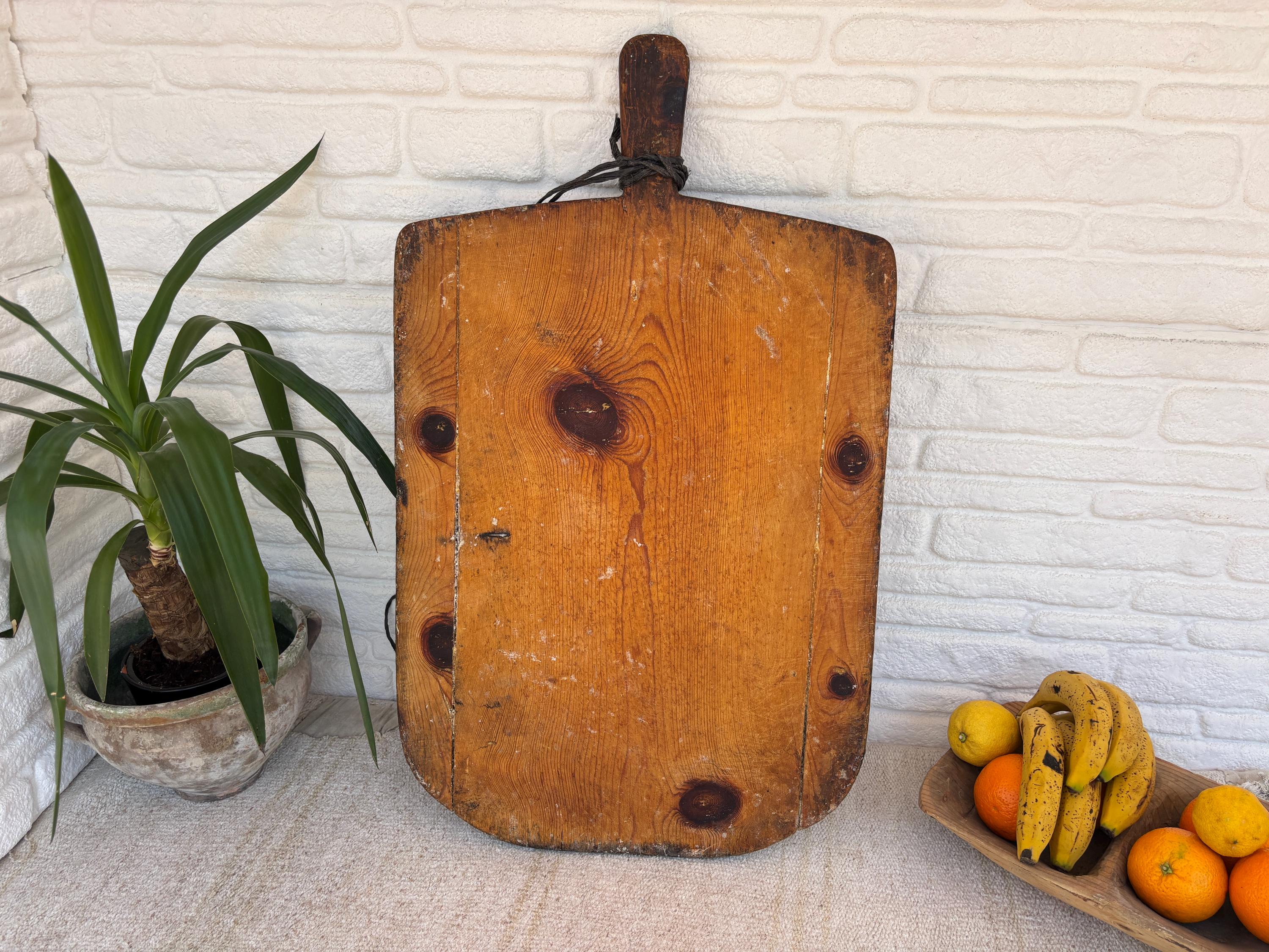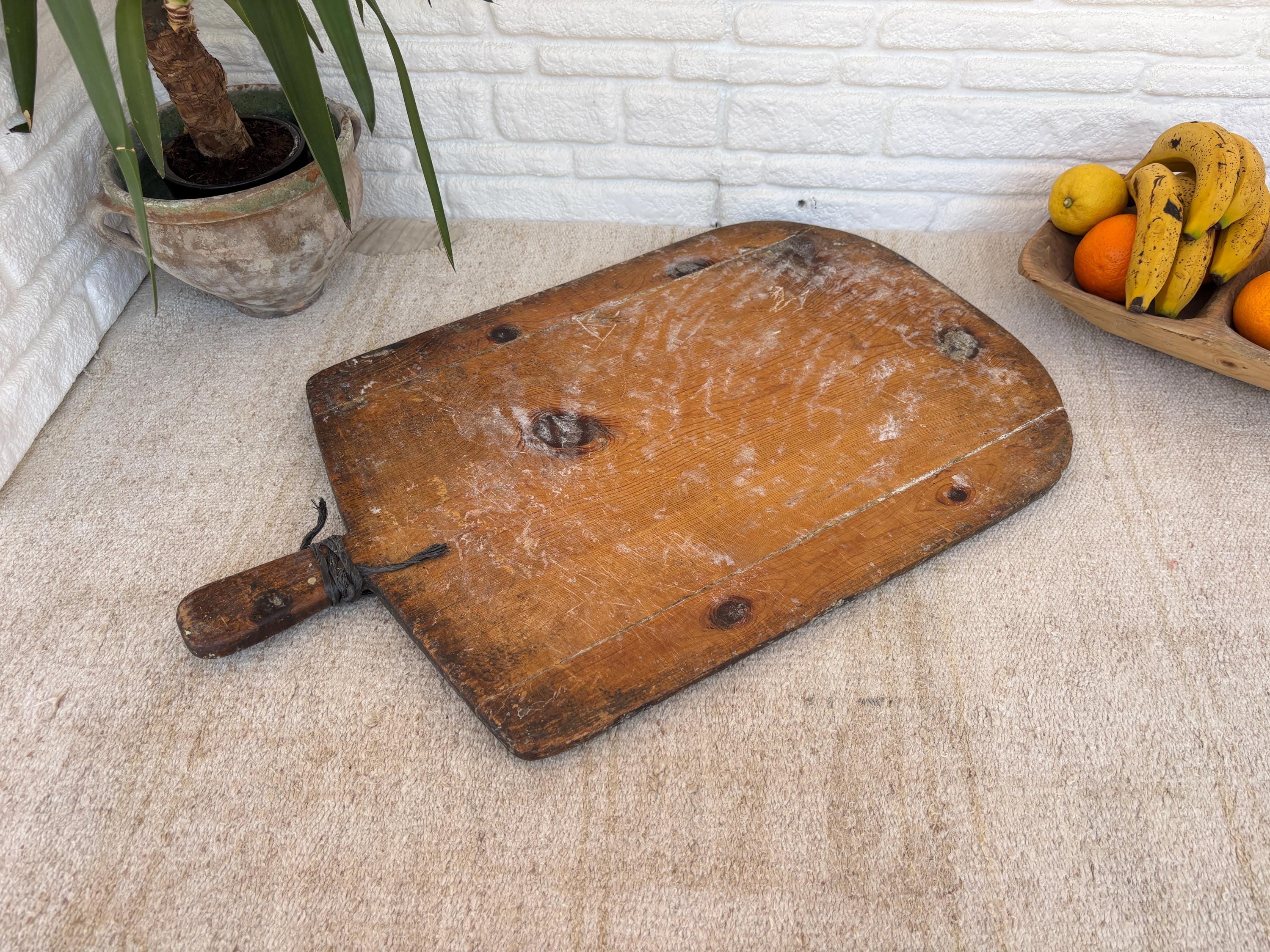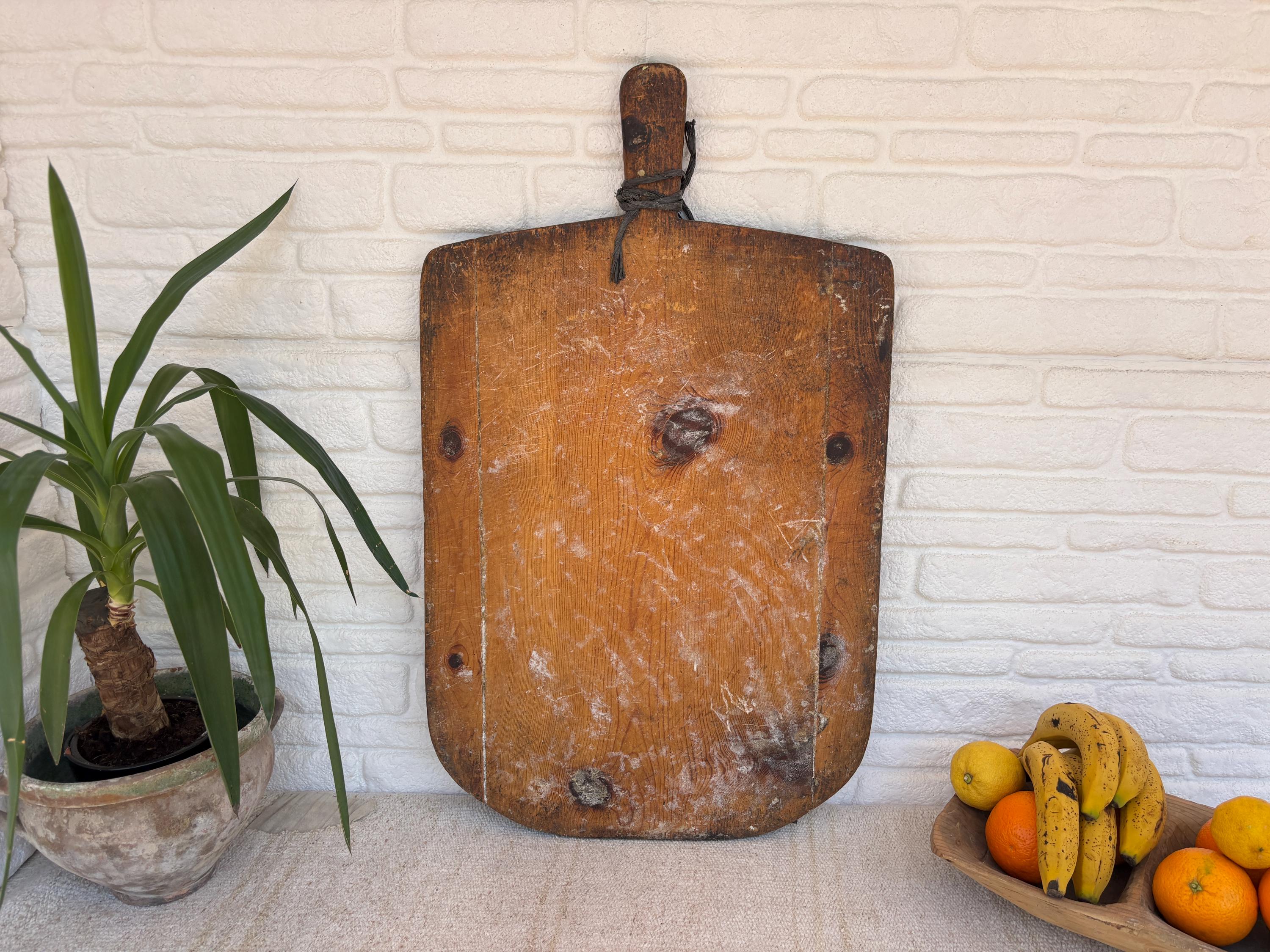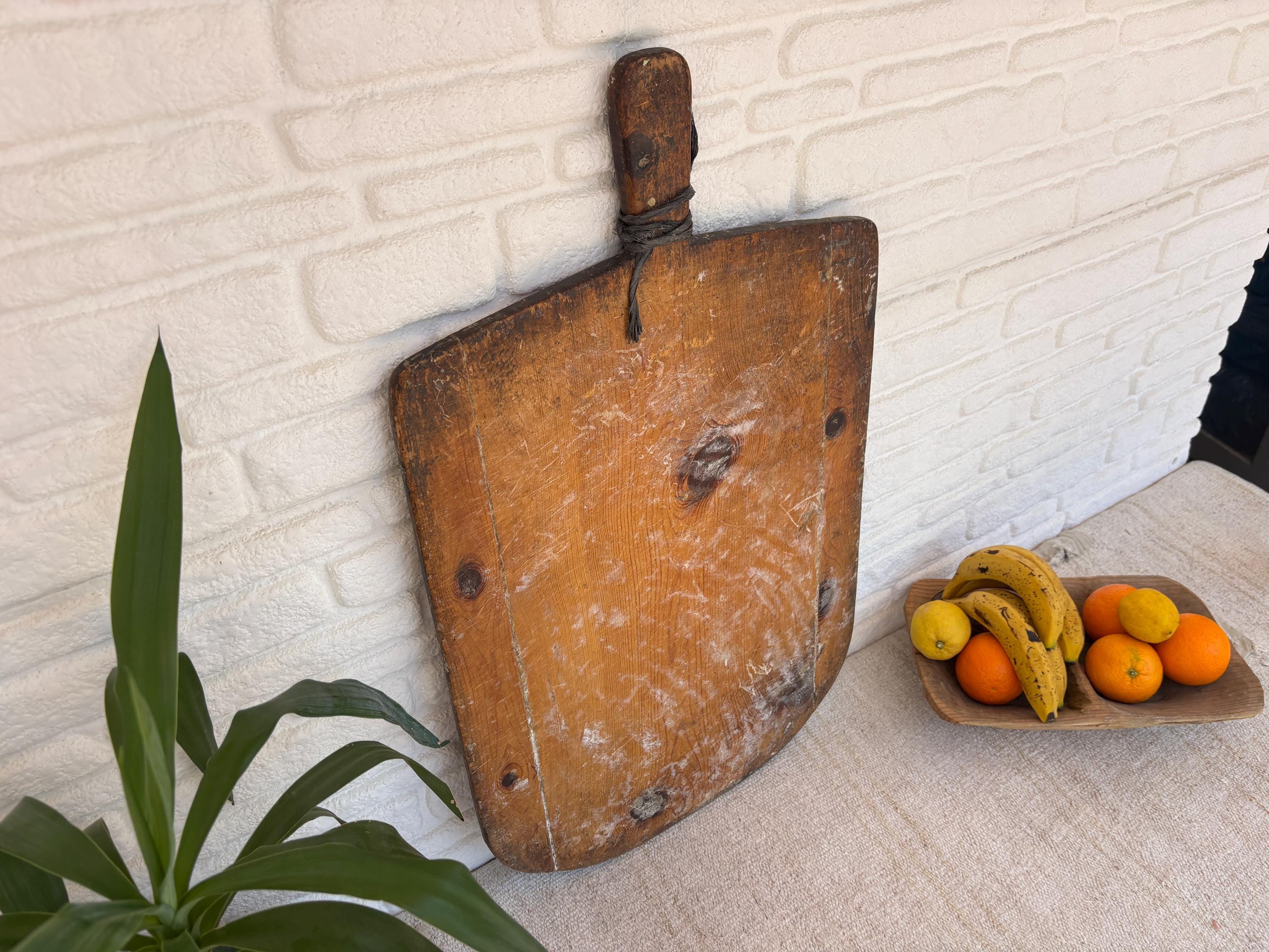 This is a large Turkish Antique Cutting Board with a beautifully aged patina and natural wear that adds authentic rustic charm. Once used for making traditional bread, it now serves as a unique farmhouse kitchen decor piece or wall art.