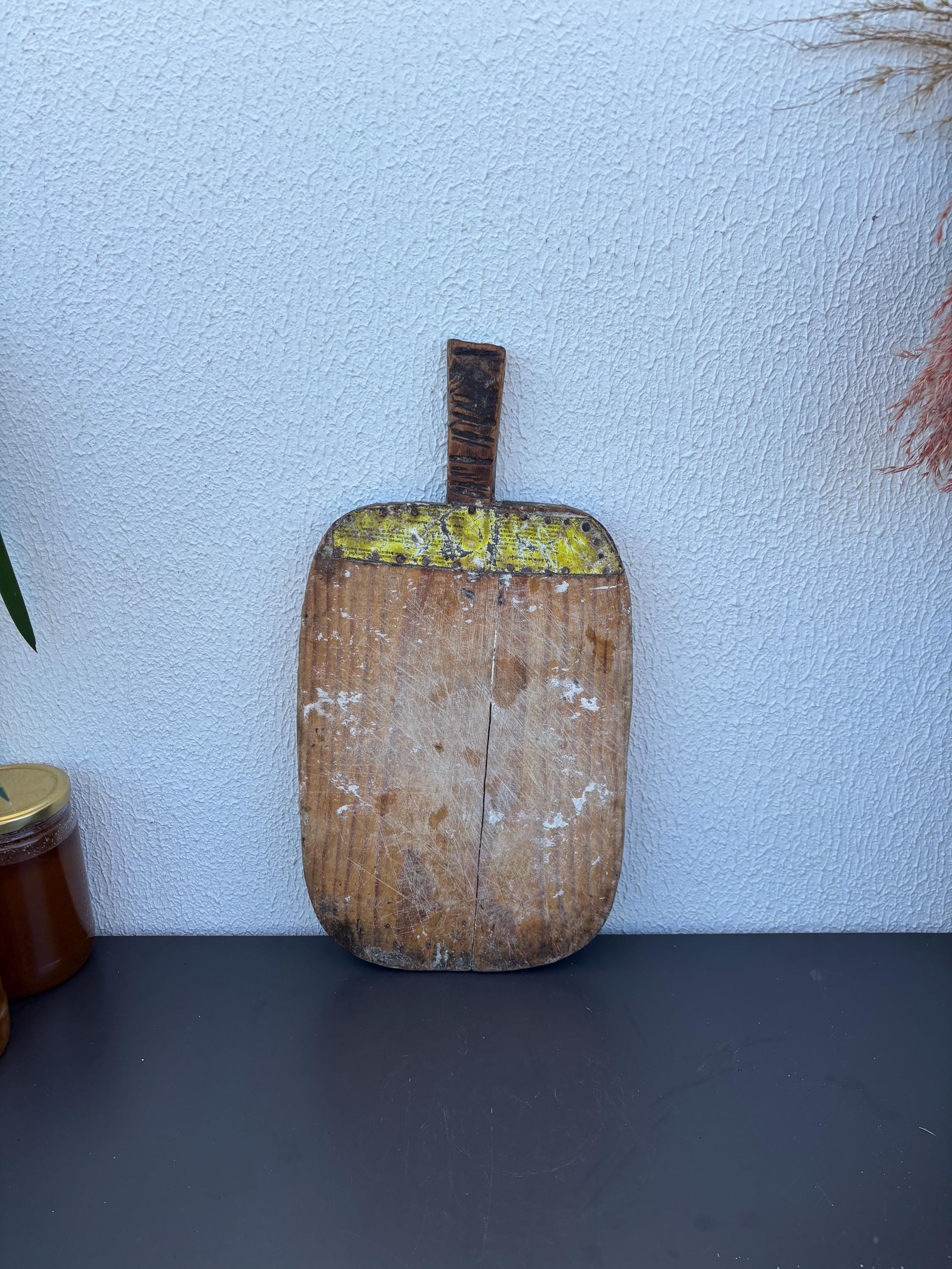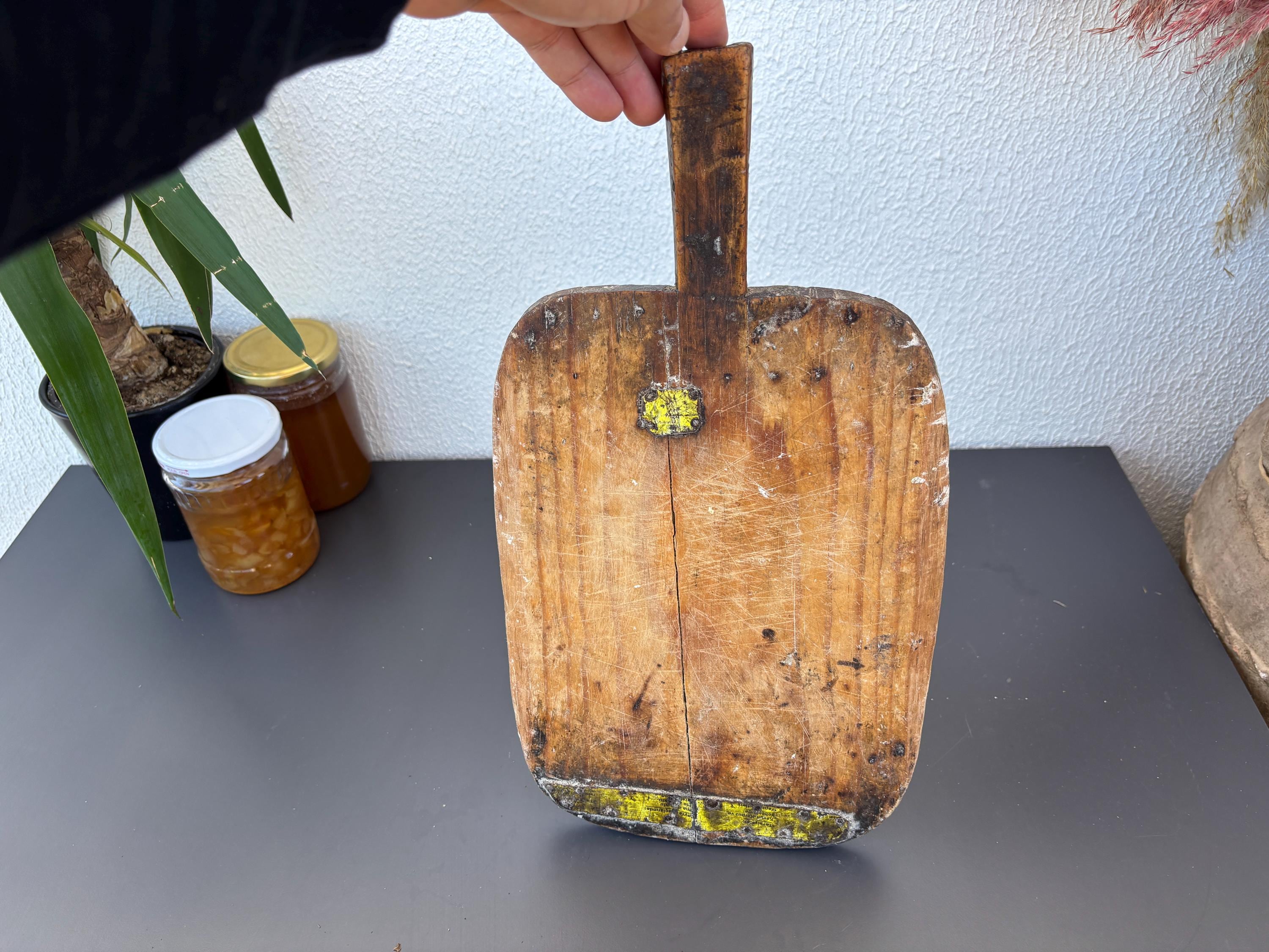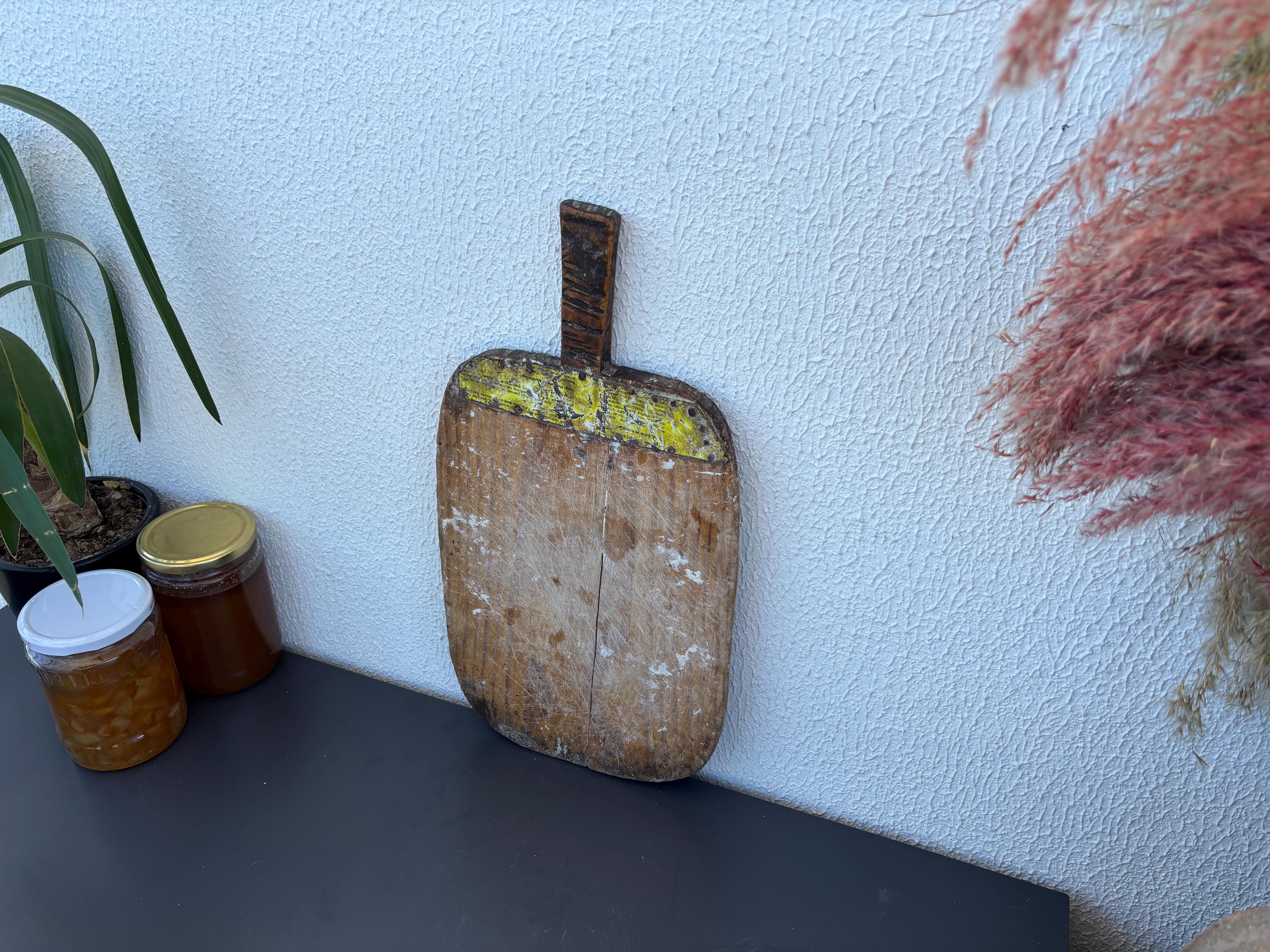 Crafted decades ago in rural Turkey, no two boards are exactly alike. Some are wide and worn smooth, others have deep patina or a hand-carved handle—each shaped by time and use. Whether hung on a kitchen wall, styled on a rustic table, or used as a serving piece, it adds soul to any space.