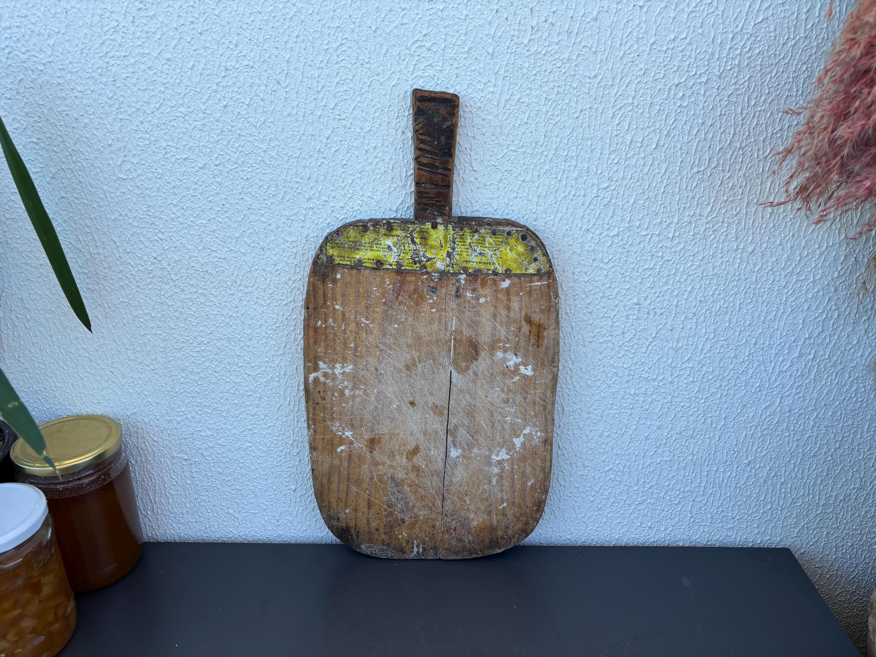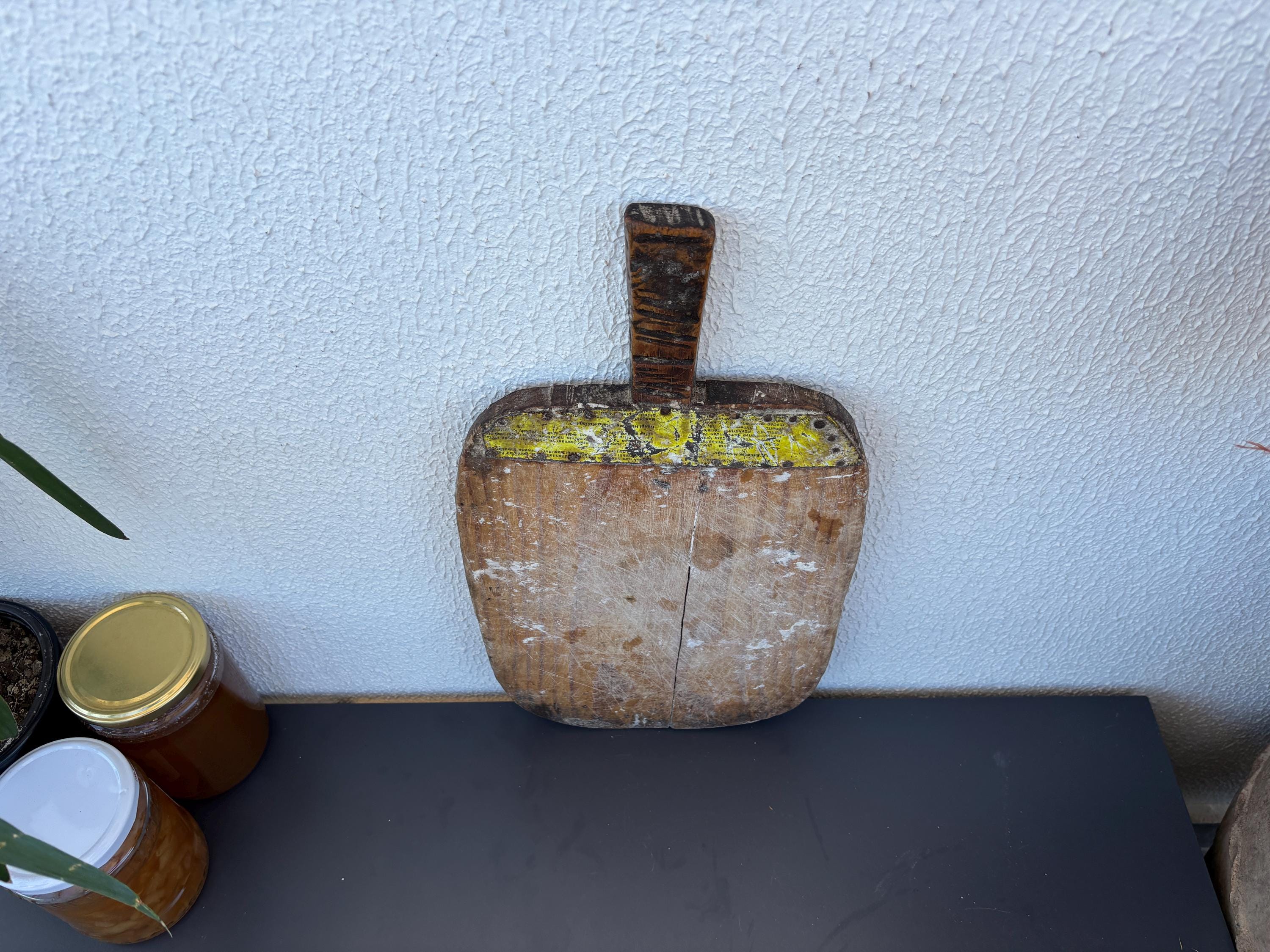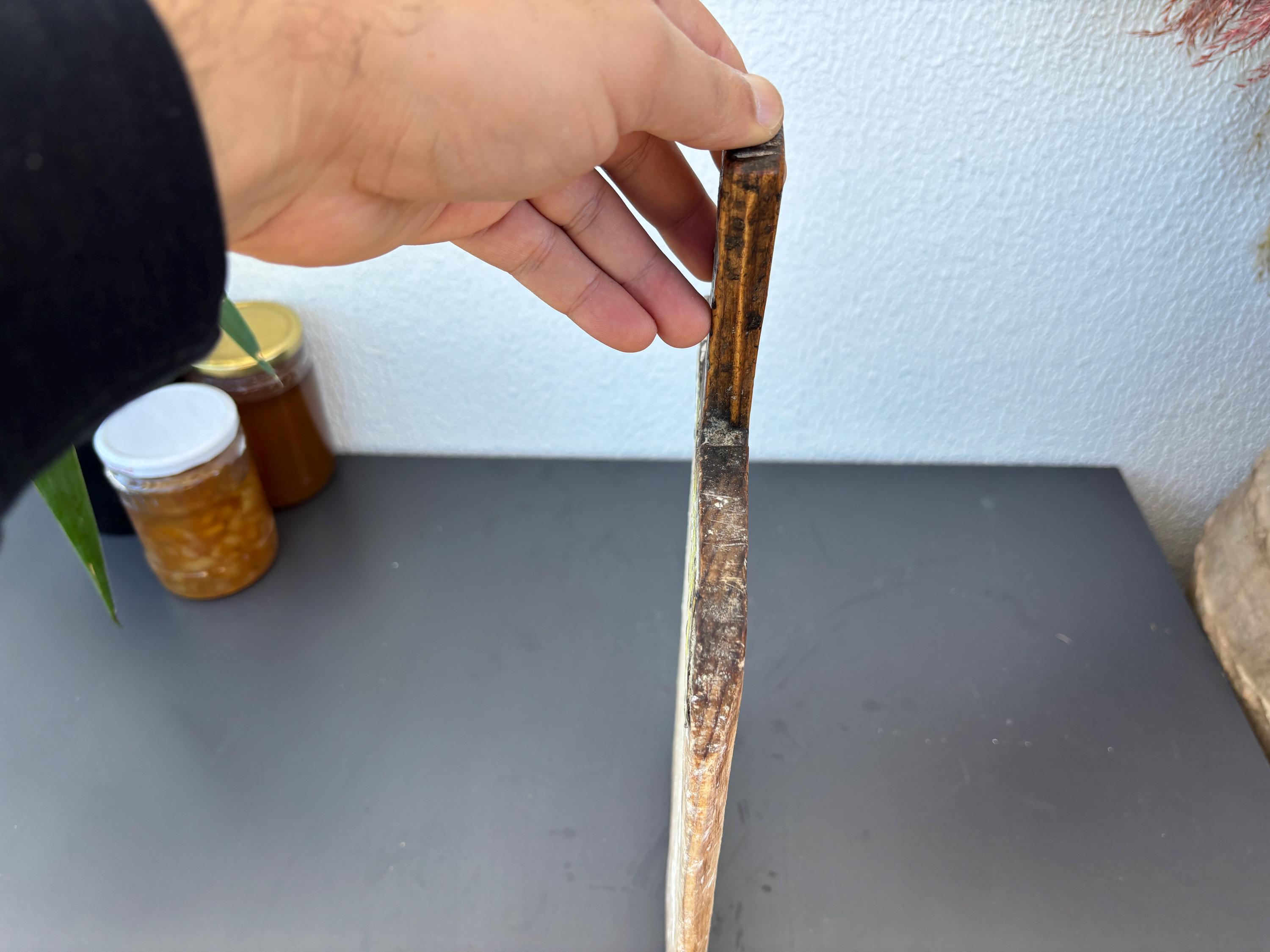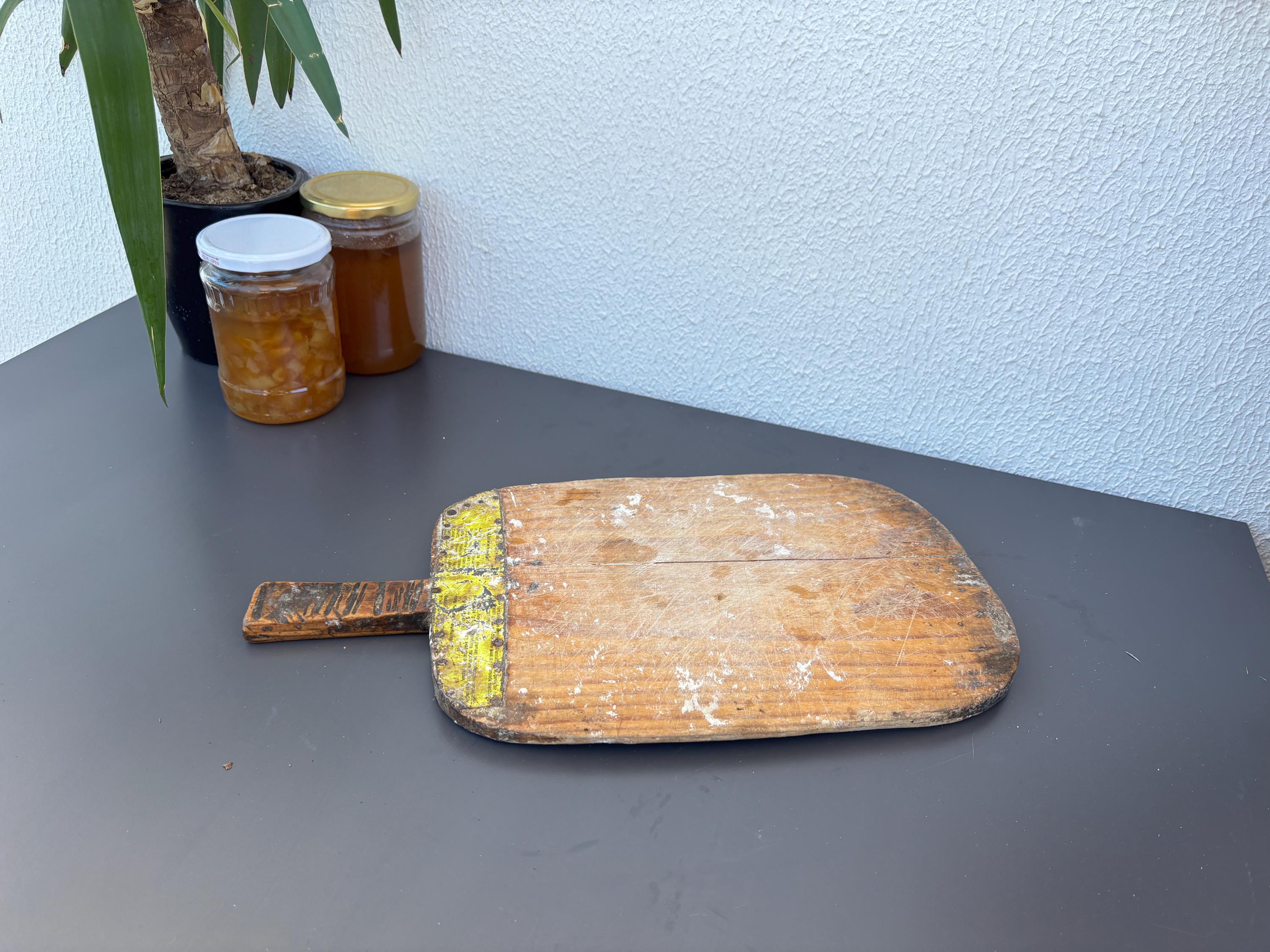 Crafted decades ago in rural Turkey, no two boards are exactly alike. Some are wide and worn smooth, others have deep patina or a hand-carved handle—each shaped by time and use. Whether hung on a kitchen wall, styled on a rustic table, or used as a serving piece, it adds soul to any space.