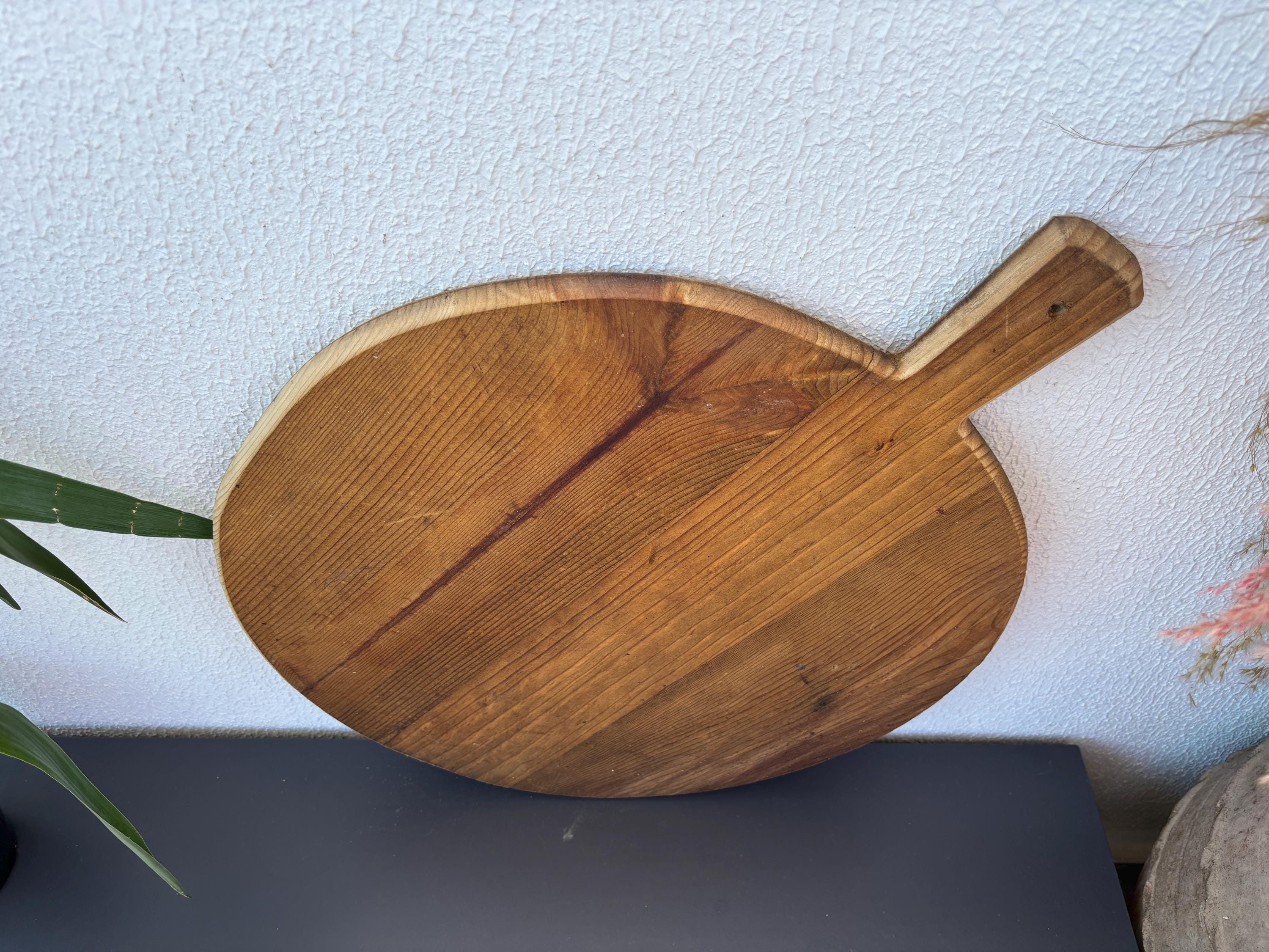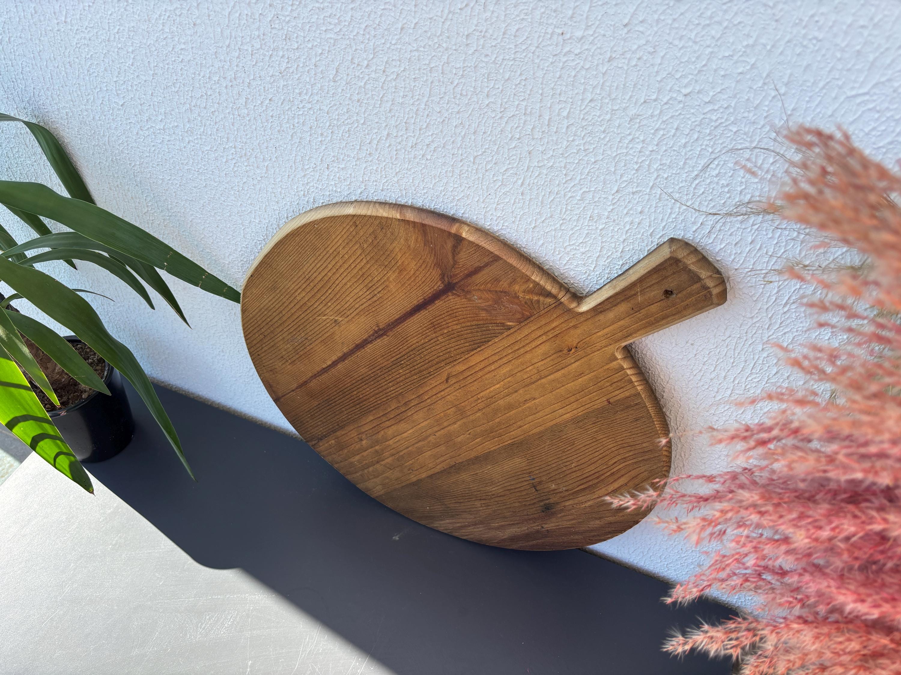 Crafted decades ago in rural Turkey, no two boards are exactly alike. Some are wide and worn smooth, others have deep patina or a hand-carved handle—each shaped by time and use. Whether hung on a kitchen wall, styled on a rustic table, or used as a serving piece, it adds soul to any space.