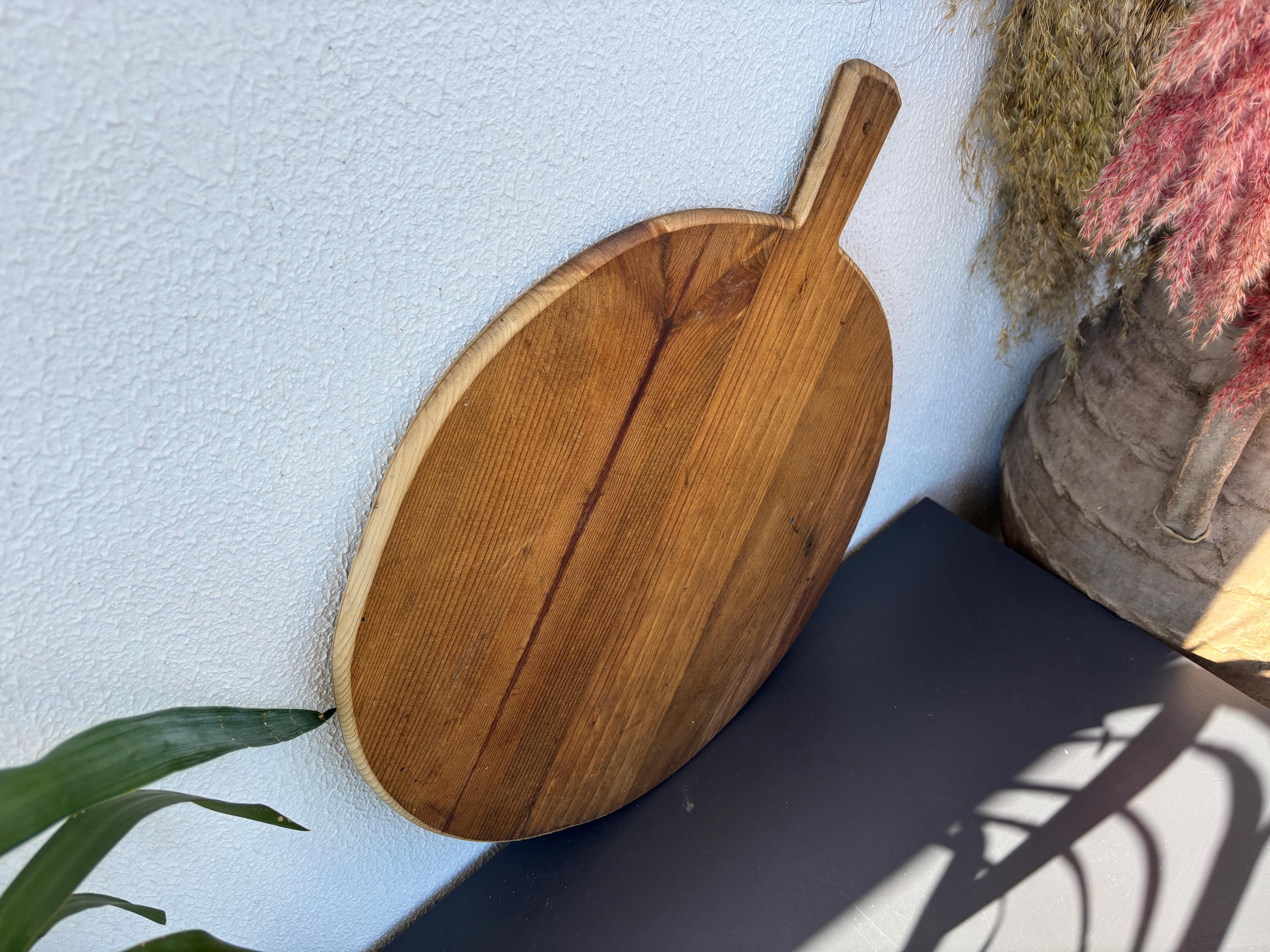 This vintage wooden board once belonged to a humble Anatolian kitchen, where it served not just as a tool, but as part of daily life. Used for kneading dough, slicing bread, and serving homemade meals, it carries the quiet charm of generations past. Hand-carved from solid wood, each piece has its own unique wear—marks that whisper stories of tradition, warmth, and gathering.