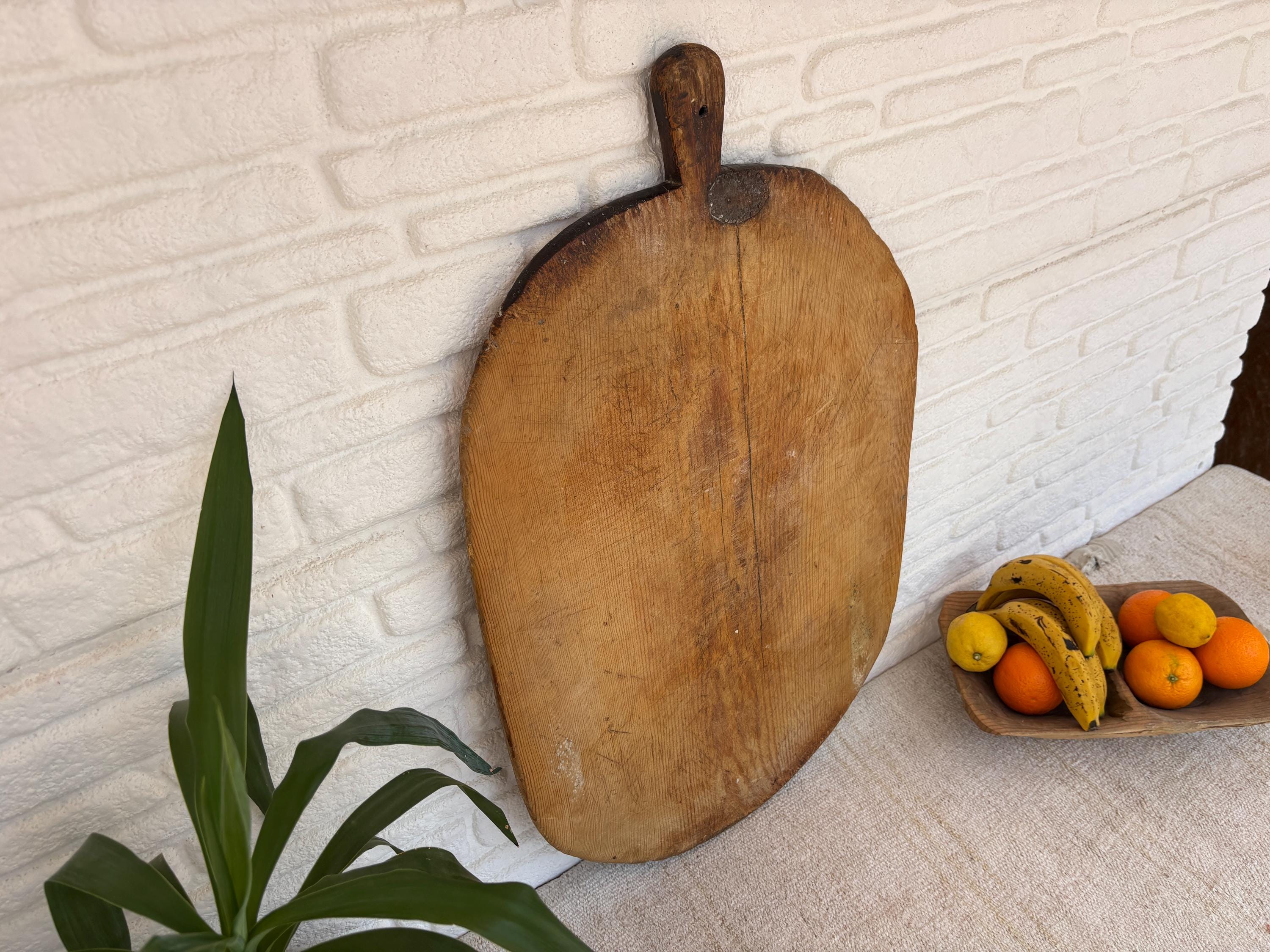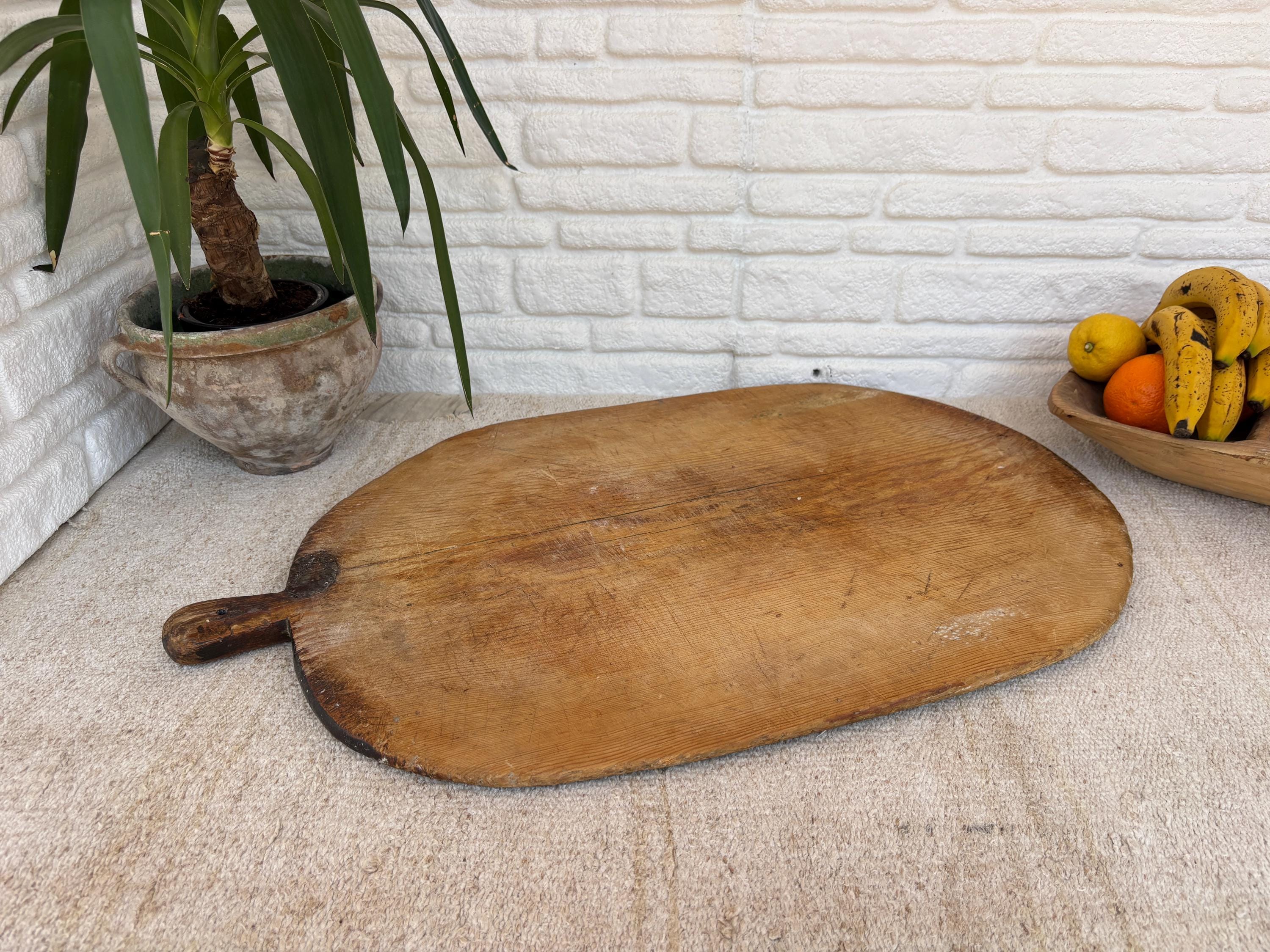 Step into the charm of an old Anatolian kitchen with this antique Handmade Turkish Wooden Cutting Board. Bring timeless charm to your kitchen with this handmade rustic wooden cutting board. Carefully crafted in Turkey from natural solid wood, each board has its own unique grain, knots, and character — no two are ever the same.