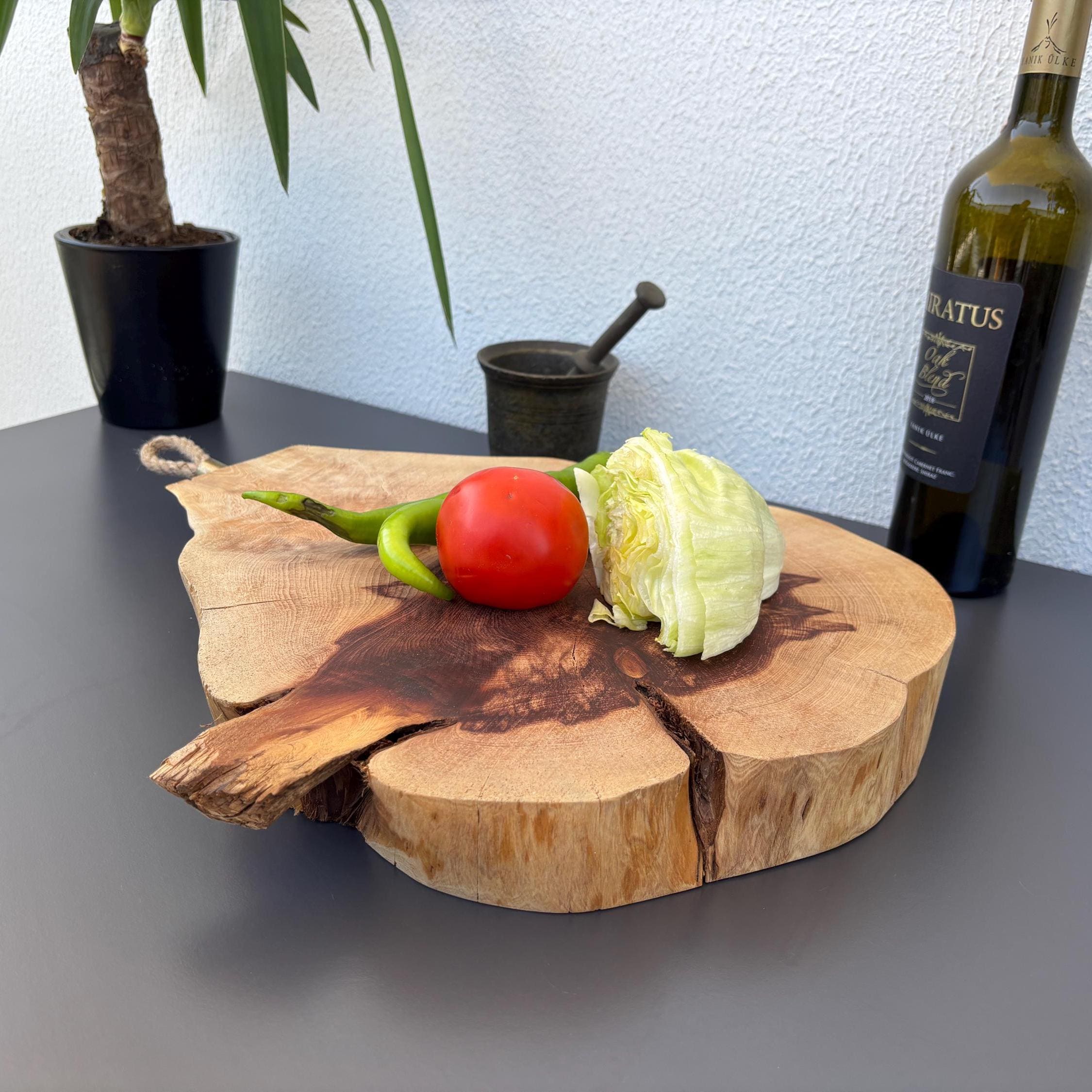 Crafted decades ago in rural Turkey, no two boards are exactly alike. Some are wide and worn smooth, others have deep patina or a hand-carved handle—each shaped by time and use. Whether hung on a kitchen wall, styled on a rustic table, or used as a serving piece, it adds soul to any space.