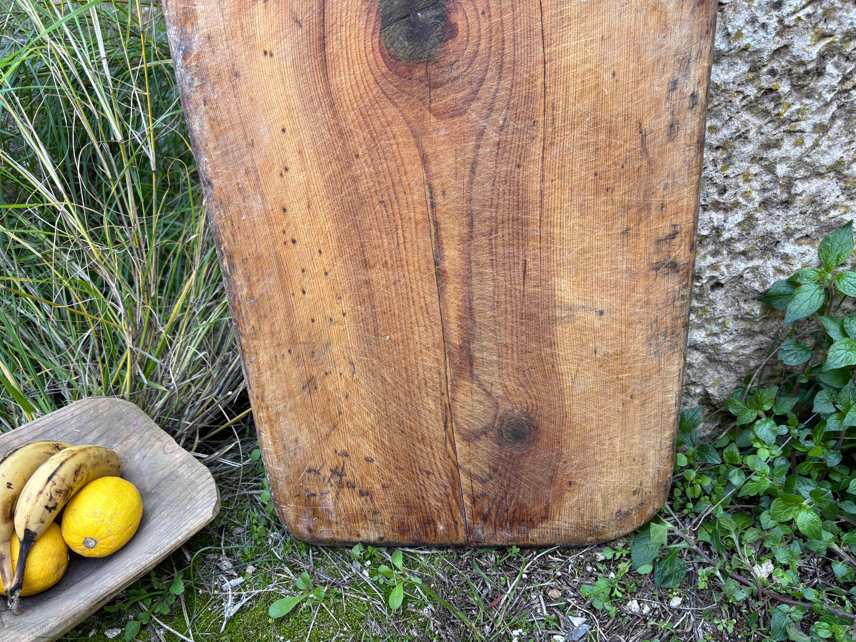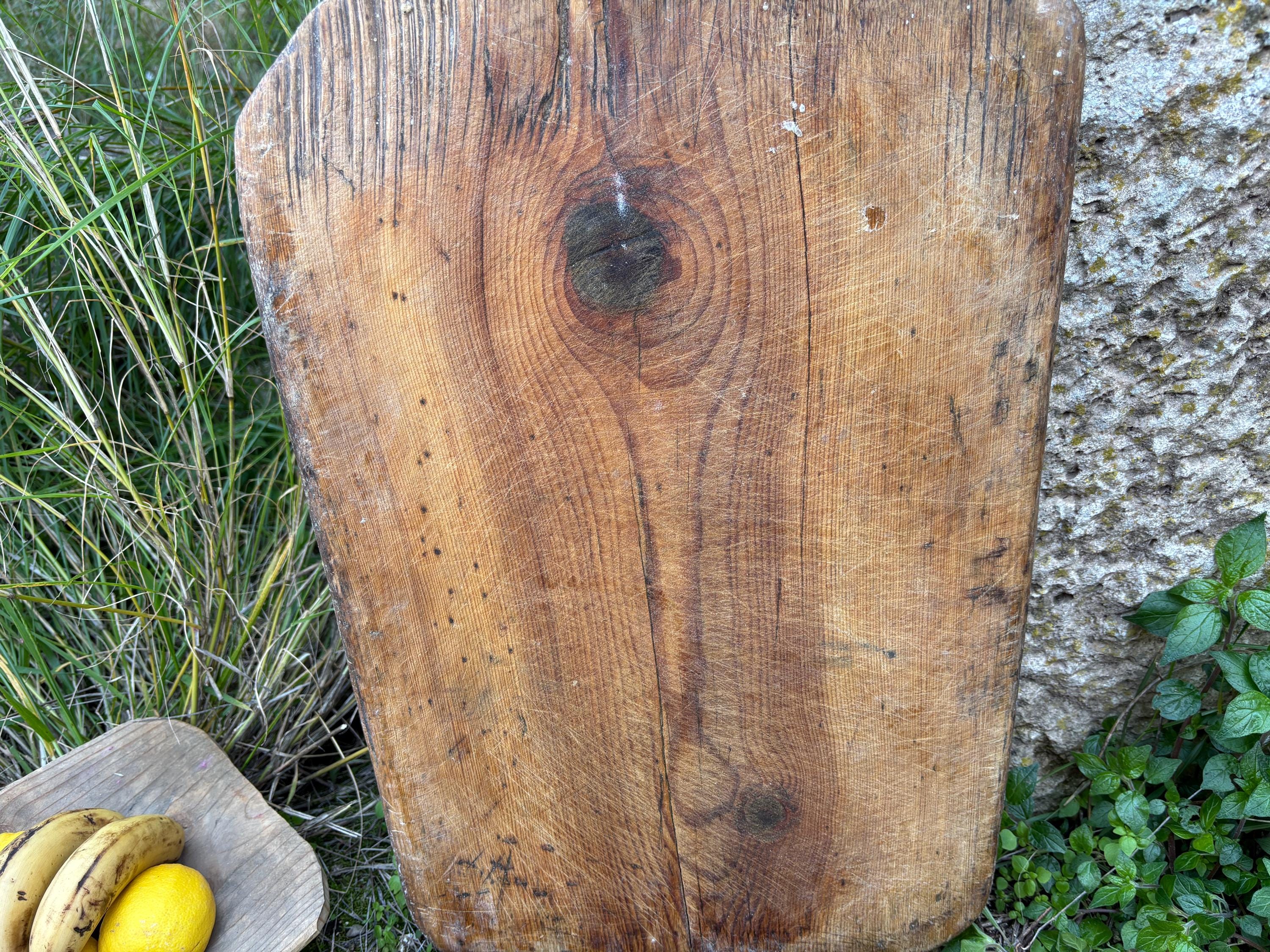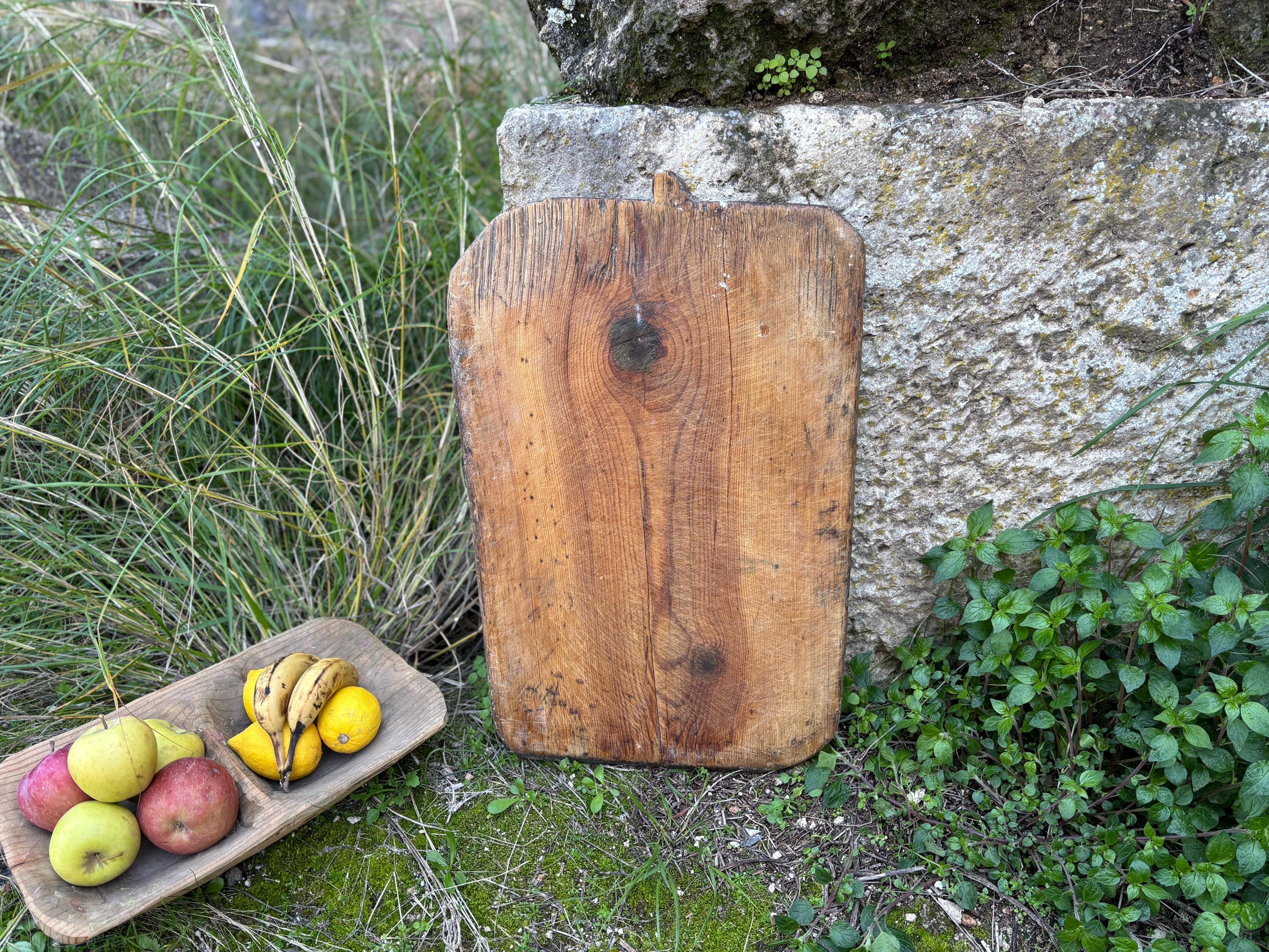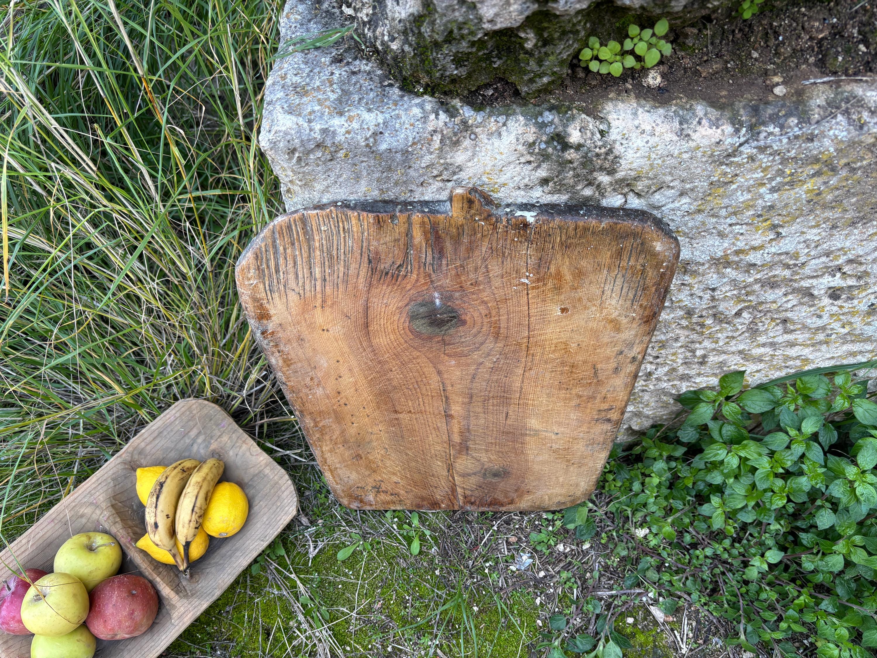 Crafted decades ago in rural Turkey, no two boards are exactly alike. Some are wide and worn smooth, others have deep patina or a hand-carved handle—each shaped by time and use. Whether hung on a kitchen wall, styled on a rustic table, or used as a serving piece, it adds soul to any space.