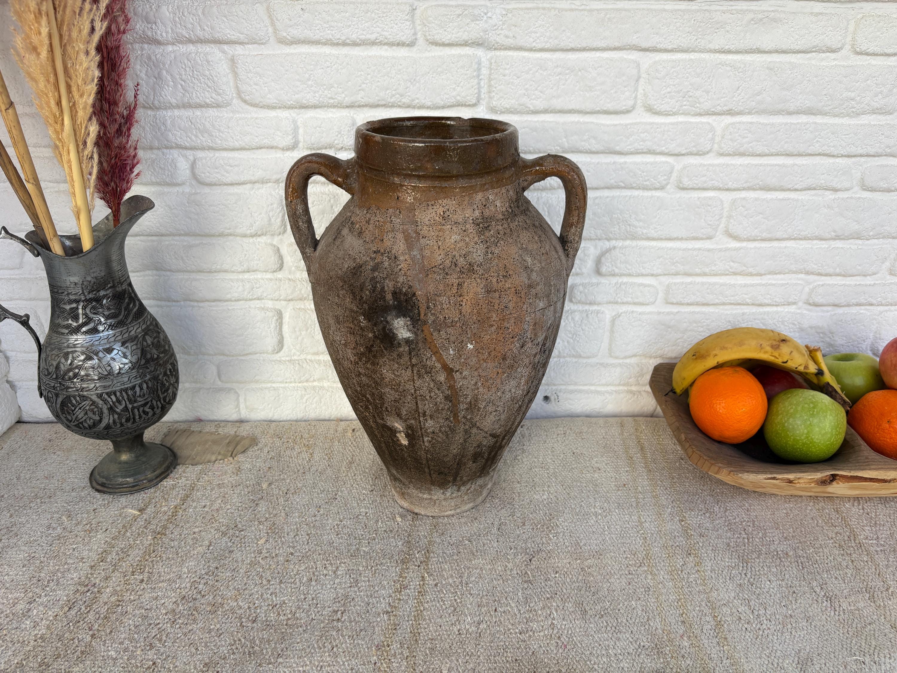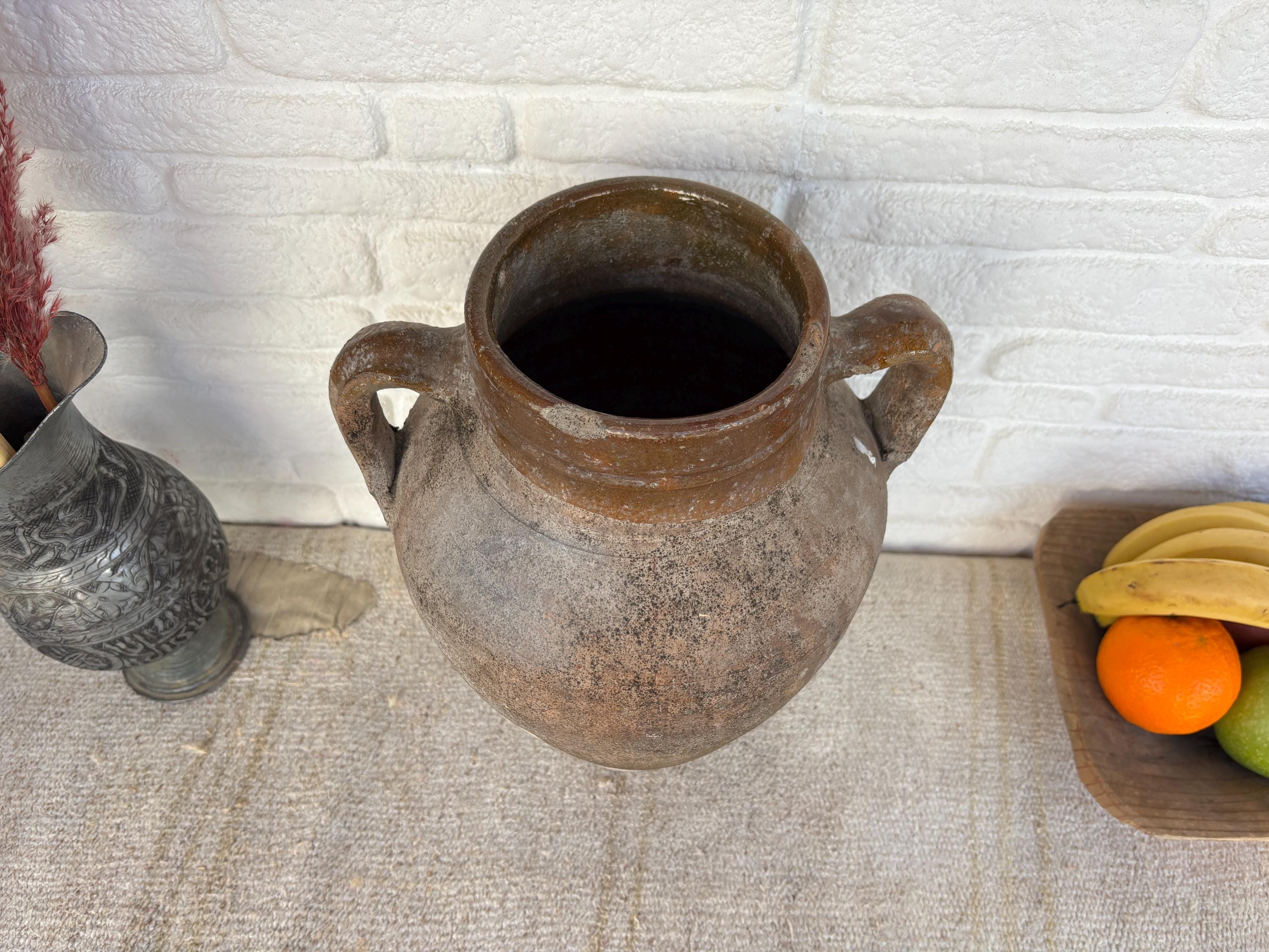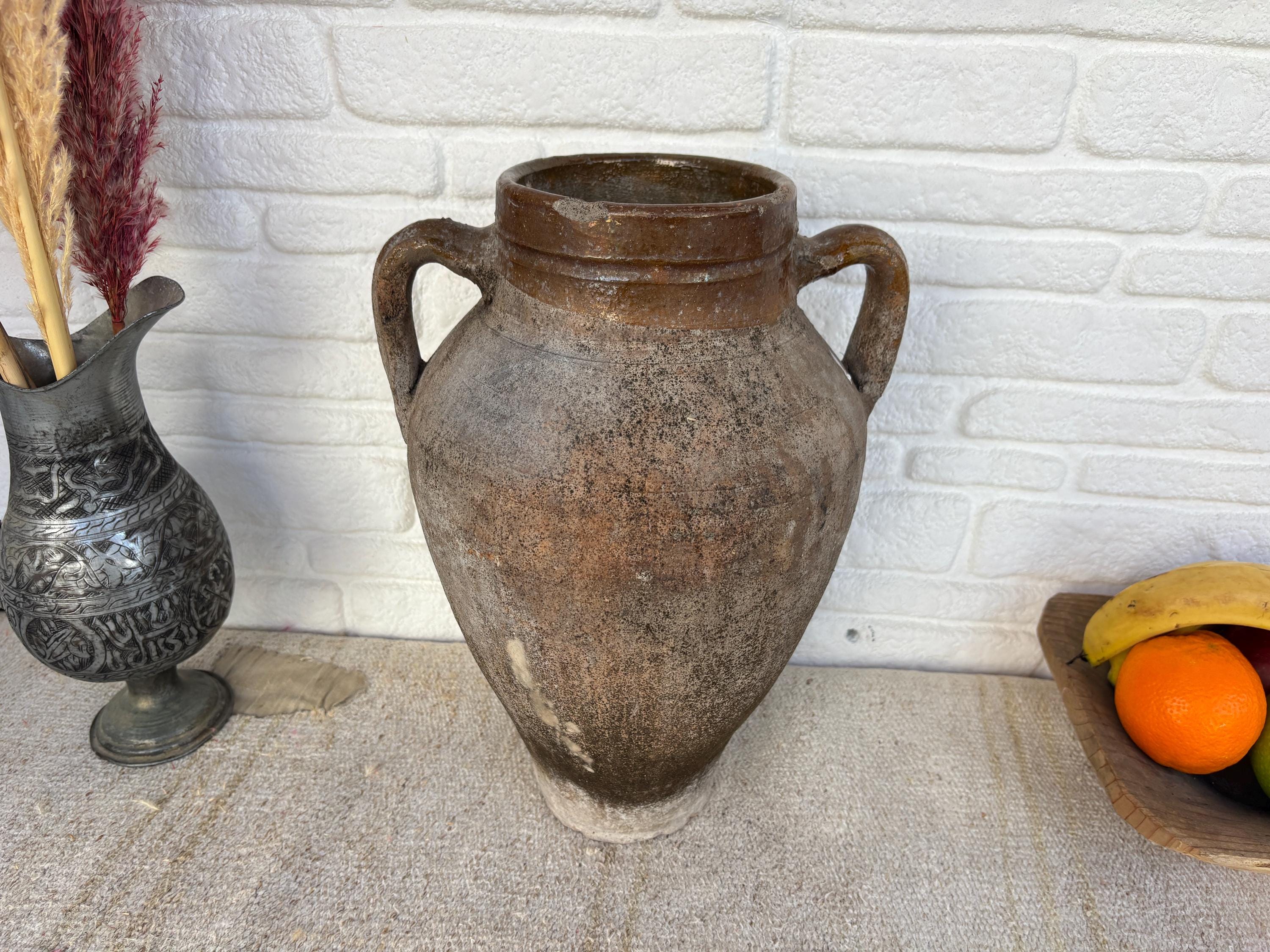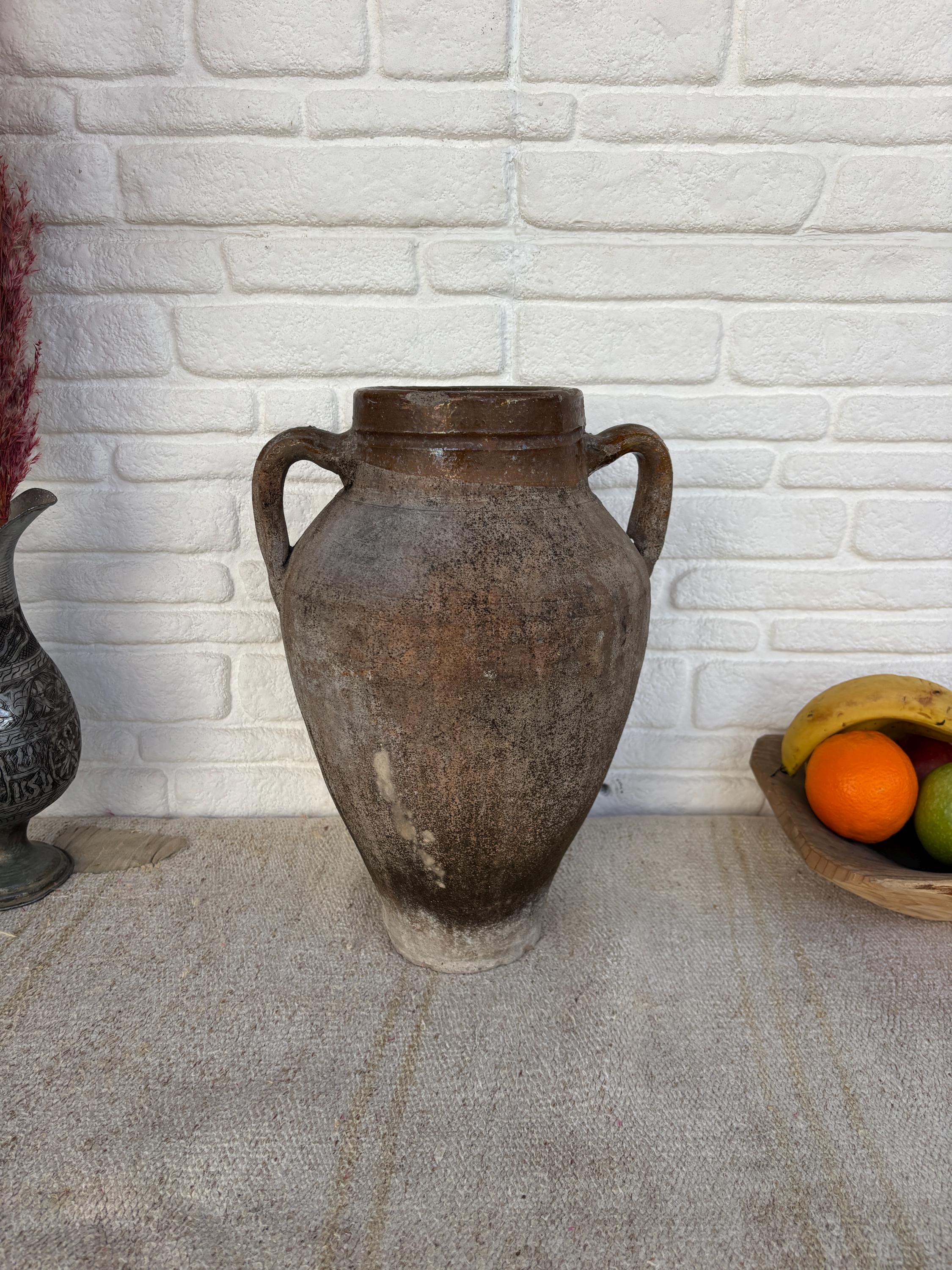 This authentic vintage Turkish clay pot is a unique piece of Anatolian heritage, collected directly from rural villages in Turkey.