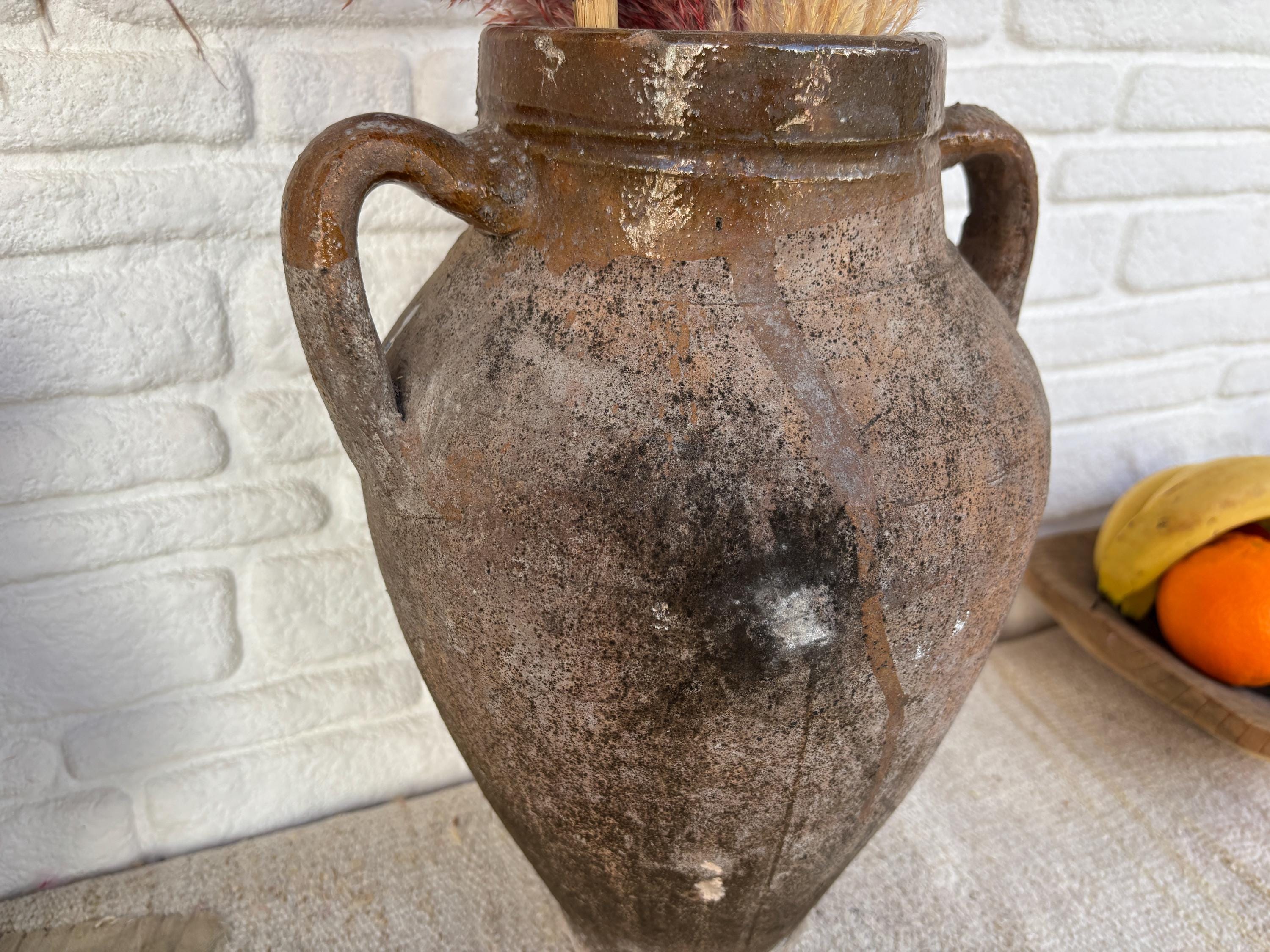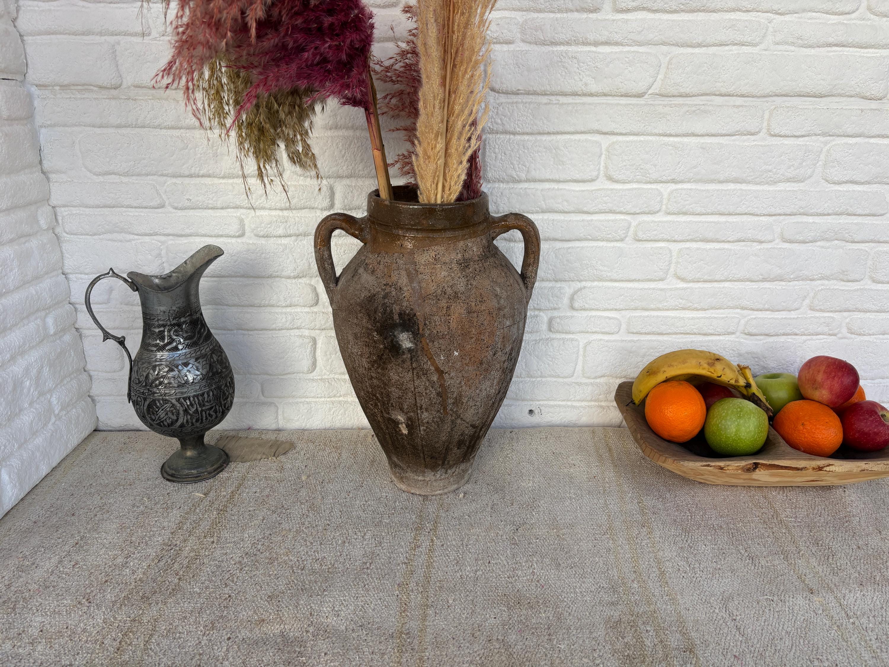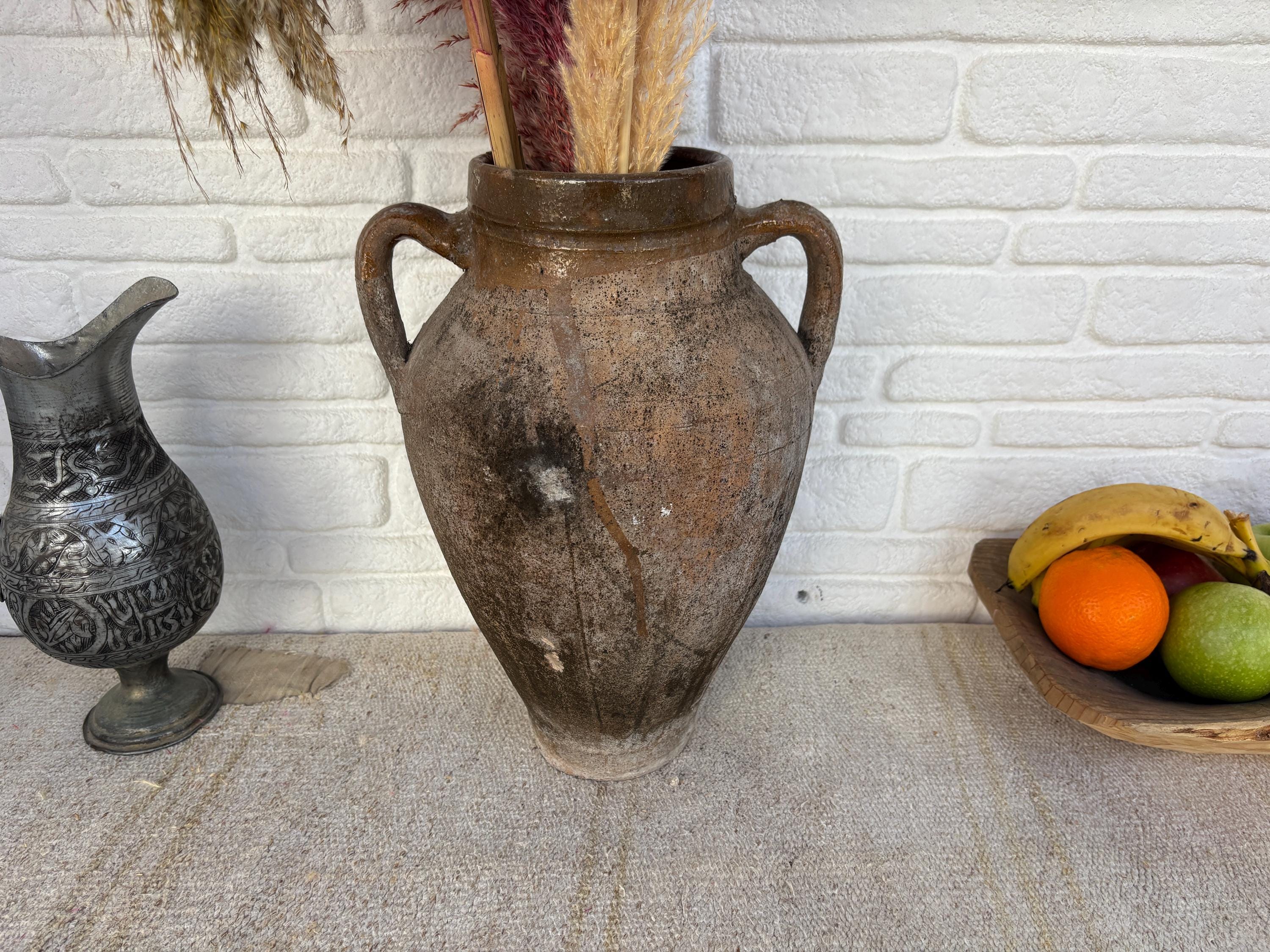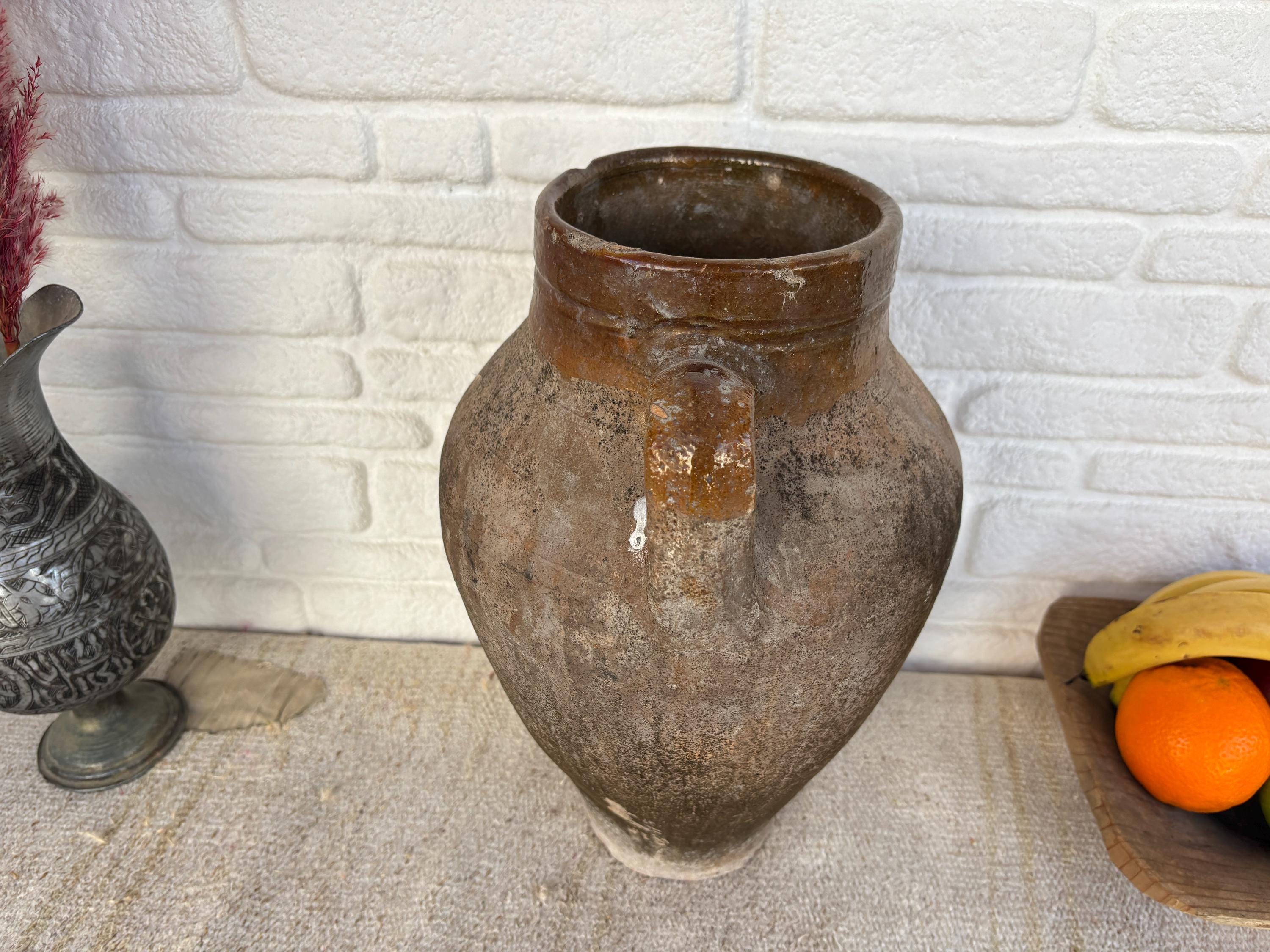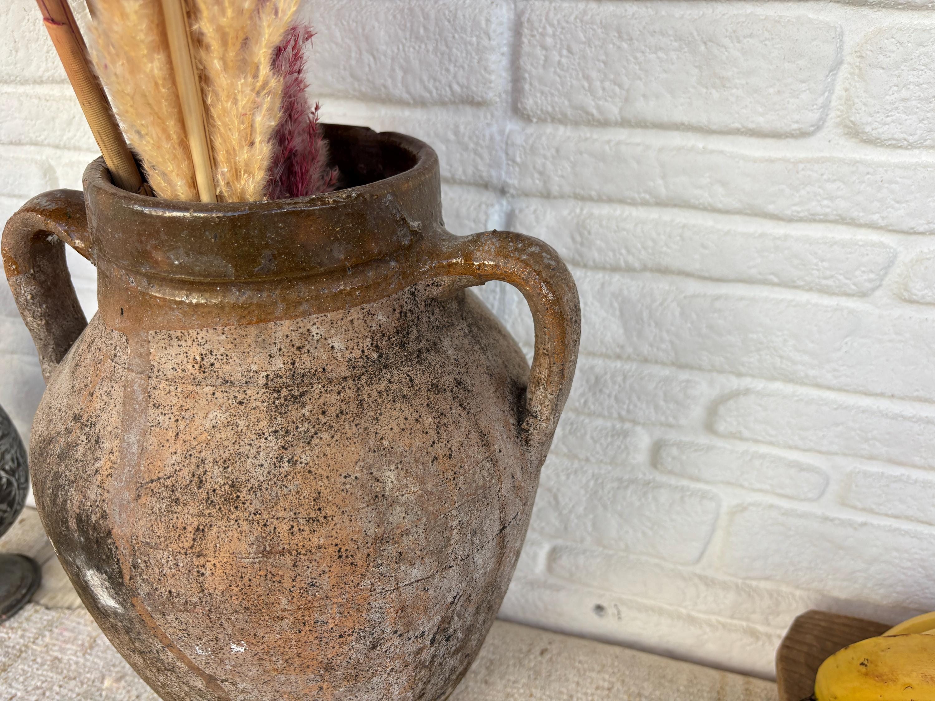 This authentic vintage Turkish clay pot is a unique piece of Anatolian heritage, collected directly from rural villages in Turkey.