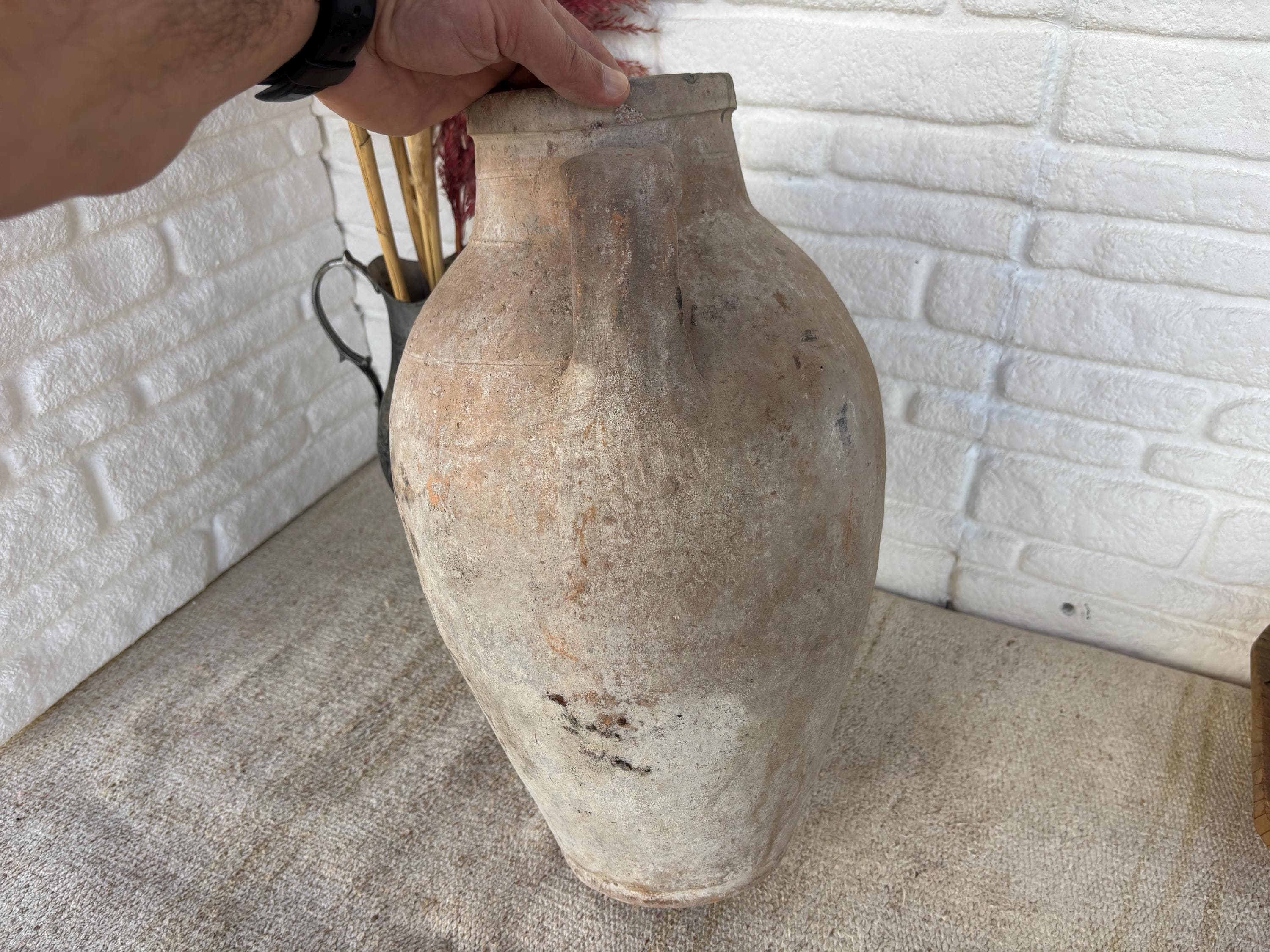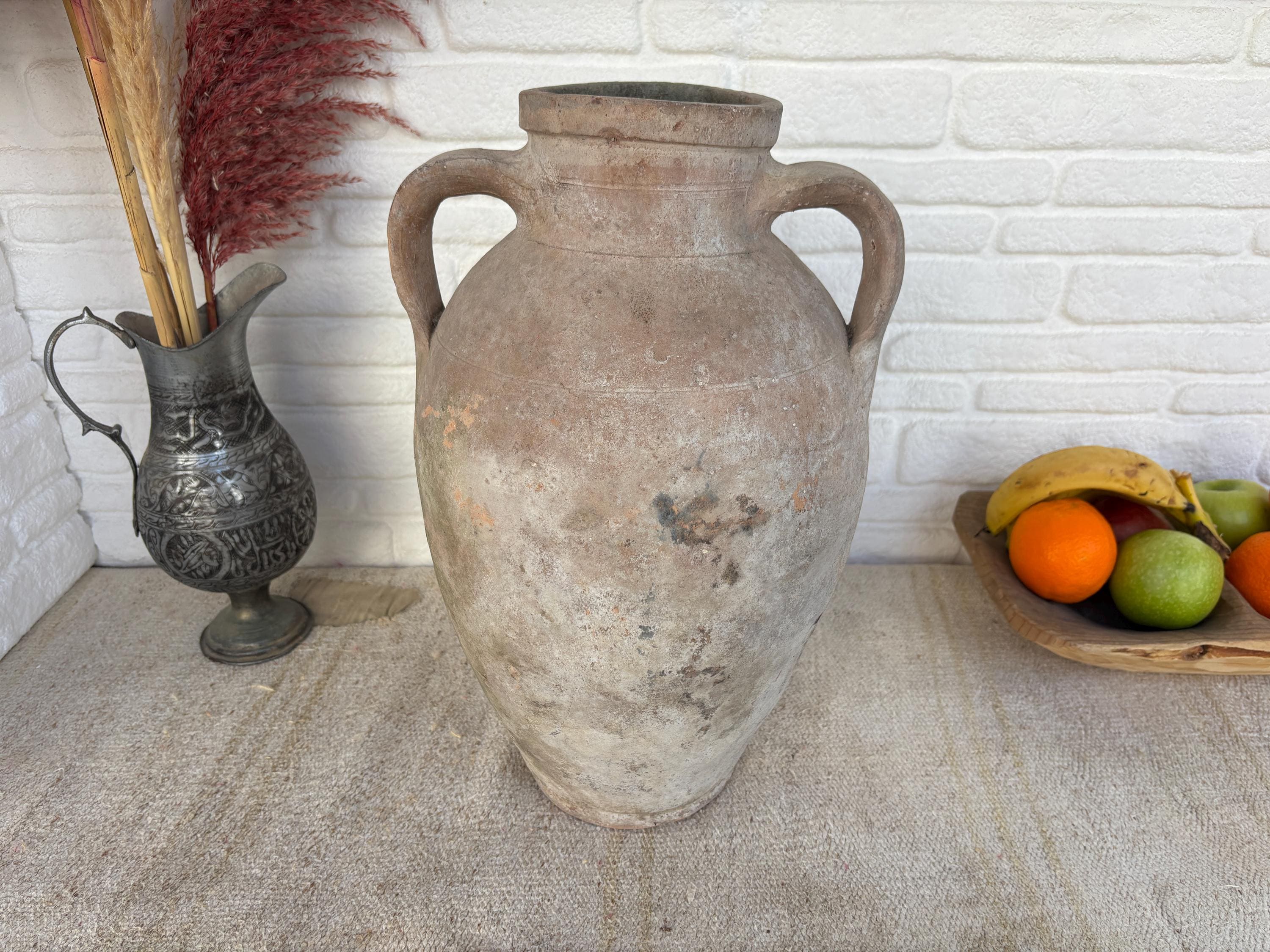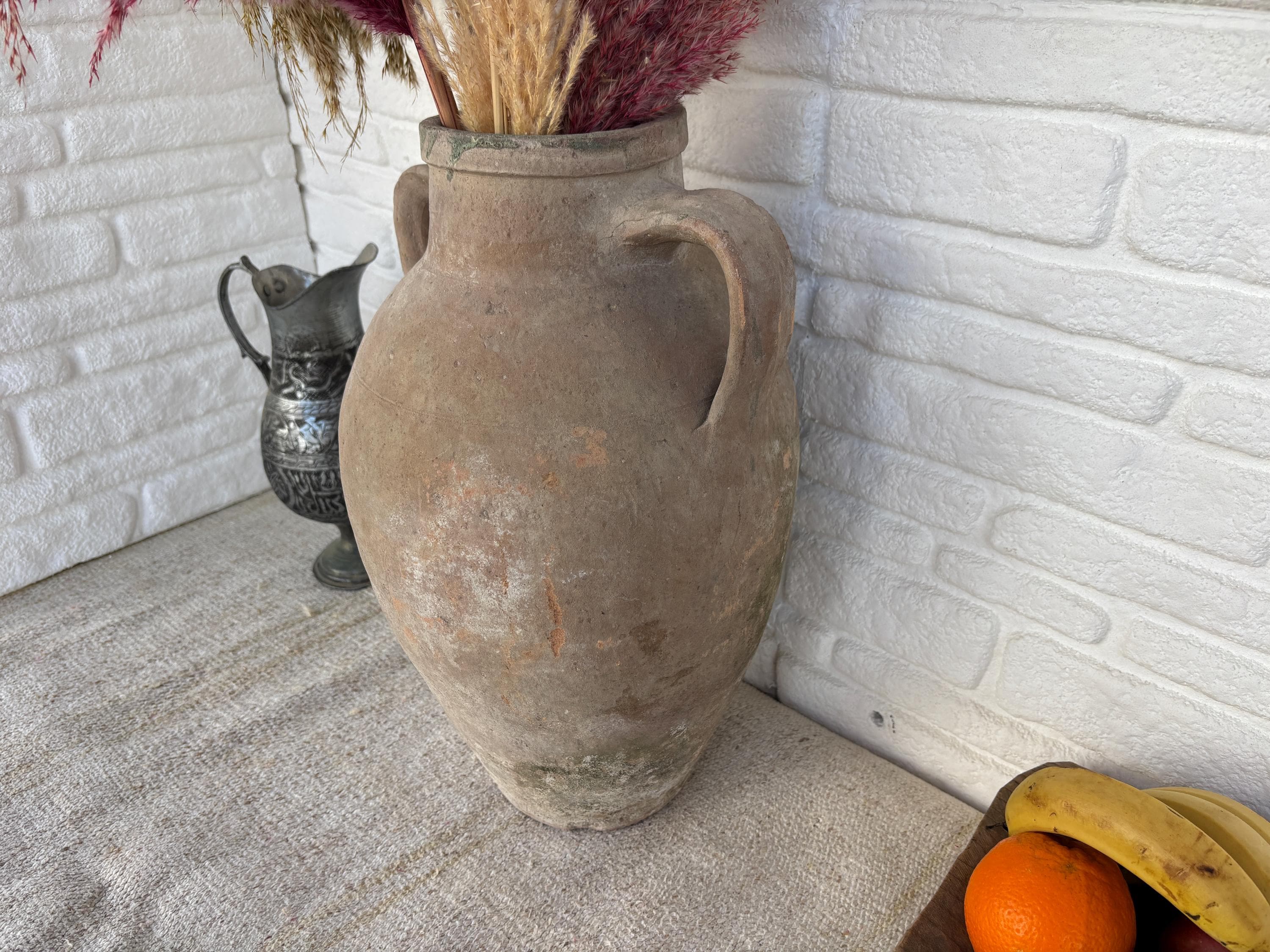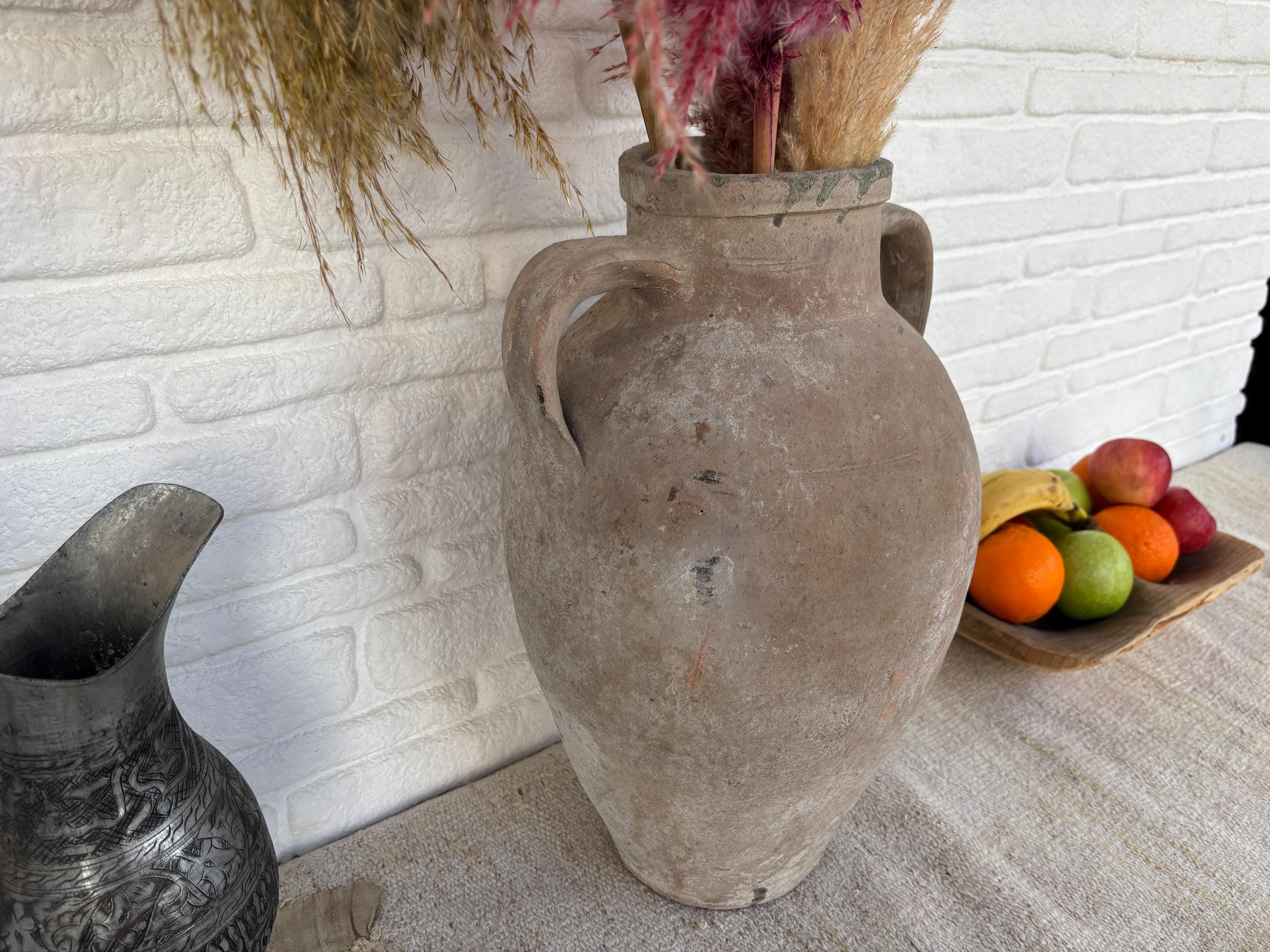 This authentic vintage Turkish clay pot is a unique piece of Anatolian heritage, collected directly from rural villages in Turkey.