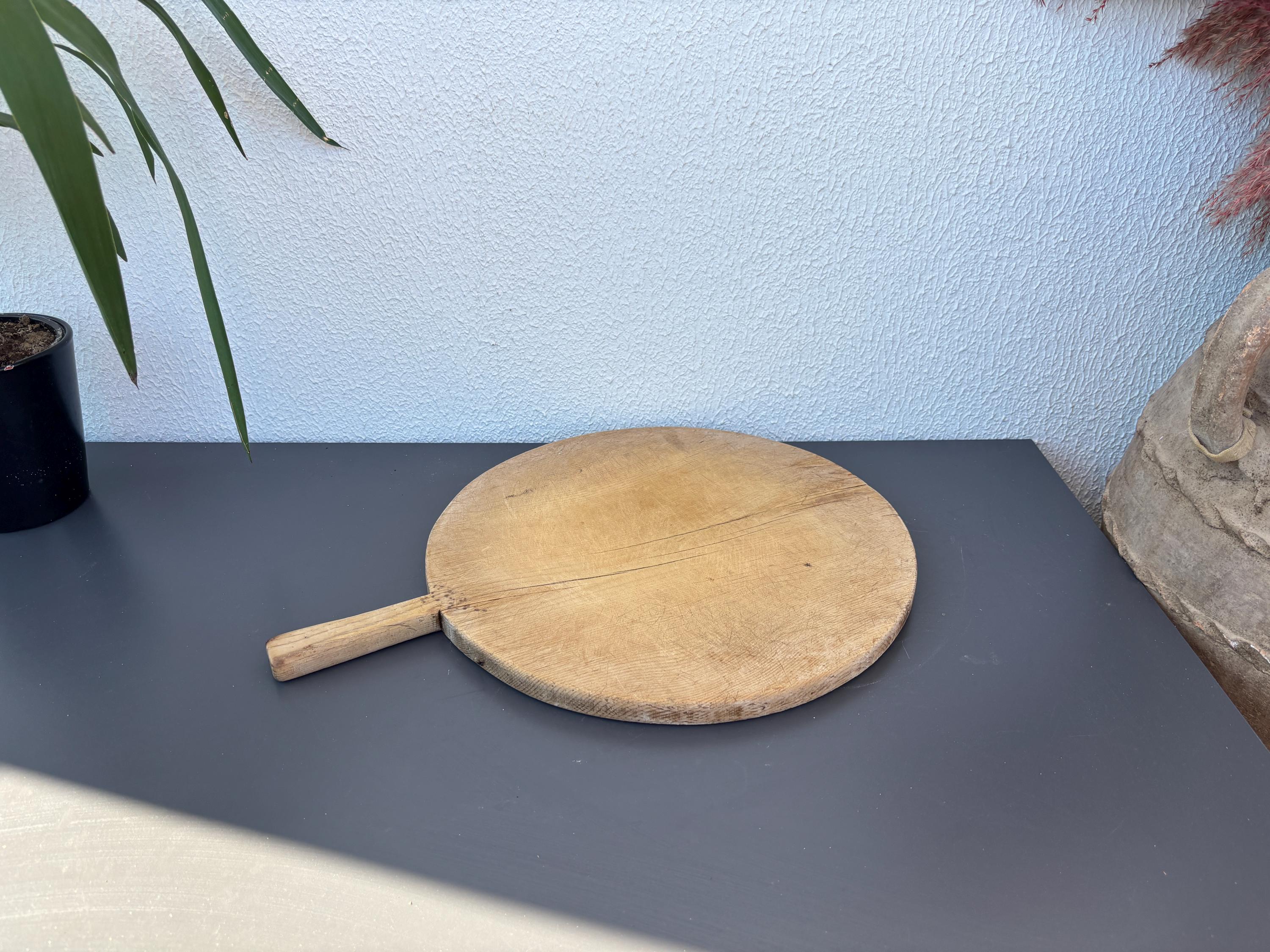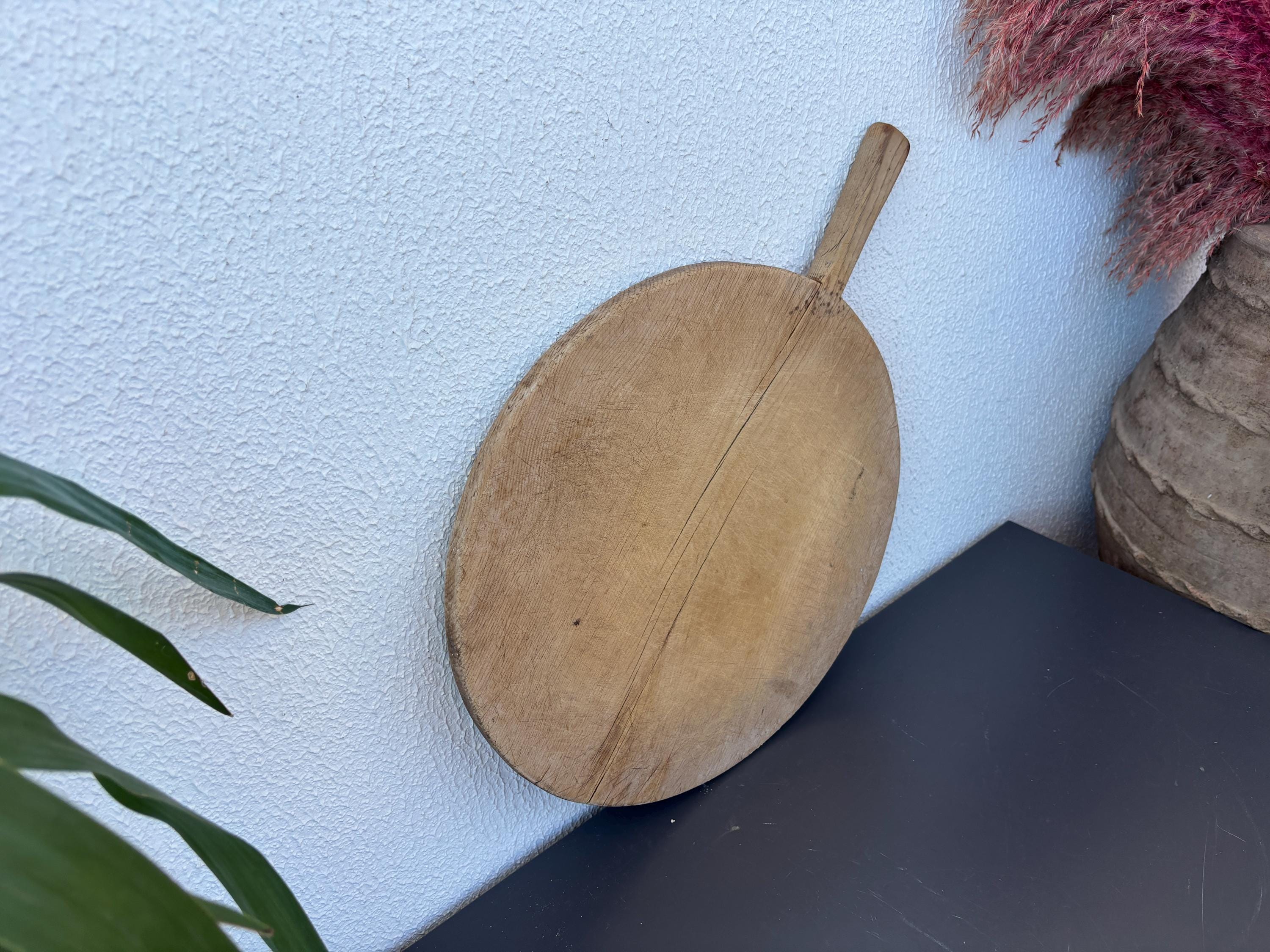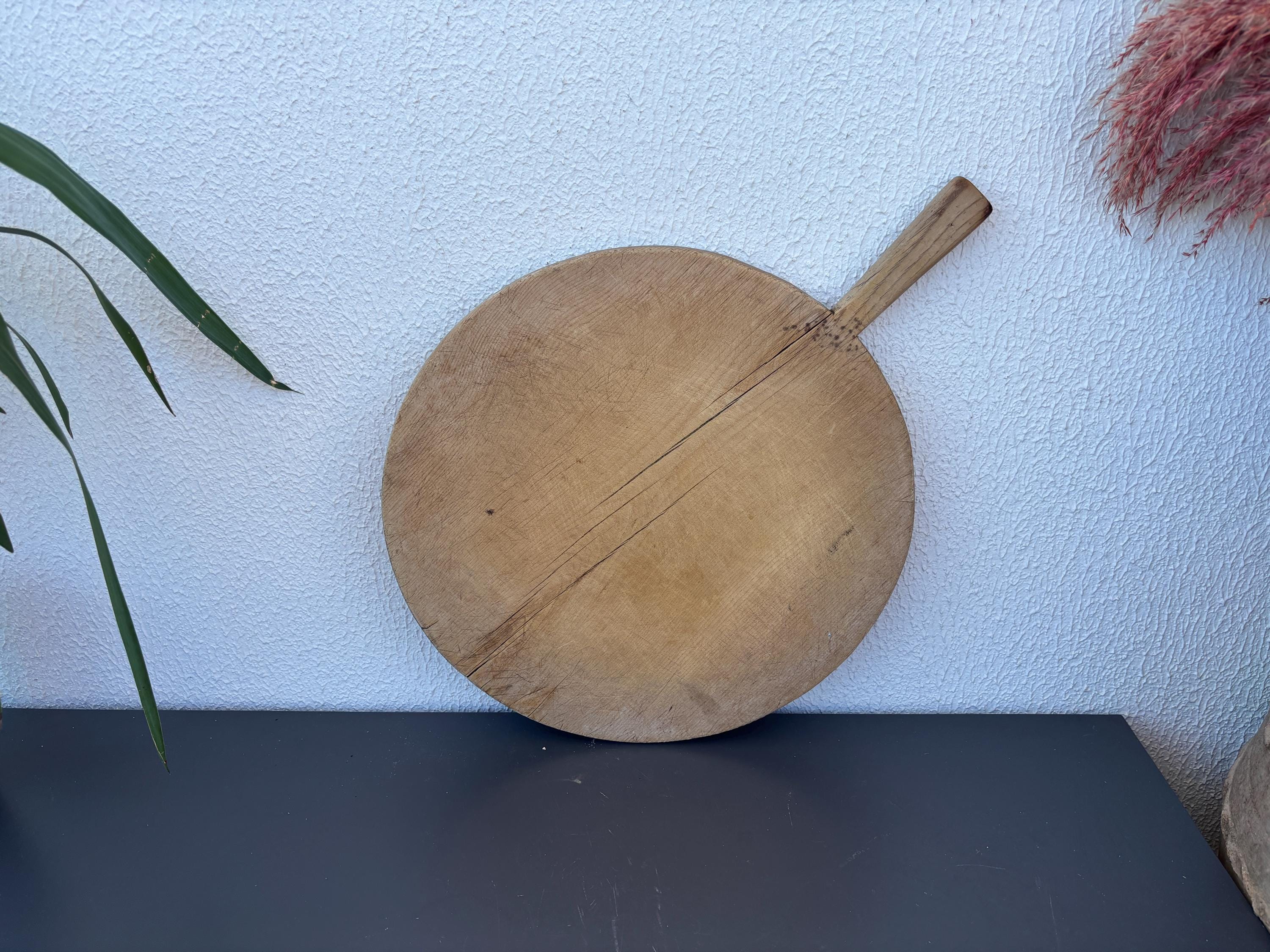 Crafted decades ago in rural Turkey, no two boards are exactly alike. Some are wide and worn smooth, others have deep patina or a hand-carved handle—each shaped by time and use. Whether hung on a kitchen wall, styled on a rustic table, or used as a serving piece, it adds soul to any space.