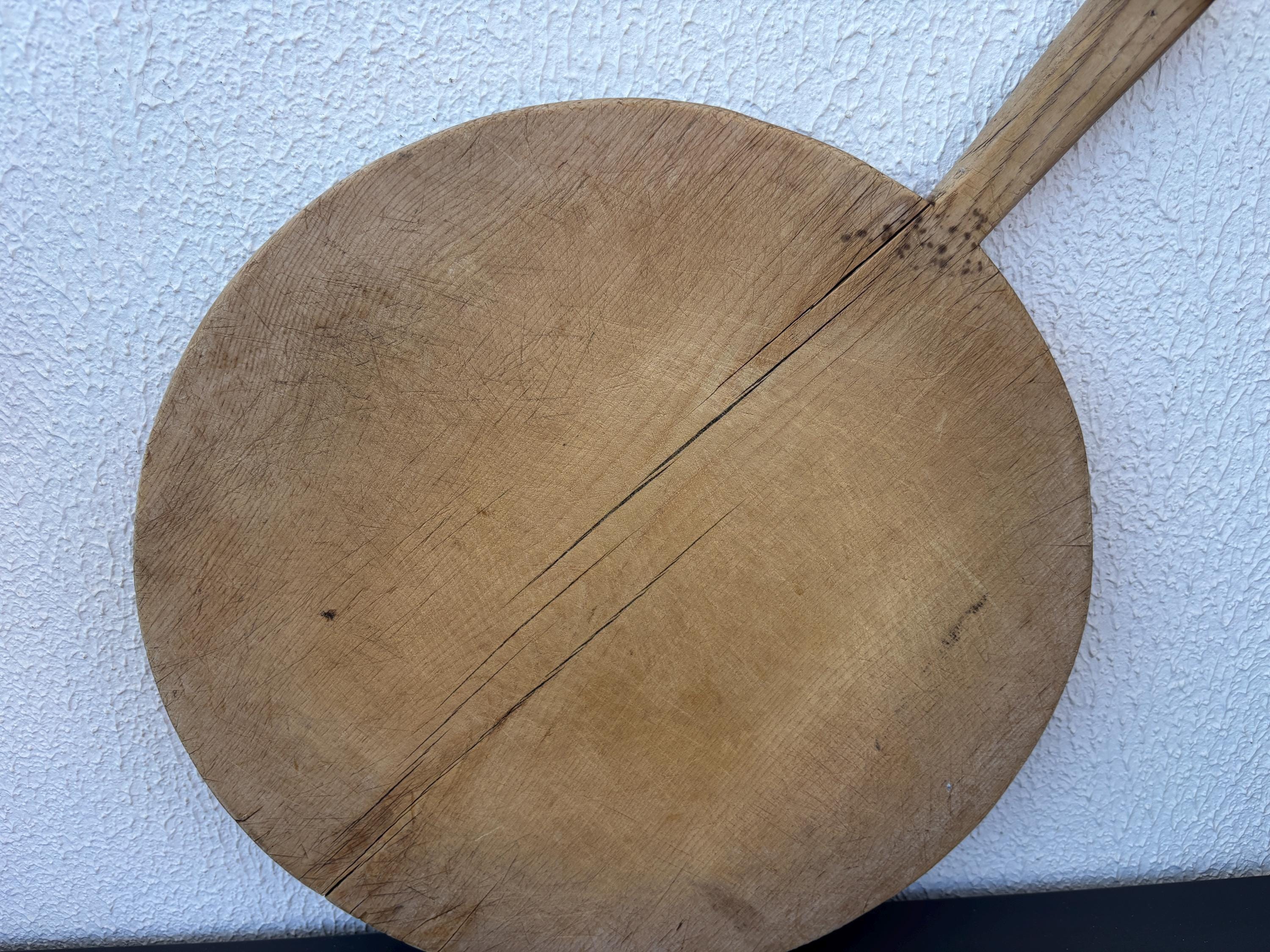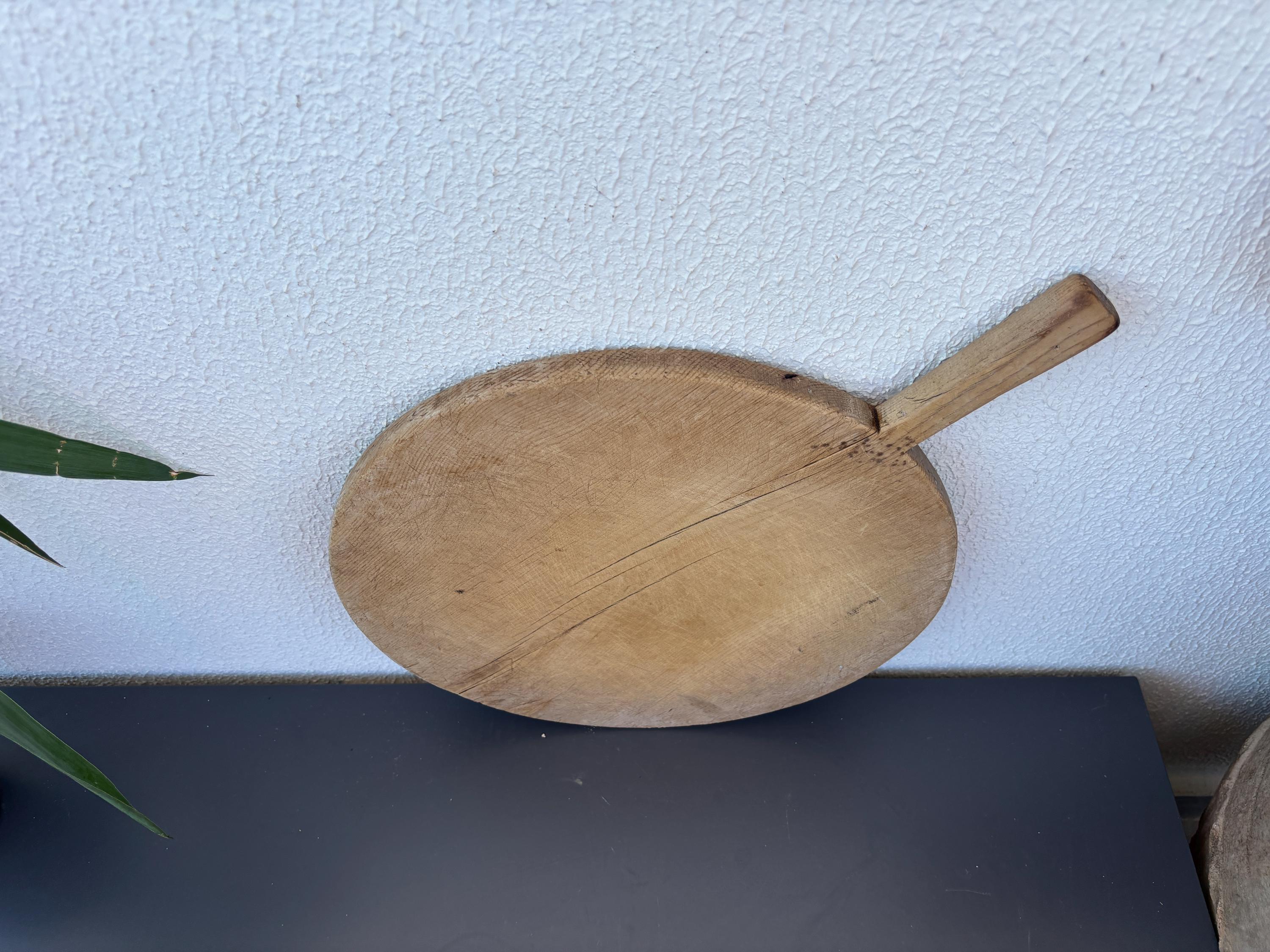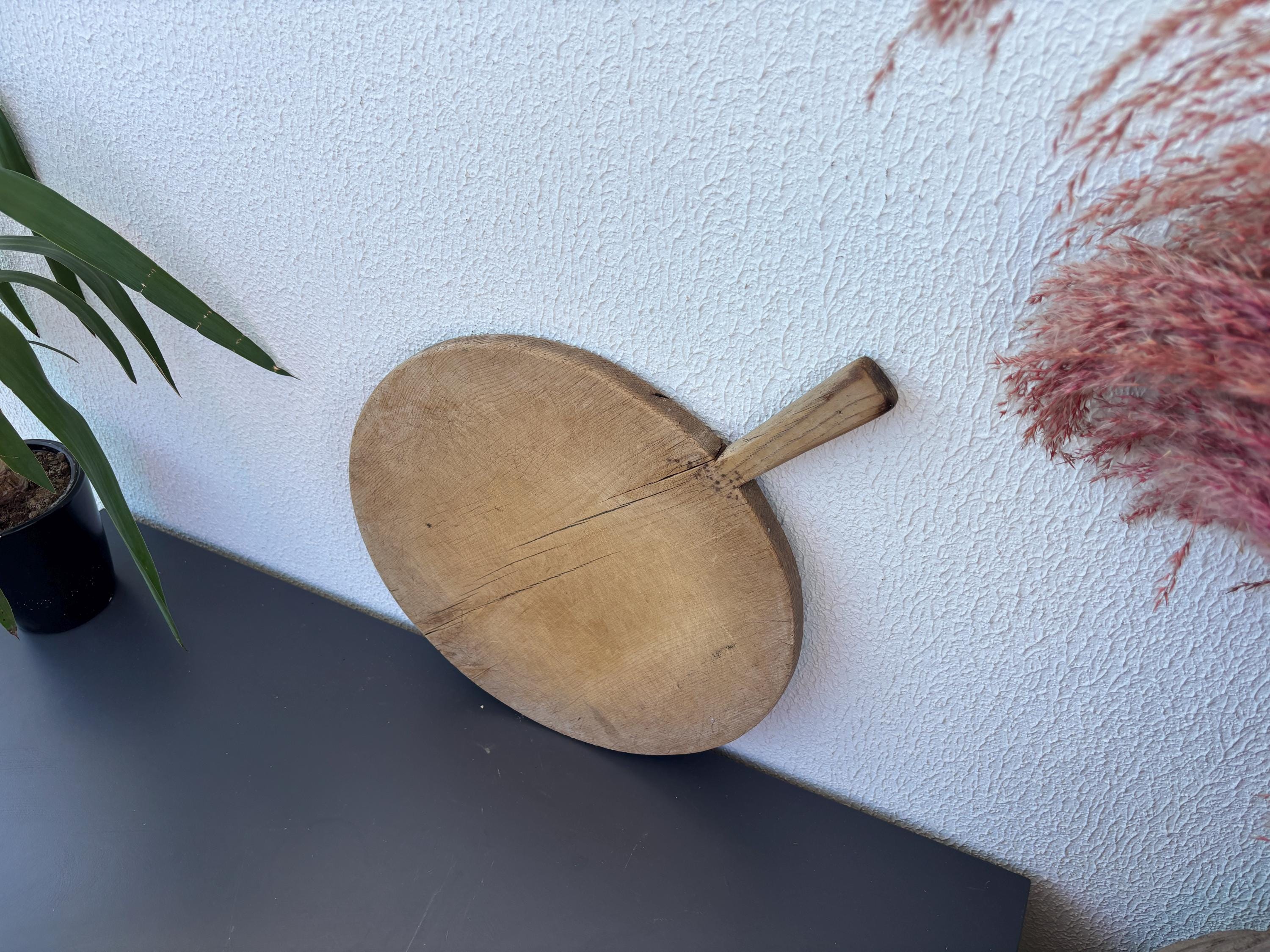 Crafted decades ago in rural Turkey, no two boards are exactly alike. Some are wide and worn smooth, others have deep patina or a hand-carved handle—each shaped by time and use. Whether hung on a kitchen wall, styled on a rustic table, or used as a serving piece, it adds soul to any space.