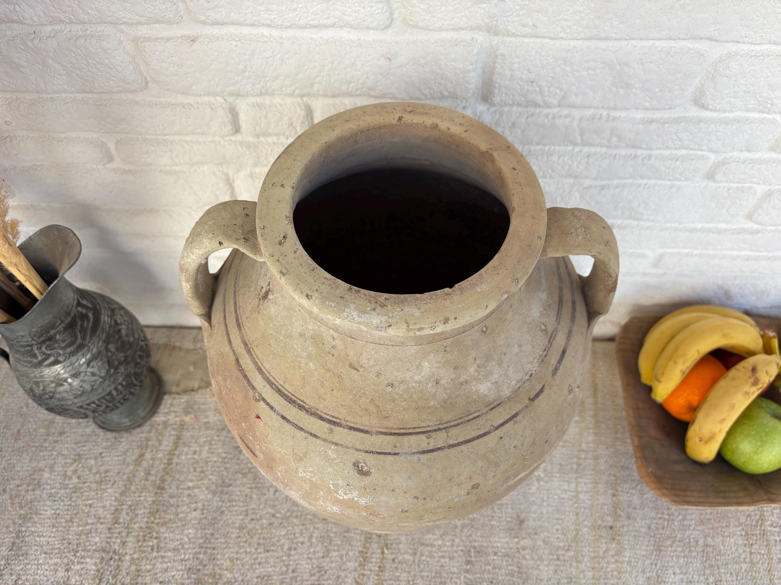 This large clay pot features a naturally aged patina, double handles, and a beautifully weathered surface that adds warmth and depth to any space. Perfect as a statement piece for farmhouse, rustic, Mediterranean, or boho interiors.