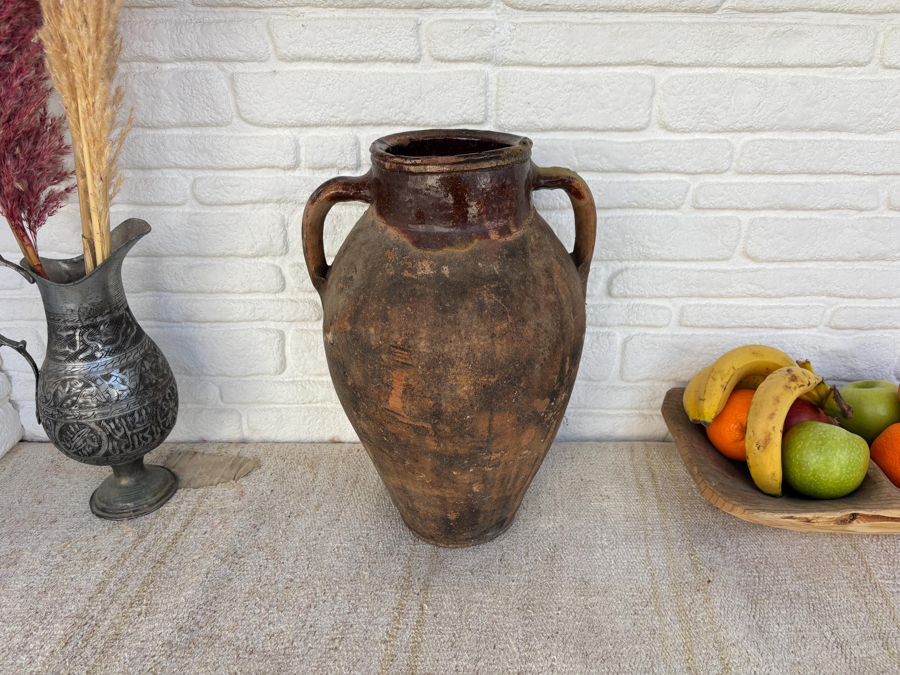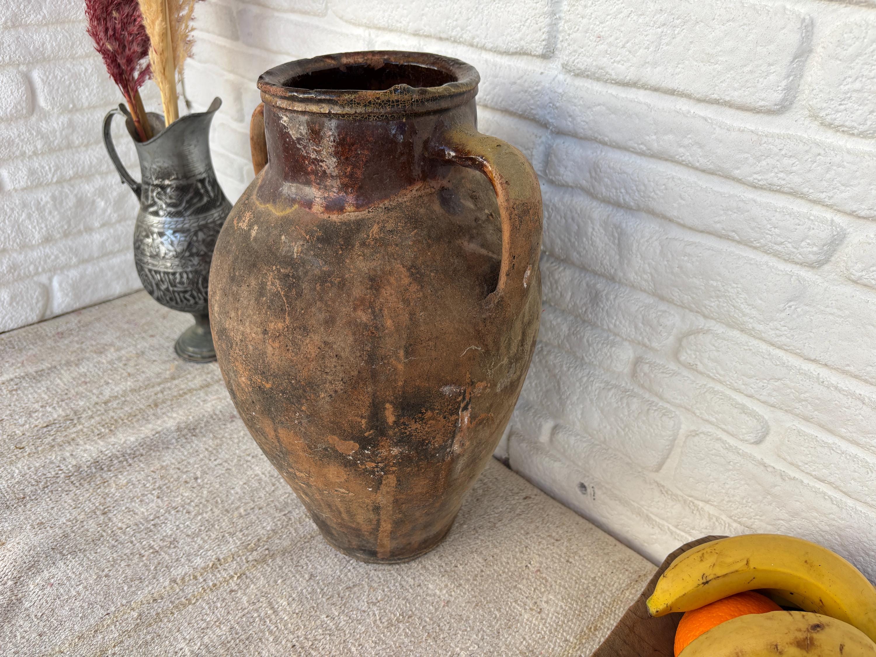 This authentic vintage Turkish clay pot is a unique piece of Anatolian heritage, collected directly from rural villages in Turkey.